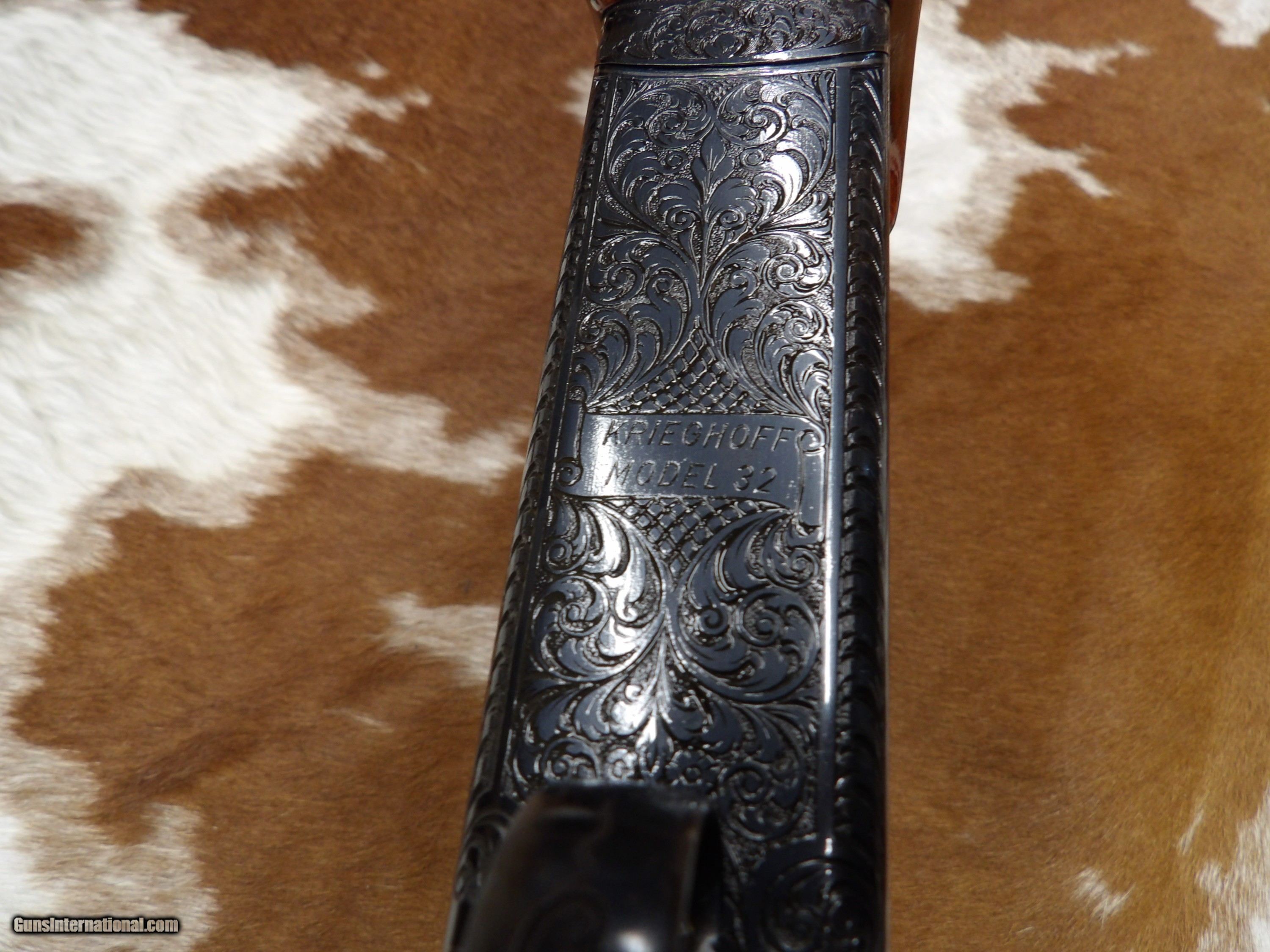 Description: What a beautiful, K-32, Rich engraving from the factory. Enhanced with silver inlays in a pattern similar to the Monte Carlo pattern. 5 silver inlays. Gun includes, 32, inch barrel with Briley thin walls, and proport porting. The stock has a four way adustable comb and length and toe adapter. Great gun for any discipline. SOLD Shotgun Gauge: 12 Gauge Manufacturer: Krieghoff Model: k-32 Monte Carlo Serial Number: 6398 Barrel Length: 32 Bore: 734 Chambers: 2.75 Ejectors: YES Condition: Excellent Metal Condition: Excellent Wood Condition: Excellent Bore Condition: Shiny and Bright Stock Dimensions: Neutral Stock Comb: Adjustable Stock Heel: Adjsutable Manufacture Date: 1970-1972 Chokes: Variable Case: case |
