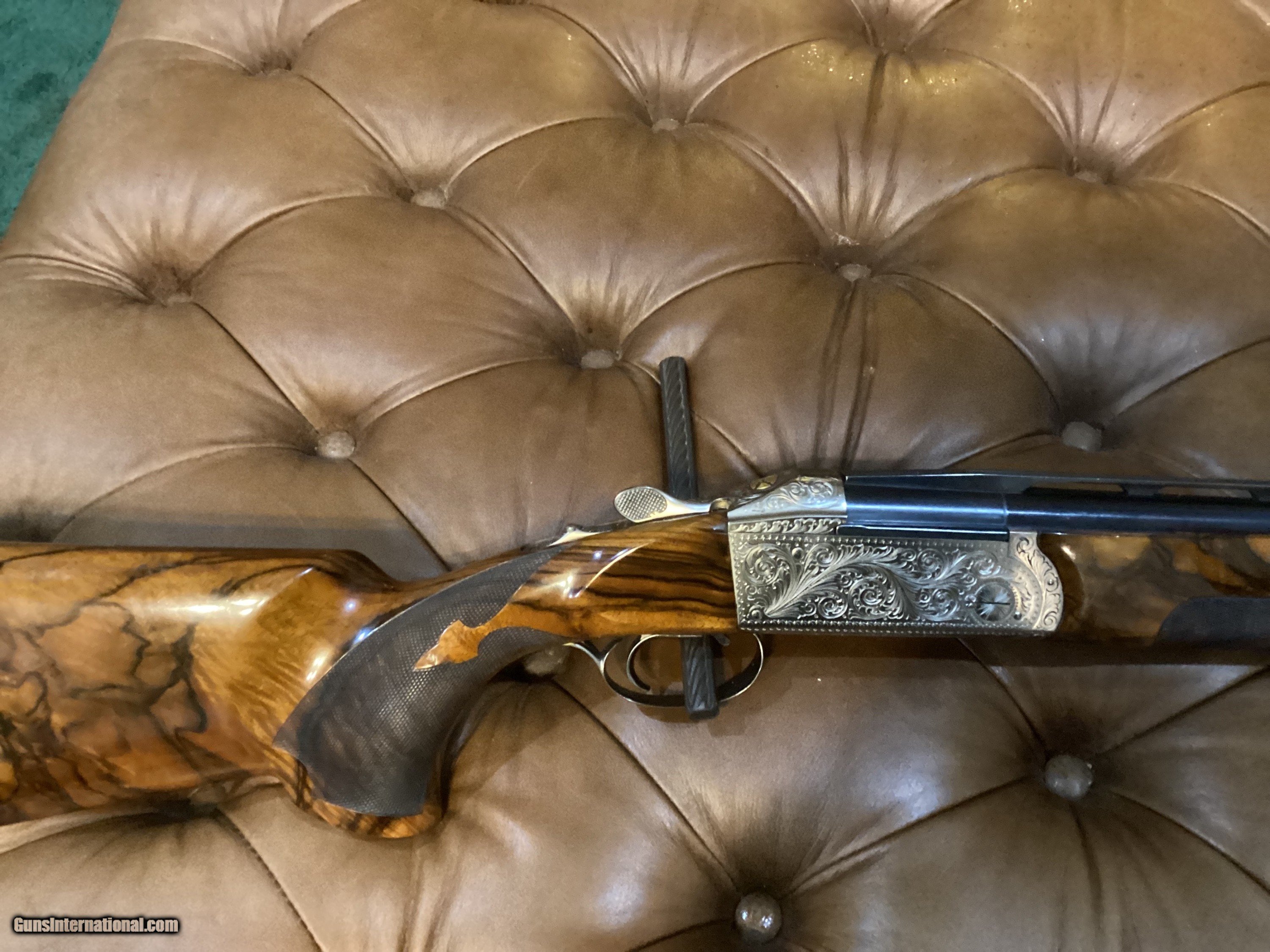 Description: Premium condition K-80 Super Scroll with exquisite Turkeish Walnut equipped with 32" barrels and screw in chokes.I have a collection of chokes but primarily use 10, 15, 20, 30 Pure Gold chokes . The stock is featured with small front bead and mid bead. As per pictures the stock is amazing SOLD Shotgun Gauge: 12 Gauge Manufacturer: Kreighoff Serial Number: 010342 Barrel Length: 32” Stock Comb: 1 1/2” Stock Heel: 2 1/8” Stock Cast: Right LOP: 14 1/4” Rib: Raised Finish: Blue Weight: 8+ Sights: Small, mid and front bead Chokes: 5,10,15,20,30 Engraving: Super scroll Case: Americase Item Location: Florida |