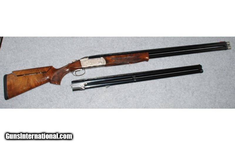 Description: K-80 2 BBL set with Briley inserts for 20 GA,28 GA, and 410 bore. SOLD Caliber Info: 12 GA with Briley inserts for 20 GA/28 GA and 410 bore. Chambers: 3 Metal Condition: Handling marks very small wear area's. Wood Condition: Handling marks a crack behind grip shown in picture's Bore Condition: Very good Barrels: 32" and 28 Triggers: Single smooth trigger Stock: European walnut with ajustable comb Stock Dimensions: LOP: 14 1/4 Fore End: European walnut Butt Pad: Black rubber factory pad. Weight: 8 1/2 Lbs. Sights: Red fiber bead front/Silver bead middle Chokes: Full sets of screw in chokes Extras: Comes with two cases inserts tools and chokes. Item Location: Lacey, WA |