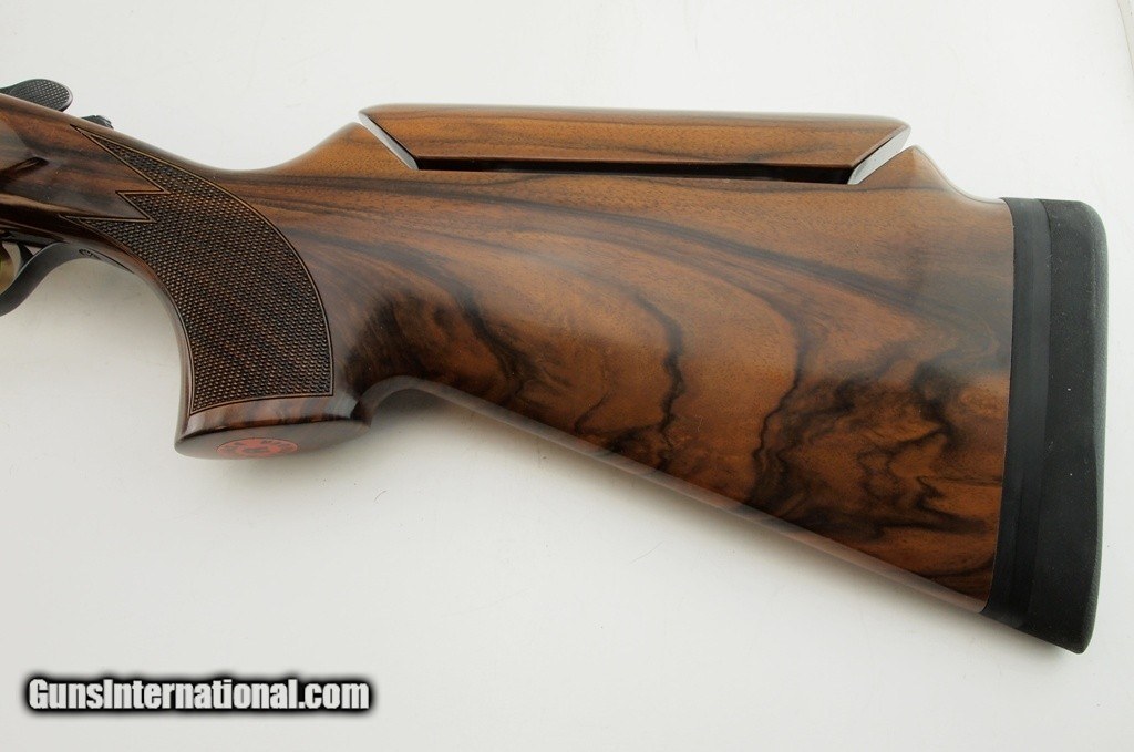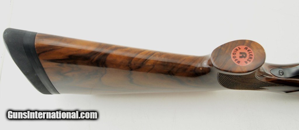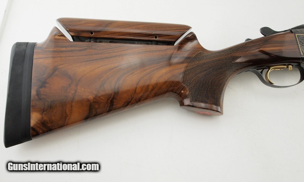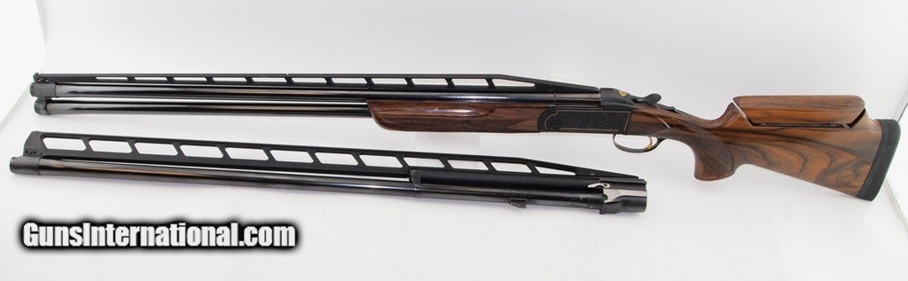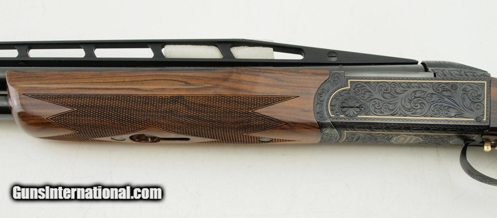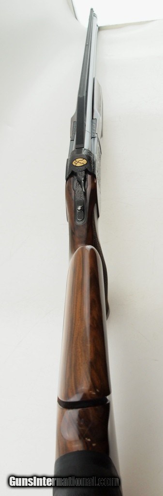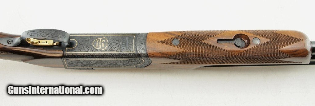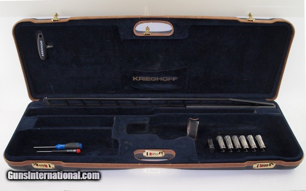 Description: Krieghoff K-80 Gold Super Scroll Trap Combo 12 GA, new in 2014, 32" O/U vented rib barrels - bright shiny smooth bores, 34" unsingle vented rib barrel - bright shiny smooth bore, mid silver bead, white front bead, four extended steel choke tubes (1- F, 1-IM, 2-M), six extended Titanium choke tubes (1-SF, 1-F, 1-IM, 2-M, 1-IC), choke tube wrench, very nice engraved blued receiver with gold accents, gold release trigger, beautiful upgraded checkered hardwood grip stock - forearm, adjustable comb, 14.25" LOP, original Krieghoff hard case, original aluminum case, and Kick-EZ recoil pad. Excellent condition. See pictures for an appreciation of this beautiful shotgun! Add 3% for Credit Card Shipping $100.00 SOLD |