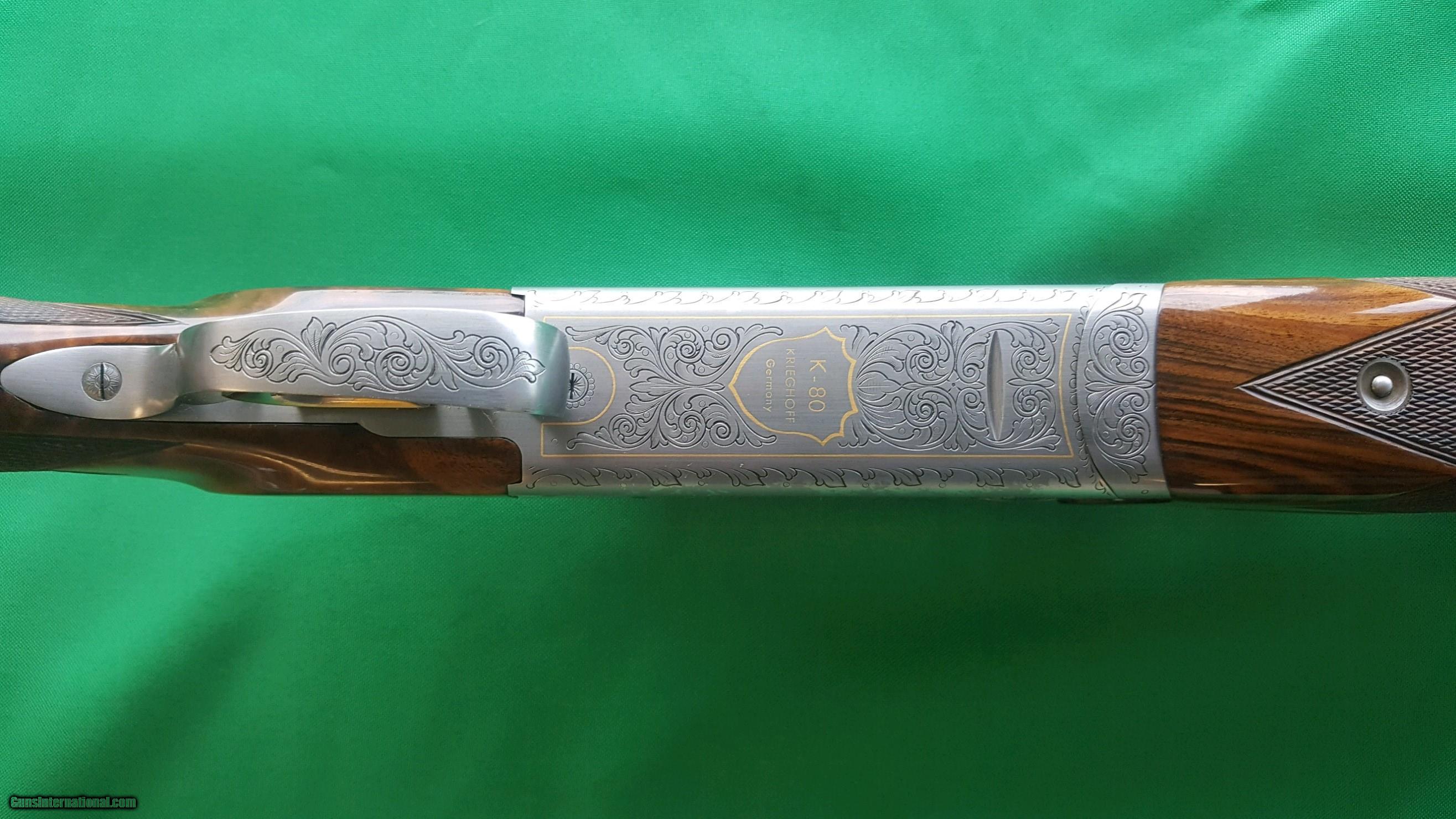 Description: Kreighoff K80 Gold Super Scroll in 12 Gauge 32” Ported Flat Tapered Rib Barrels with11 Choke Tubes, Bavarian Grade Wood with ISIS Recoil Reduction System/Pad, Negrini Hard Case Annual Inspection with spring/pin replacement by Kreighoff in March, 2017 Still under remainder of one year mechanical warranty by Kreighoff. Used condition but in excellent shape. Kreighoff New Price is $21,350.00 (MSRP) SOLD |