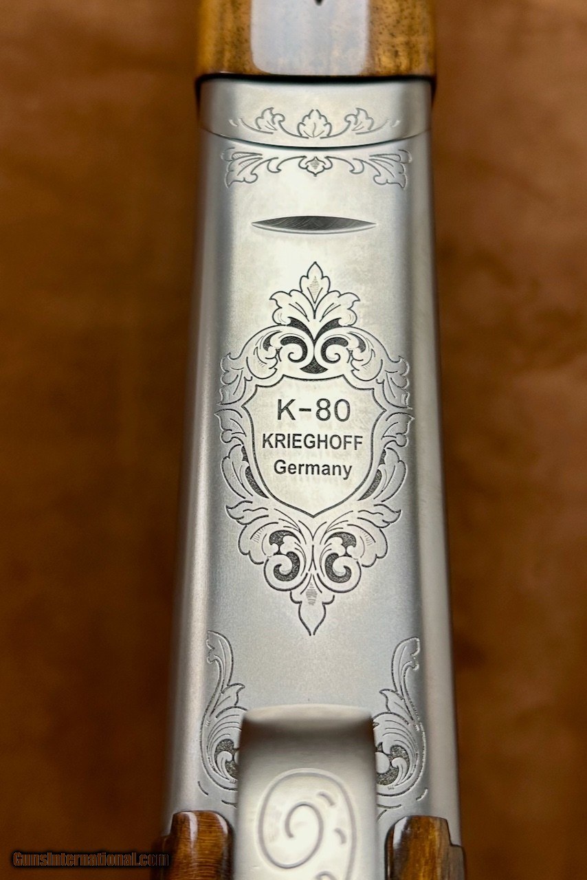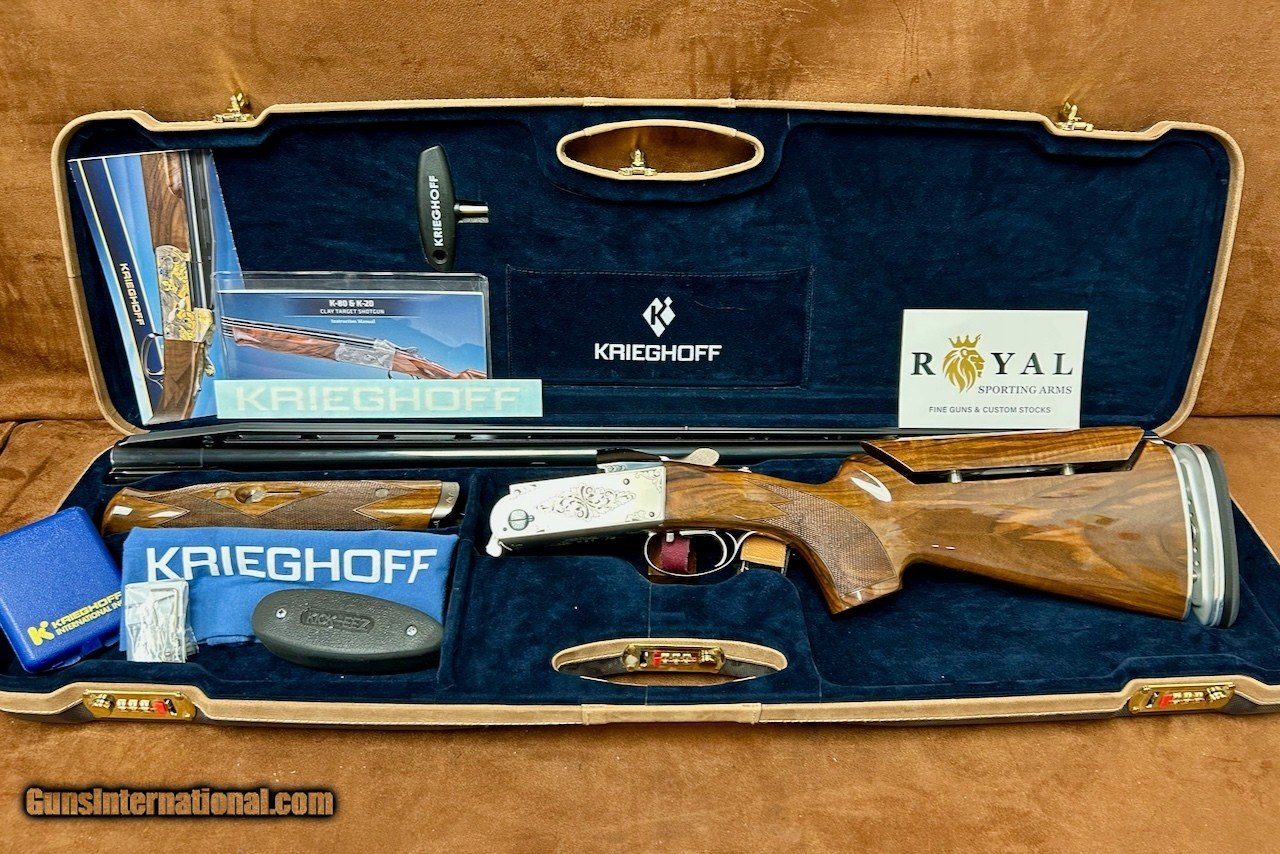 Description: Just Arrived at Royal Sporting Arms | Krieghoff K-80 Pro Sporter 12GA 32" Over-Under Shotgun | USED The K-80 Pro Sporter features a Floating Rib suspended higher above the barrel than conventional Sporting Clays and Skeet competition shotguns. The higher rib design and corresponding higher stock allow the shooter to keep their head in a more erect position on the stock, thereby increasing sight range and allowing for quicker target acquisition, reduced neck fatigue, and reduced perceived recoil. A specially designed adjustment wheel fitted to the rib allows the shooter to select a flat shooting 50/50 POI or a slightly higher 60/40 POI by using a sight picture of bead behind bead. Both POI settings are approximations and can differ slightly. A higher POI of 70/30 is also possible by using a figure eight sight picture. Changing your POI to your personal preferences is as simple as using the adjustment wheel on the rib of the Pro Sporter. By loosening the set screw and lowering the rib down you can achieve a higher POI. The K-80 Pro Sporter transitions easily between all of the clay target disciplines offering the versatility and performance of Krieghoff. Features of the Krieghoff K-80 Pro Sporter 12GA 32" | 25100071: