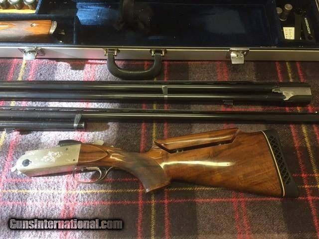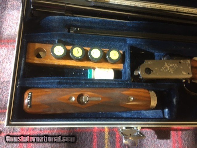 Description: EXCELLENT CONDITION, 34 SINGLE FIXED CHOKE, 32 INCH O/U WITH 6 FACTORY CHOKES, 14 5/8 LENGTH OF PULL TO PACHMAYER TRAP PAD, KRIEGHOFF HARD CASE. ADJUSTABLE COMB, STOCK HAS SOME VERY MINOR MARKS, METAL IS 98% SOLD |