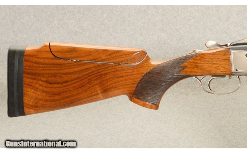 Description: SOLD Manufacturer: 1983 Caliber Info: 12 Gauge Chambers: 2 3/4 Metal Condition: Very Good - Excellent Wood Condition: Very Good - Excellent Bore Condition: Excellent Barrels: 34" Ported barrel. Bore diameter: 0.733 Triggers: Smooth Stock: Checkered european walnut pistol grip with adjustable comb Stock Dimensions: 14 1/8" LOP Fore End: Checkered european walnut Butt Pad: KICK-EEZ Recoil pad Weight: 9 lb 11 oz Sights: Adjustable rib with metal mid-bead and fiber optic front sight Chokes: Full. Choke constriction: 0.032 Extras: No case. Item Location: Richfield, WI |