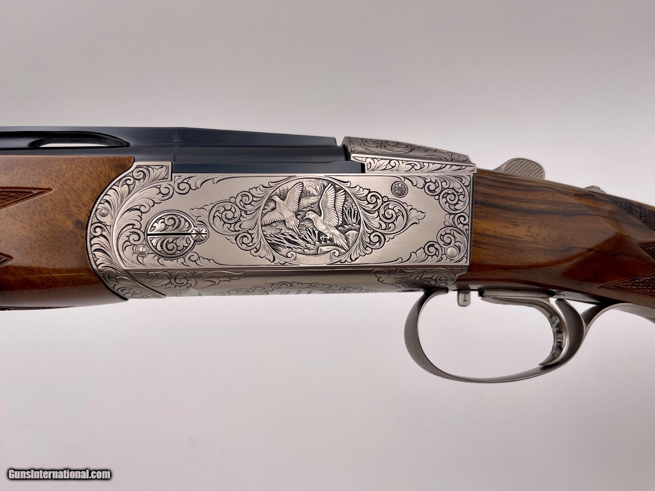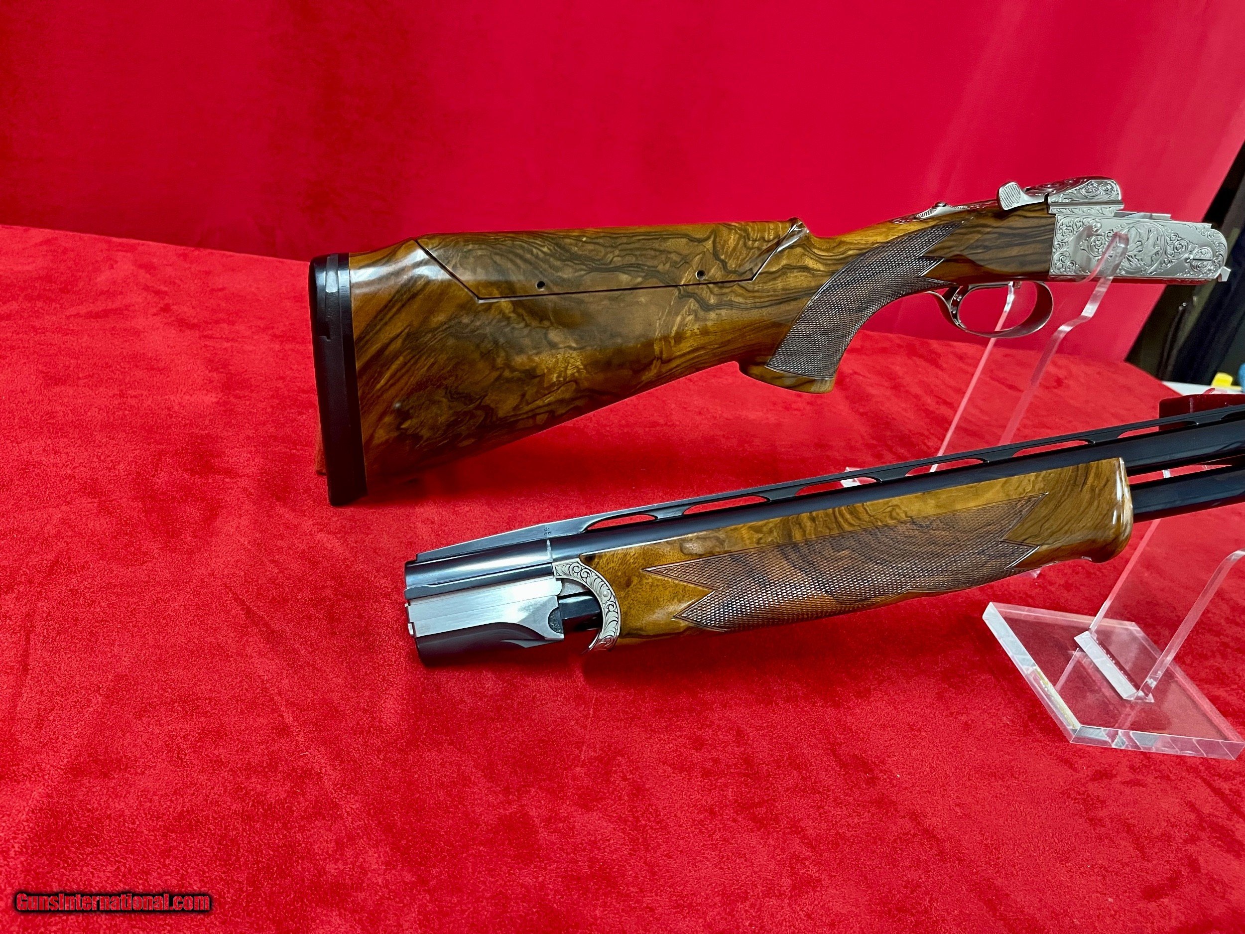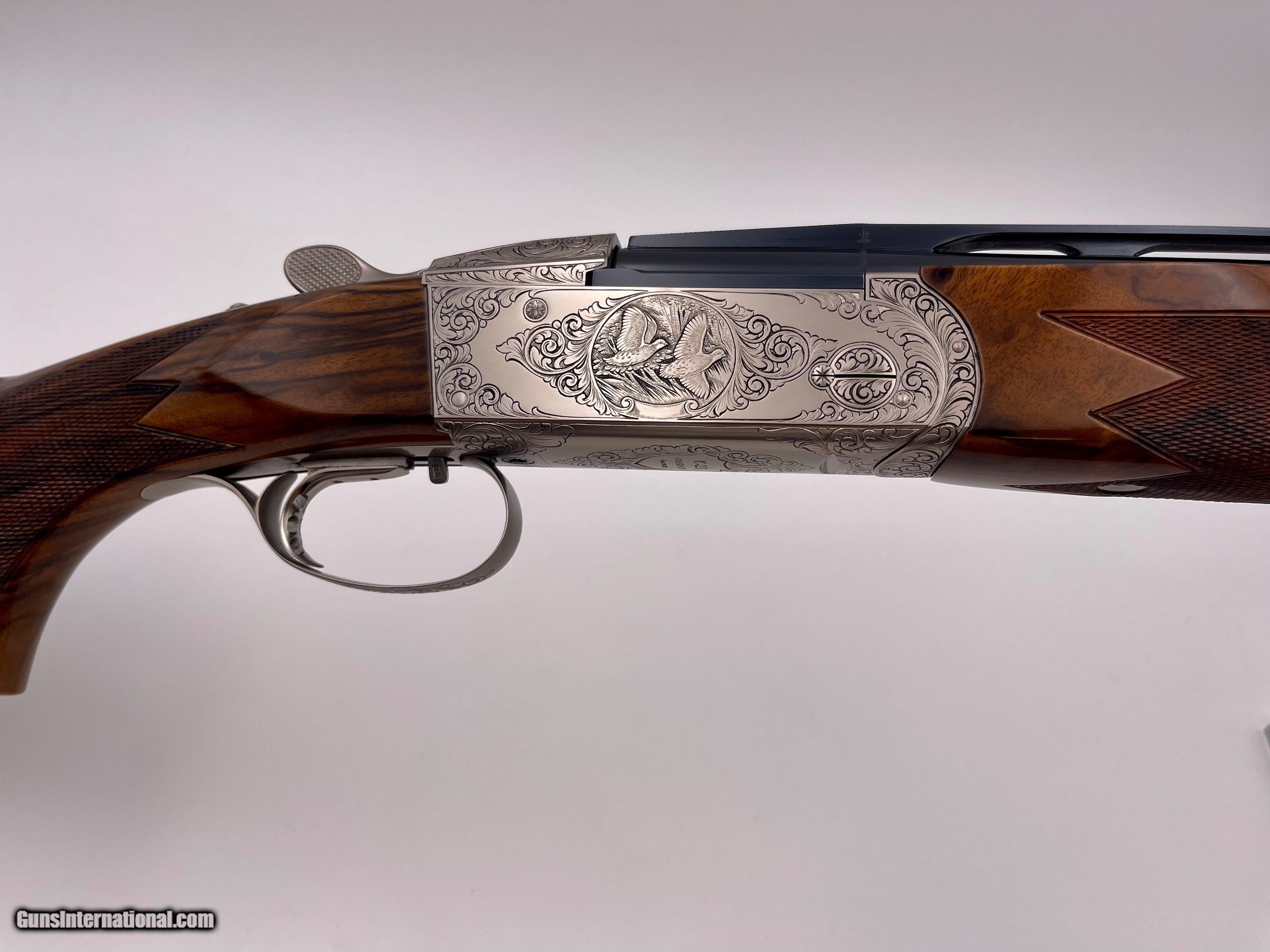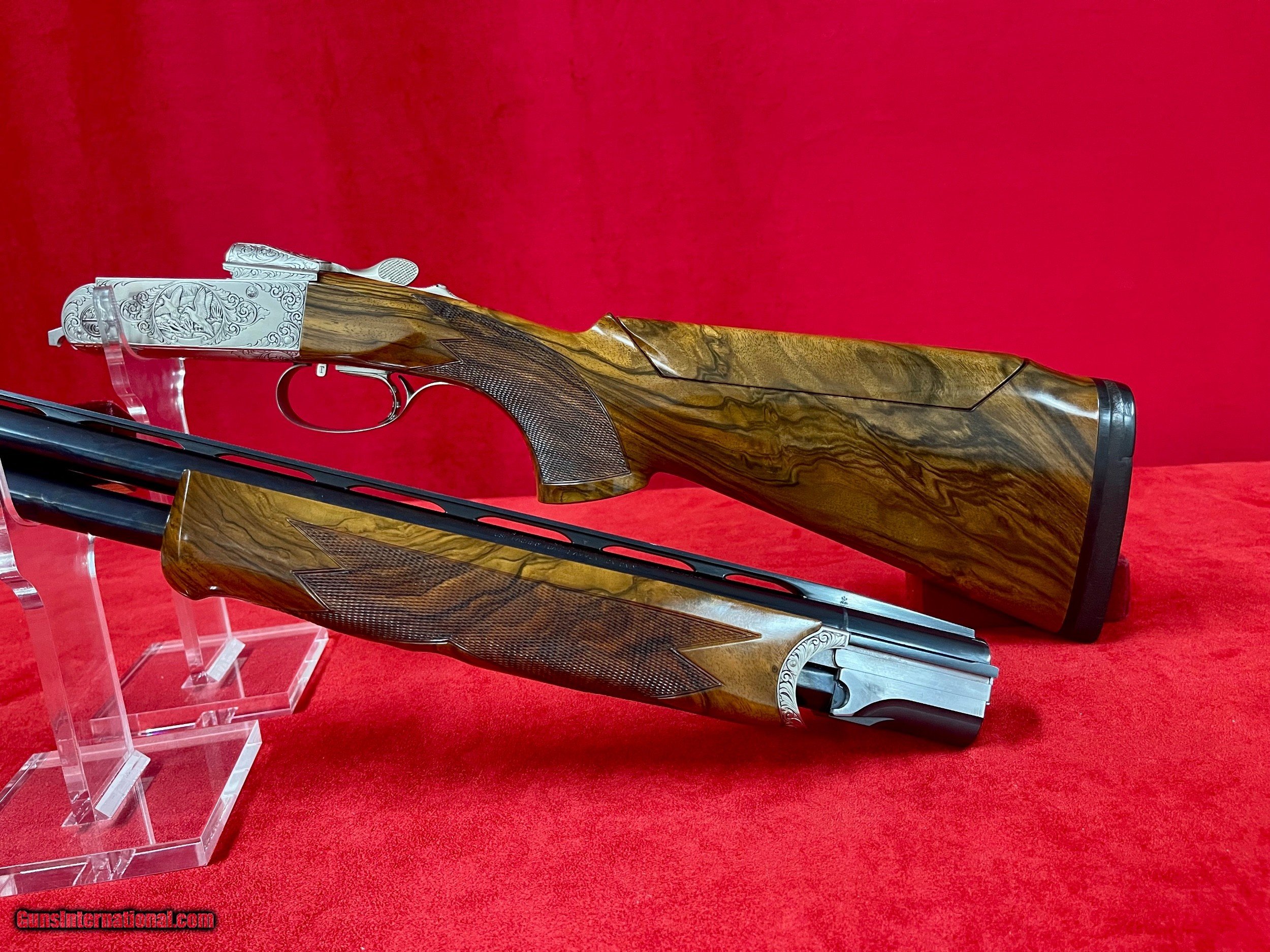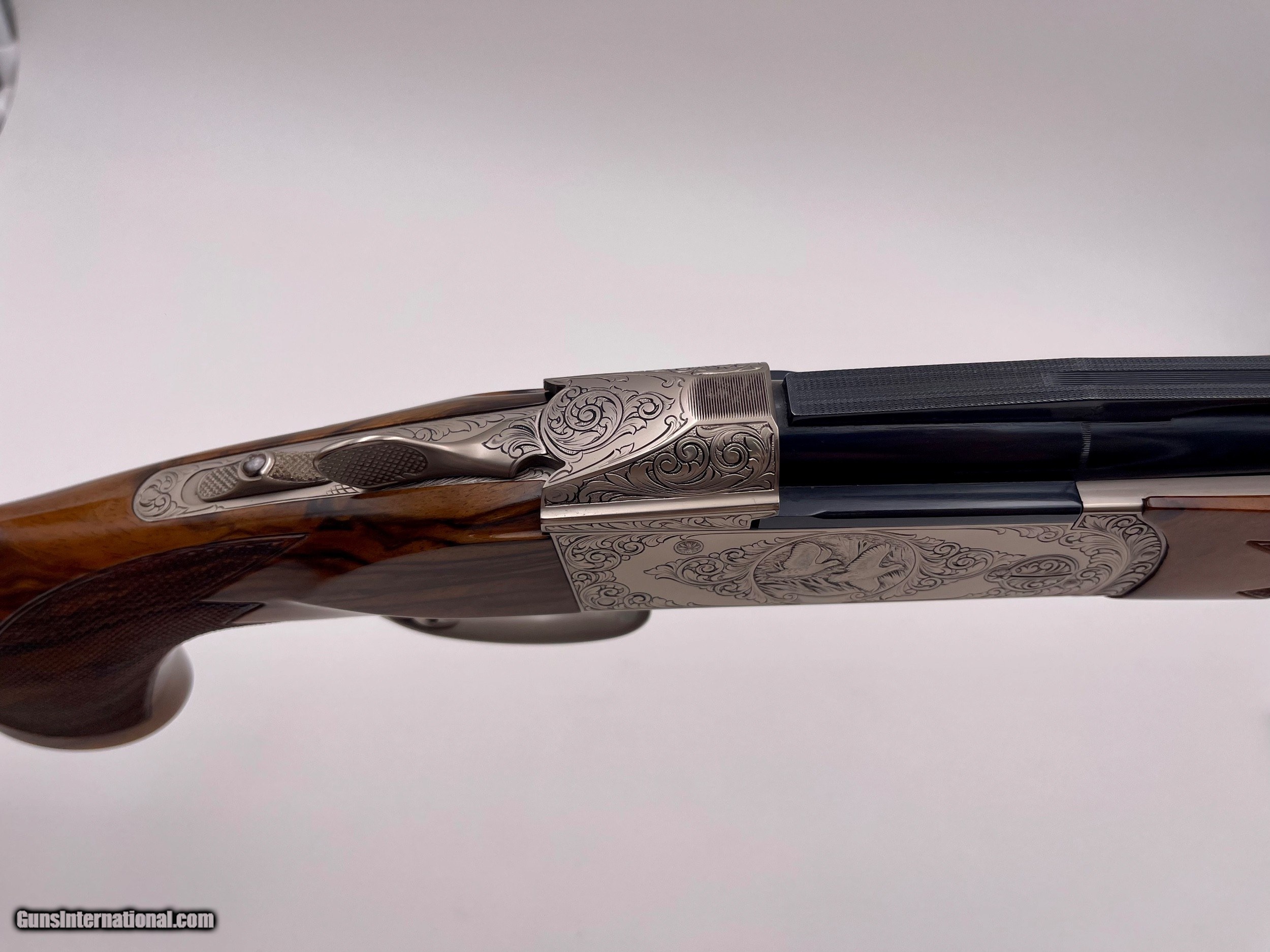 Description: Krieghoff K20 Bavaria Royale 3 barrel set. All barrels 20/28/.410 are 32 inch and in Pristine Condition. Serial #0709XX. Beautiful #3 Sporting Stock Set 20 Ga barrel specs: 32 inch Comes with chokes Skeet and Skeet 28 Ga barrel specs: 32 inch Comes with Chokes: 0/0/1/1/2/2/3/3 .410 Ga barrel specs: 32 inch Comes with Chokes: 0/0/1/1/2/2/3/3 Stock dimensions: #3 Factory Stock set Dual Palm swells Length of pull 14.50 Gun comes complete in original case fitting all barrels with tools SOLD |