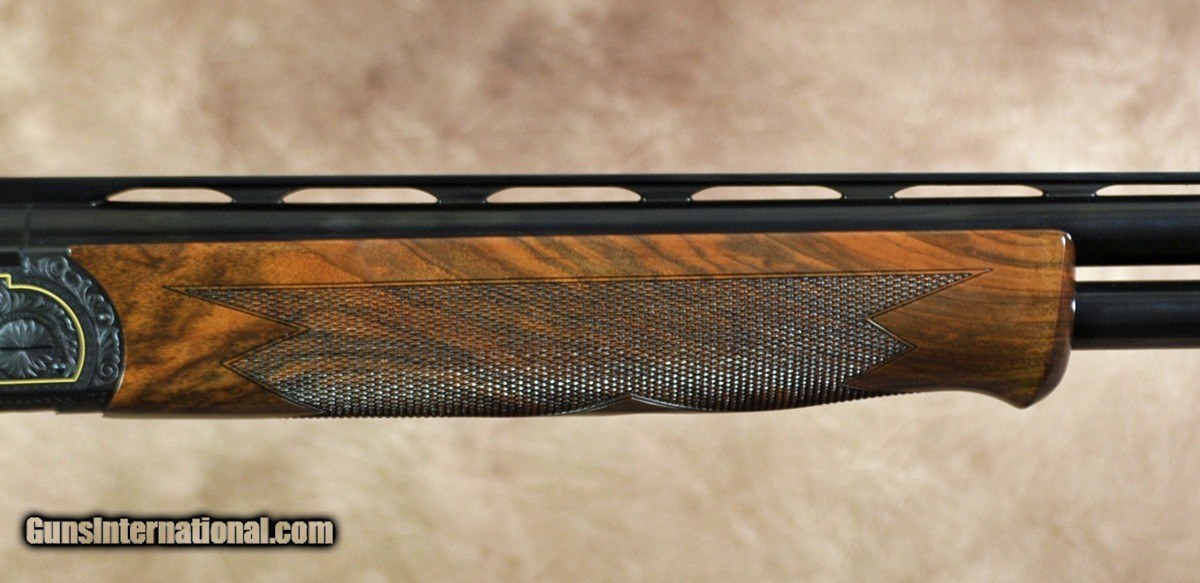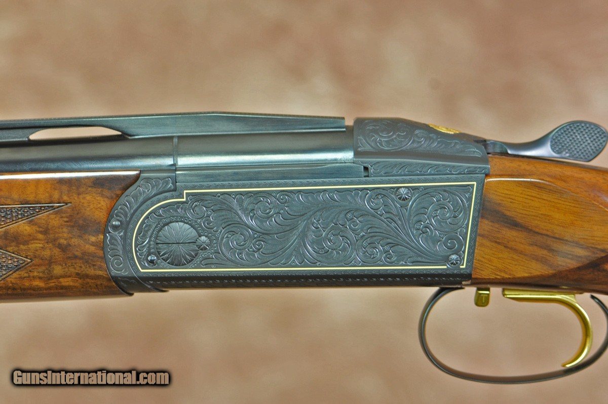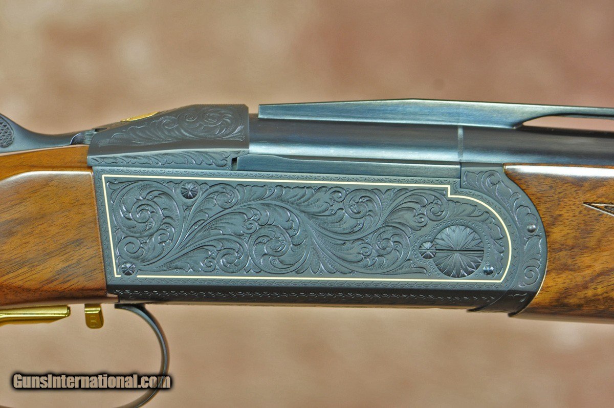 Description: Pre-owned, in demo fired condition, Krieghoff K20 Blued Gold Line Super Scroll Sporter 3 bbl set. All barrels are configured the same featuring extended factory choke tube 30" barrels with ramp taper sporting ribs. Blued receiver featuring Super Scroll engraving pattern hand engraved by German master engraver with gold broken target top latch and gold line framing receiver. Outstanding right handed Sporting stock with adjustable comb and Schnabel forend. Comes in factory leather trim case. CONSIGNMENT, ineligible for trades. SOLD Shotgun Gauge: 20 Gauge, 28 Gauge, .410 Gauge |