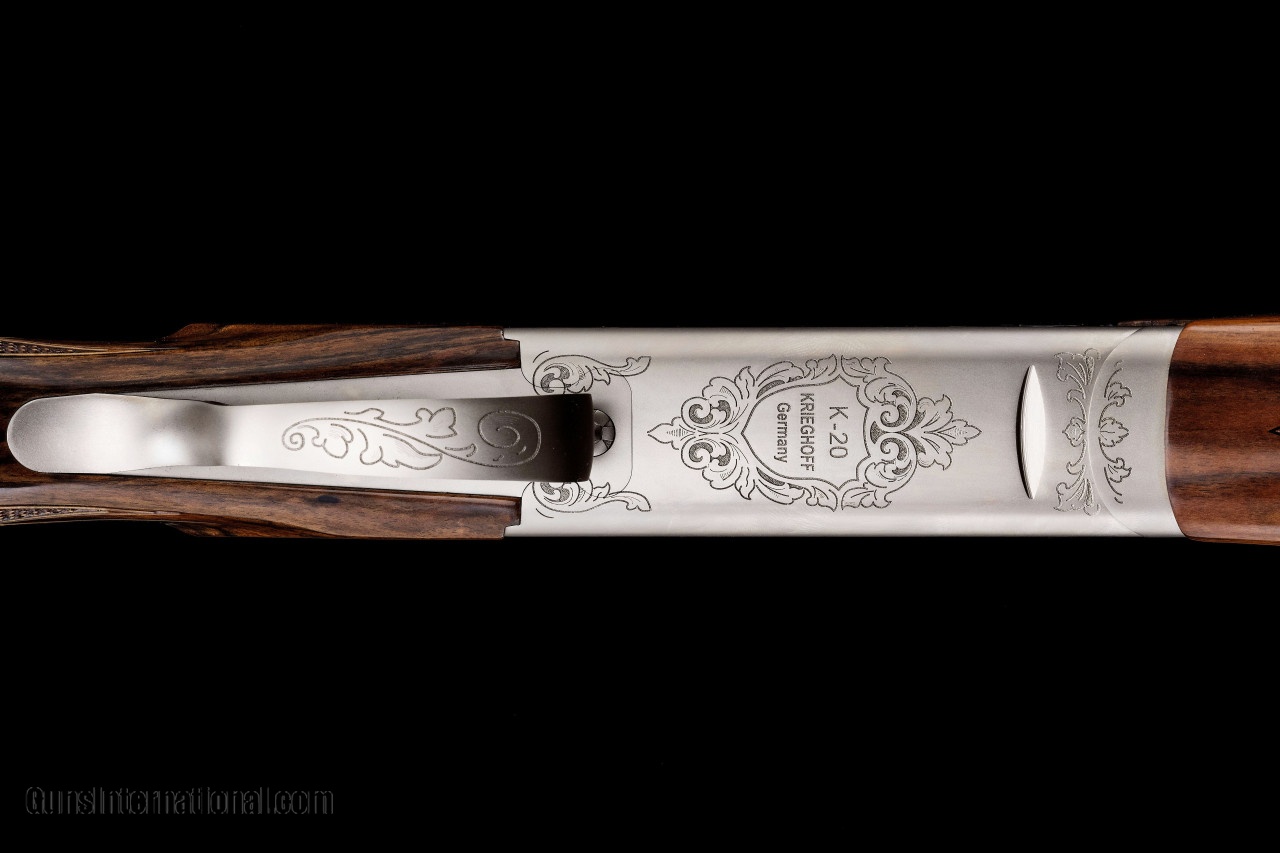 Description: High driven pheasants in England, a sky filled with doves in Argentina, fast red legged partridges in Spain call for a reliable, fast moving shotgun. The New K-20 Parcours, your perfect companion in the field. The perfectly balanced K-20 Parcours leads to a smooth swing, instinctive aim and precise shooting. First and foremost the key to success is the intuitive mount of the gun, the rest follows naturally. Your instinct aims – the K-20 Parcours hits. Shotguns are designed for shooting moving targets. Clay or Game Shooting is a fast sport leaving little time to get on target. It requires a well balanced and easy pointing shotgun. Shooter and gun become one. The K-20 Parcours delivers. Light and slim, the K-20 Parcours is an easy transition from a 12 gauge. The gun has all of the proven K-80 features in a scaled down, small gauge version. The streamlined, low profile receiver complete with light barrels and trim stock provides excellent balance and handling characteristics. SOLD Manufacturer: Krieghoff Caliber Info: 20 Gauge Barrels: 30 Action: Over / Under Triggers: Single Gauge Info: 20 Gauge Stock Comb: 1-3/8 Stock Heel: 2-1/4 Stock Cast: 1/4" Off LOP: 14-1/4 Rib: Vent Weight: 7.14 Chokes: Interchangeable |