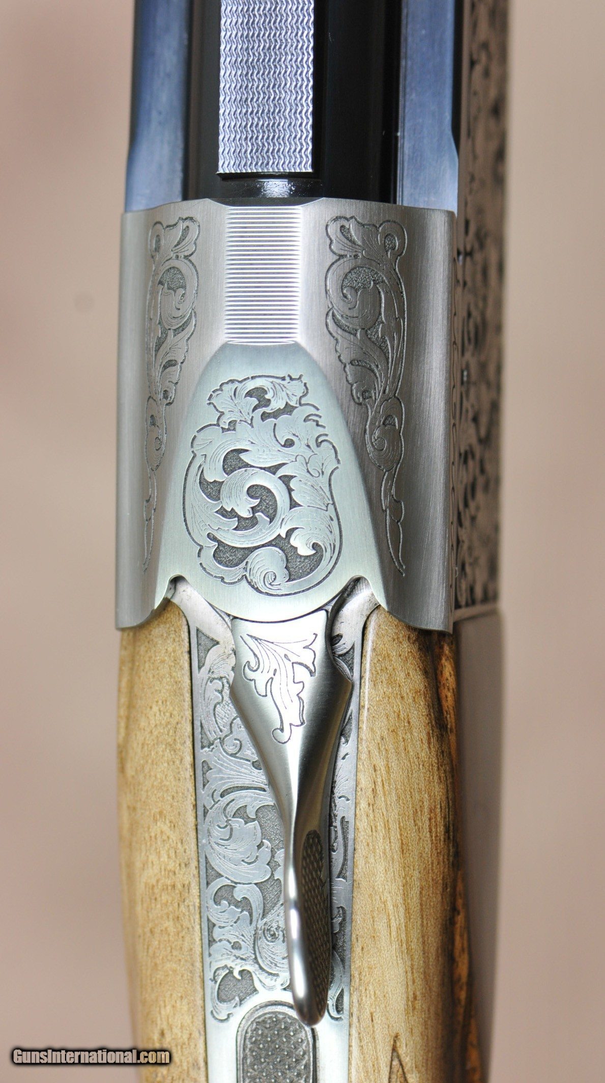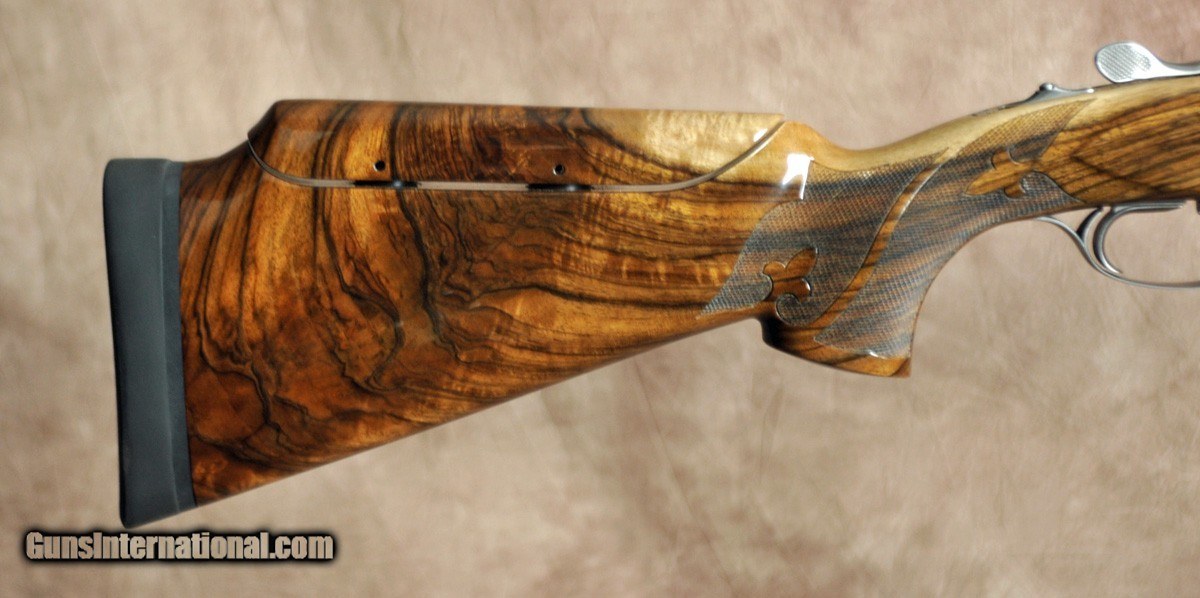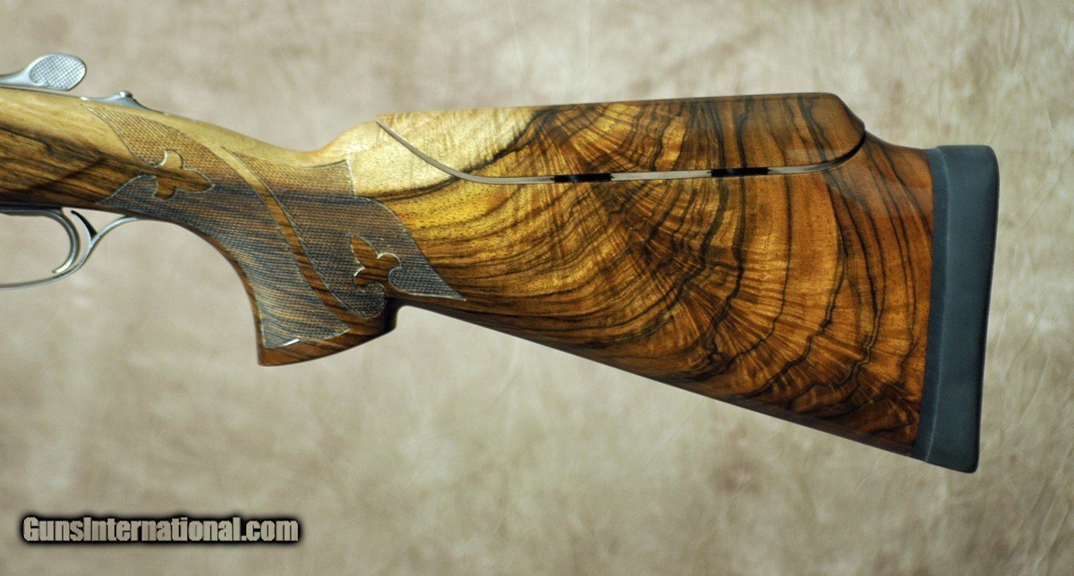 Description: Pre owned in excellent condition Krieghoff K20 20 gauge sporter. Features Vienna Scroll engraving, 32″ factory C/T barrels with five factory chokes. Highly figured Wenig New American stock wit adjustable comb and Fleur Delis checkering. Factory case included SOLD |