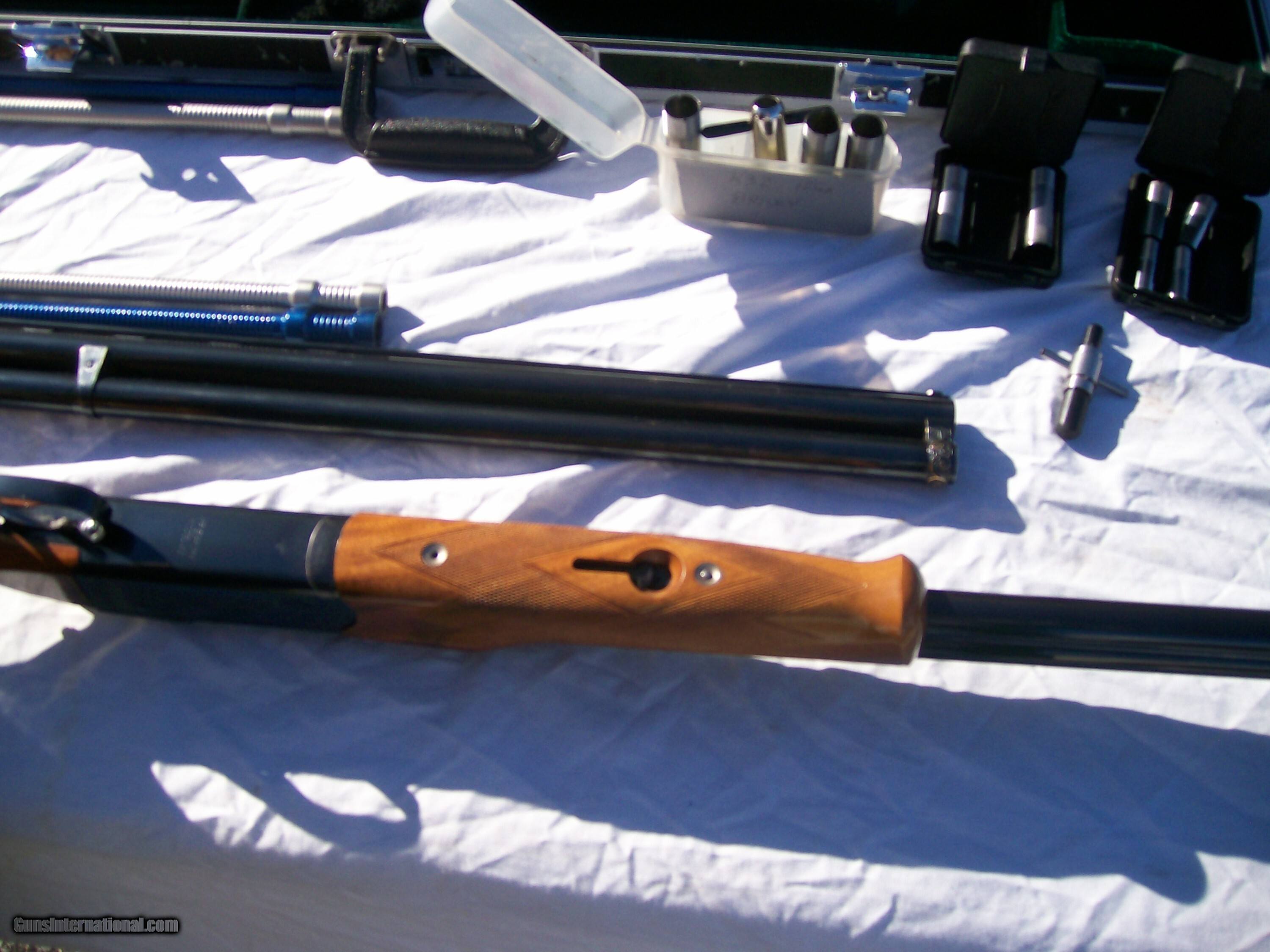 Description: 12 Gauge 30" Flat Rib Barrels, Briley S2 Flush Chokes (SK, IC, M, IM, F, Wrench) K80 Carrier Barrels – 20, 28, .410 Briley Matched Weight Tubes (SK, SK, IC, M) for Each with Wrench, High Grade Barrel Hanger K80 Adjustable Stock, Schnabel Forearm, SN:6362 (1970) 14 1/2" LOP, 5/8" Pad, Americase 2 Barrel Case Reblued, Very Good Condition - $8100 Carrier Barrels can be purchased separately $100 Shipping, Insurance to be Agreed Shotgun Gauge: 12 Gauge, 20 Gauge, 28 Gauge, .410 Gauge Manufacturer: Krieghoff Model: K32 Serial Number: 6362 Barrel Length: 30 Ejectors: Yes Condition: Very Good Metal Condition: Very Good Wood Condition: Good Bore Condition: Excellent Barrels: 30 Triggers: Single Selective Stock: K80 Adjustable Butt Pad: 5/8 LOP: 14 1/2 Chokes: Screw In Case: Americase Price: $8,100.00 Shipping: $100.00 Contact Seller |