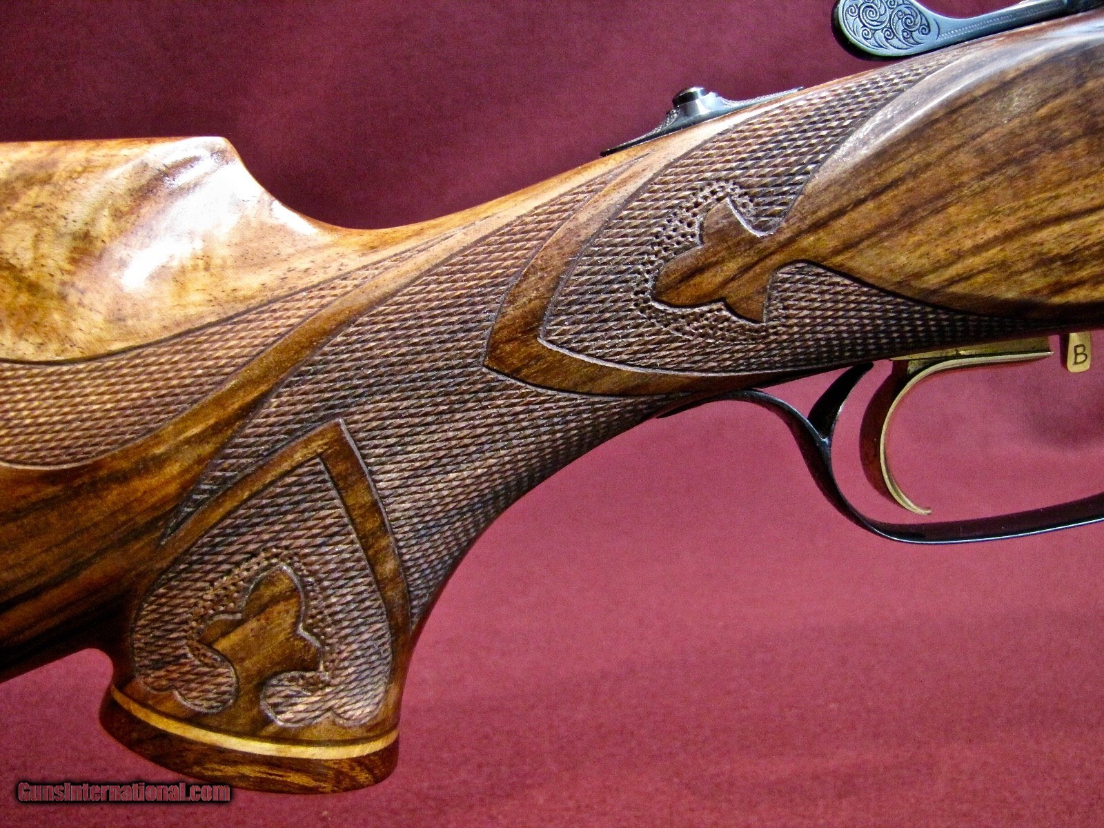 Description: Gun is now on hold pending receipt of funds. I have for sale a beautiful Krieghoff K32 Crown Grade Trap Gun with serial number 6087. Both the receiver and barrel serail numbers match. This beautiful gun is engraved by Eric Boessler and signed EB on the receiver. Gun has an upgraded K80 trigger and exhibition grade custom stock. As you can see in the attached pictures this gun will turn heads whenever it is taken out of the case and brought to the firing line. The 32 inch barrels are fixed chokes with the bottom having a bore of .731 with .022 of constriction and the top having a bore of .732 with .028 of constriction. The rib is tapered 8MM to 6MM. The stock as you can see is exhibition quality and has a cast off for the right hand shooter. Stock dimensions are 1 1/2 X 1 1/2 X 2 1/8 with a length of pull of 13 3/4 over a 1 inch Decelerator pad. Weight of the gun is 8 pounds 12 ounces. Krieghoff has confirmed this receiver is an original crown grade and not an upgrade. The trigger has been upgraded to a K80 trigger. Weight of the gun is 8 pounds 12 ounces. Price of the gun is $15,000 plus $75 shipping to your FFL. As always there is a three day non firing inspection period with the buyer paying all shipping charges if returned. Feel free to contact me with any questions you might have. SOLD Shotgun Gauge: 12 Gauge Manufacturer: Krieghoff Model: K32 Crown Grade Serial Number: 6087 Barrel Length: 32 Ejectors: Selective Well Timed Condition: Excellent Metal Condition: Excellent Wood Condition: Excellent Bore Condition: Excellent Barrel Type: O/U Triggers: Single Selective Stock: Monte Carlo Stock Cast: Off for Right Hand Shooter Fore End: Schnabel Butt Pad: Decelerator LOP: 13 3/4 Rib: Ventilated Finish: Hand Rubbed Oil Weight: 8 pounds 12 ounces Chokes: .022 & .028 Engraving: Crown Grade |