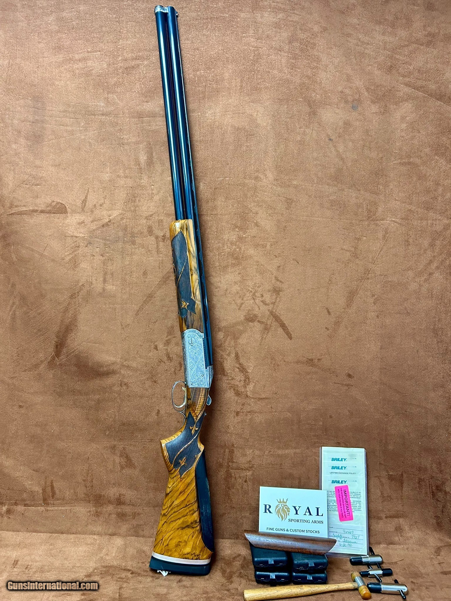 Description: JUST IN AT ROYAL SPORTING ARMS!!! The Krieghoff K32 fully engraved by Angelo Bee, 32" with a full set of subgauge tubes (20ga, 28ga, .410) and featuring spectacular wood, is a truly exquisite piece that combines exceptional craftsmanship, versatility, and stunning aesthetics. This shotgun is a collector's item as much as it is a functional sporting tool, designed to meet the needs of serious competitive shooters and enthusiasts of finely crafted firearms. Here's a detailed exploration of this unique model: