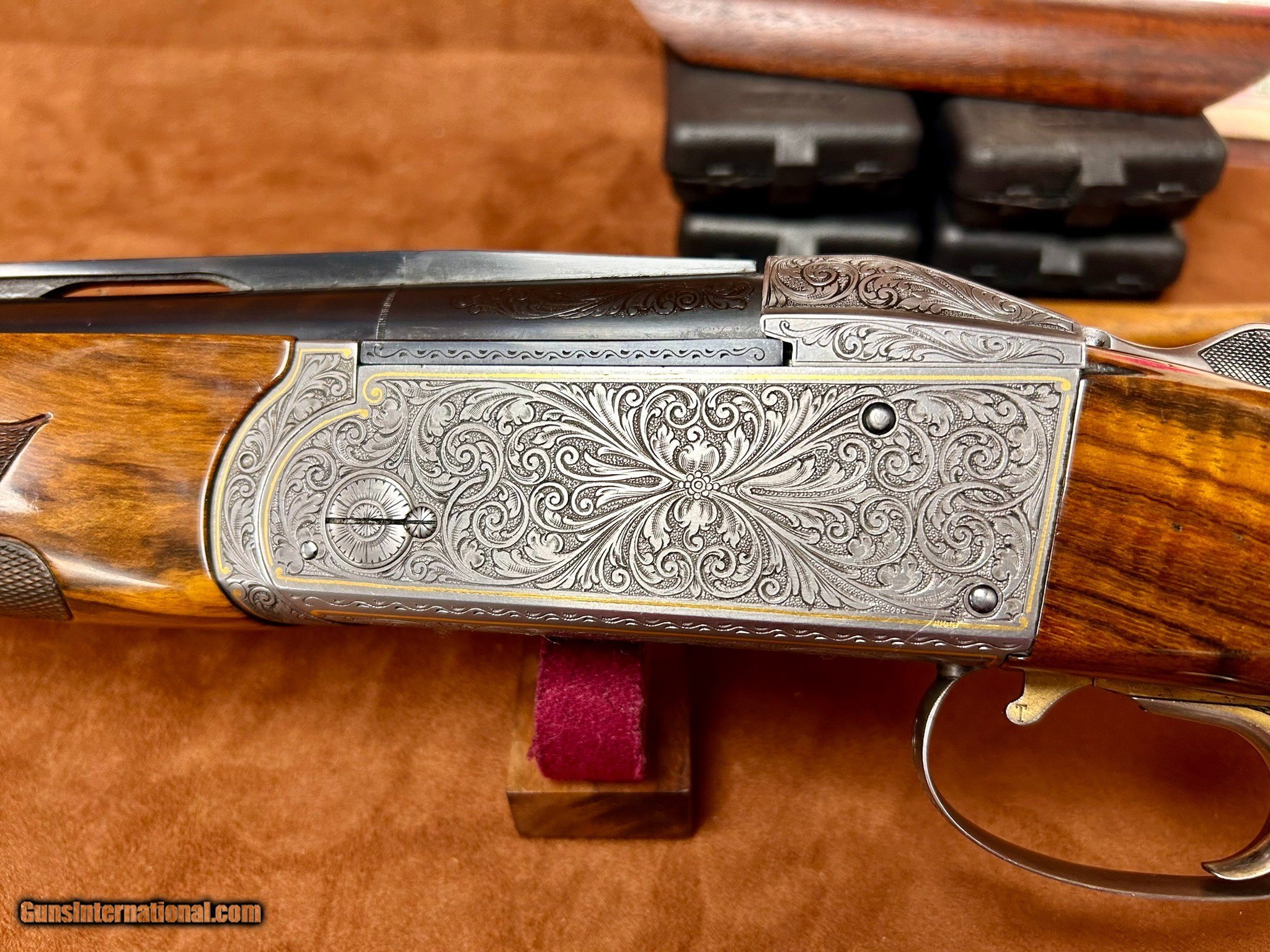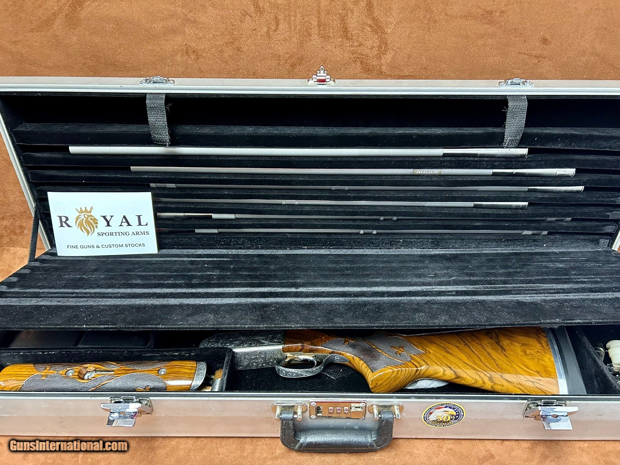 The Krieghoff K32 fully engraved by Angelo Bee with spectacular wood and a full set of subgauge tubes is a masterpiece of gunsmithing. It is ideal for the competitive shooter who appreciates the artistry and history of fine firearms, as well as for the collector looking for a standout piece. This shotgun not only offers superb functionality across multiple shooting disciplines but also stands as a significant investment in terms of both value and craftsmanship. Whether used in competition or displayed as part of a collection, this Krieghoff K32 represents a pinnacle of shooting sport luxury. To for IMMEDIATE ASSISTANCE CALL OR TEXT 954-676-0714 SOLD Shotgun Gauge: 12 Gauge |