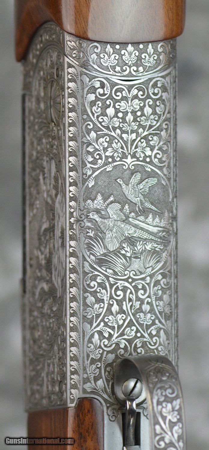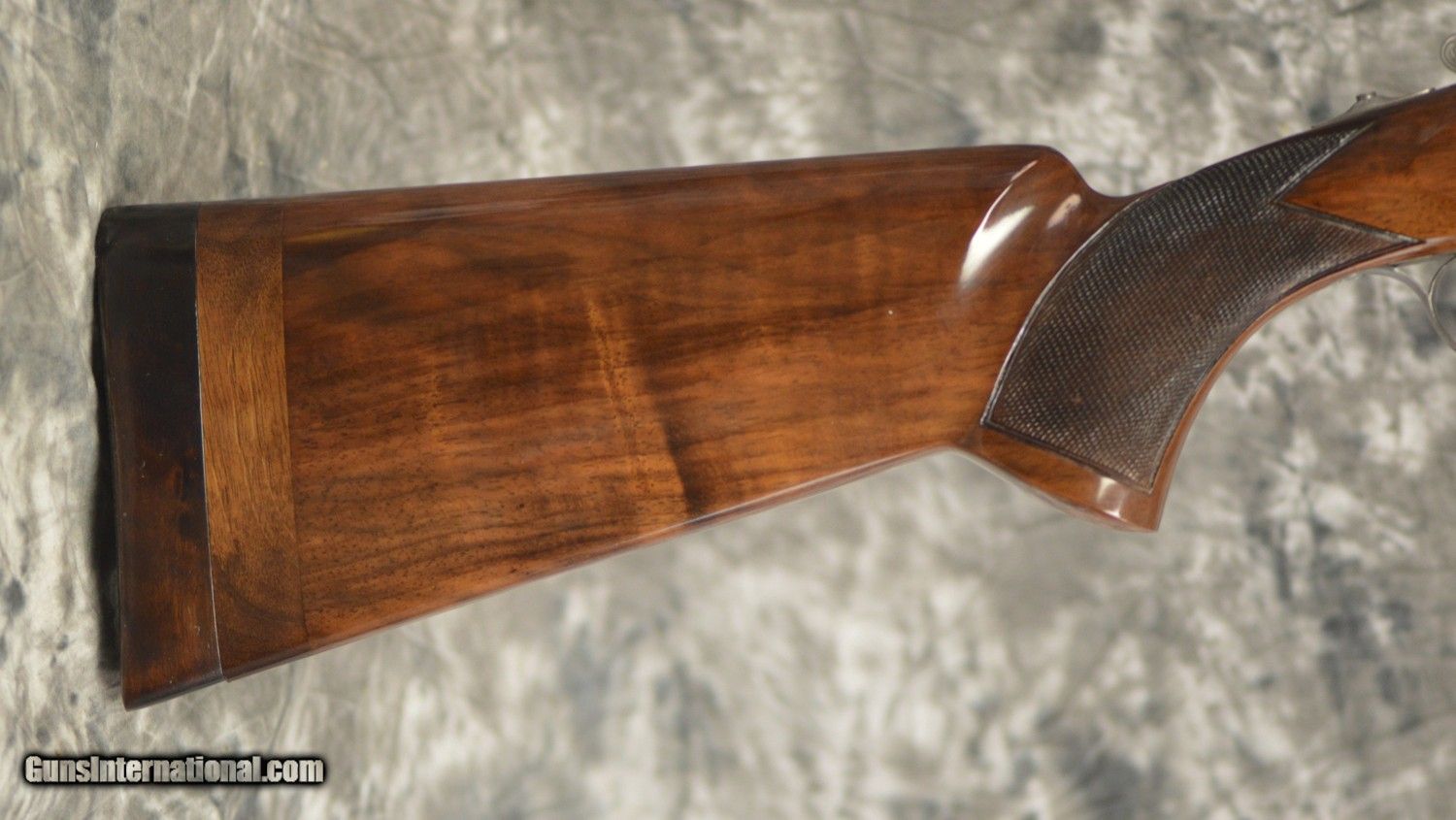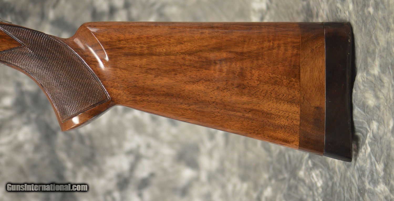 Description: Pre-Owned Krieghoff K32 Phantom San Remo 12GA with 26" fixed choke (Negative/Negative) barrels. Aluminum receiver with full coverage, deeply engraved scrolls and game scenes (unsigned). Mechanically in outstanding condition, receiver shows no signs of cracks or damage. Refinished Krieghoff 32 Stock with splices to checkered butt, beavertail forearm. Refinsh has been professionally done and shows minor signs of wear. Consignment, ineligible for trade-ins. SOLD |