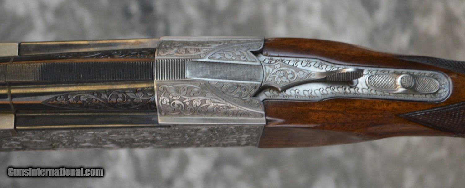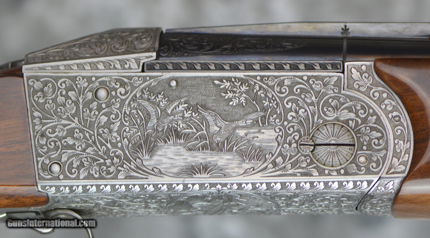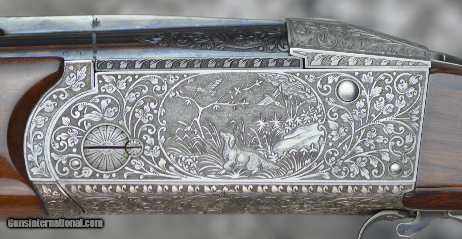 Description: Pre-Owned Krieghoff K32 Phantom San Remo 12GA with 26" fixed choke (Negative/Negative) barrels. Aluminum receiver with full coverage, deeply engraved scrolls and game scenes (unsigned). Mechanically in outstanding condition, receiver shows no signs of cracks or damage. Refinished Krieghoff 32 Stock with splices to checkered butt, beavertail forearm. Refinsh has been professionally done and shows minor signs of wear. Consignment, ineligible for trade-ins. SOLD |