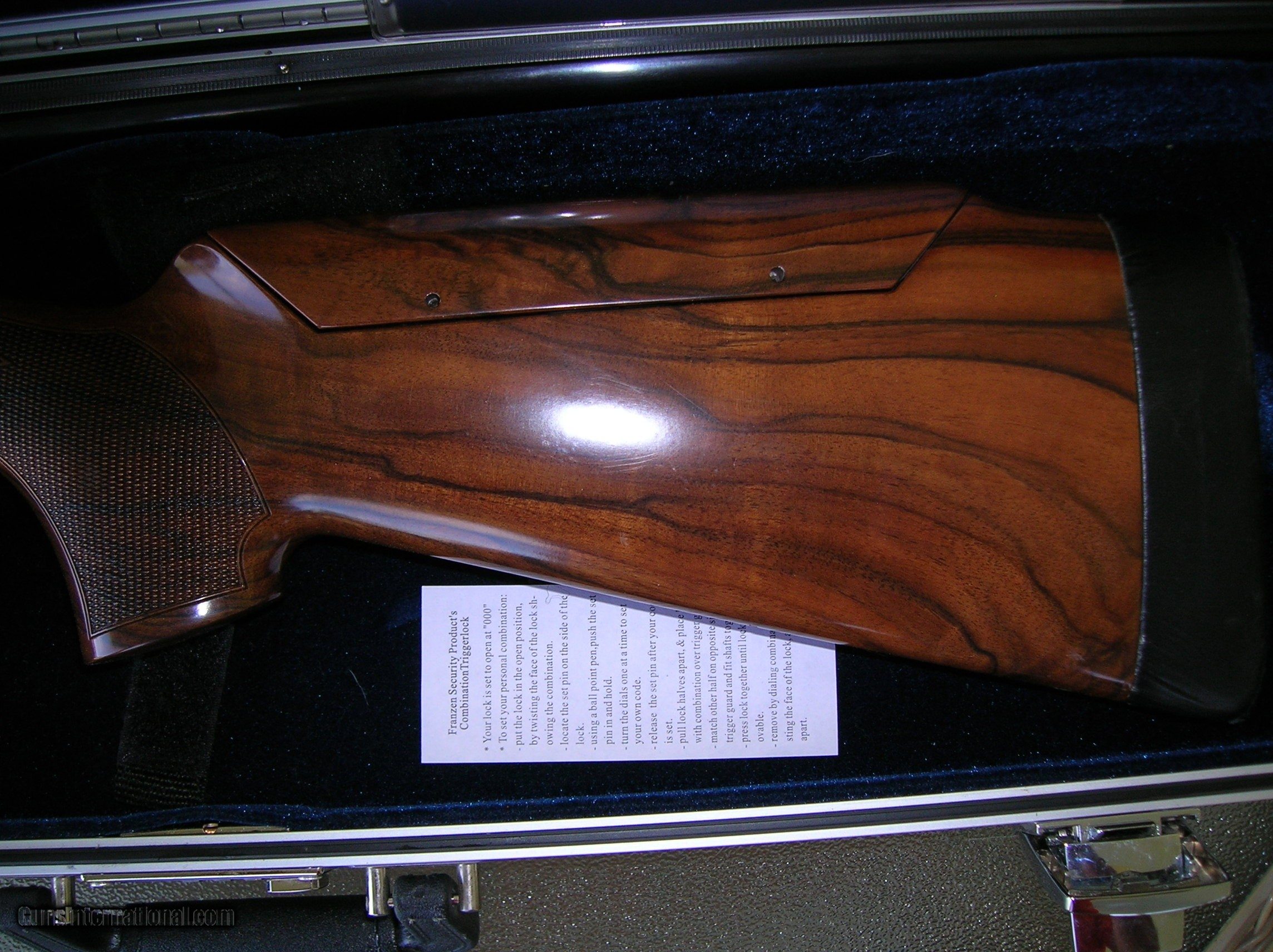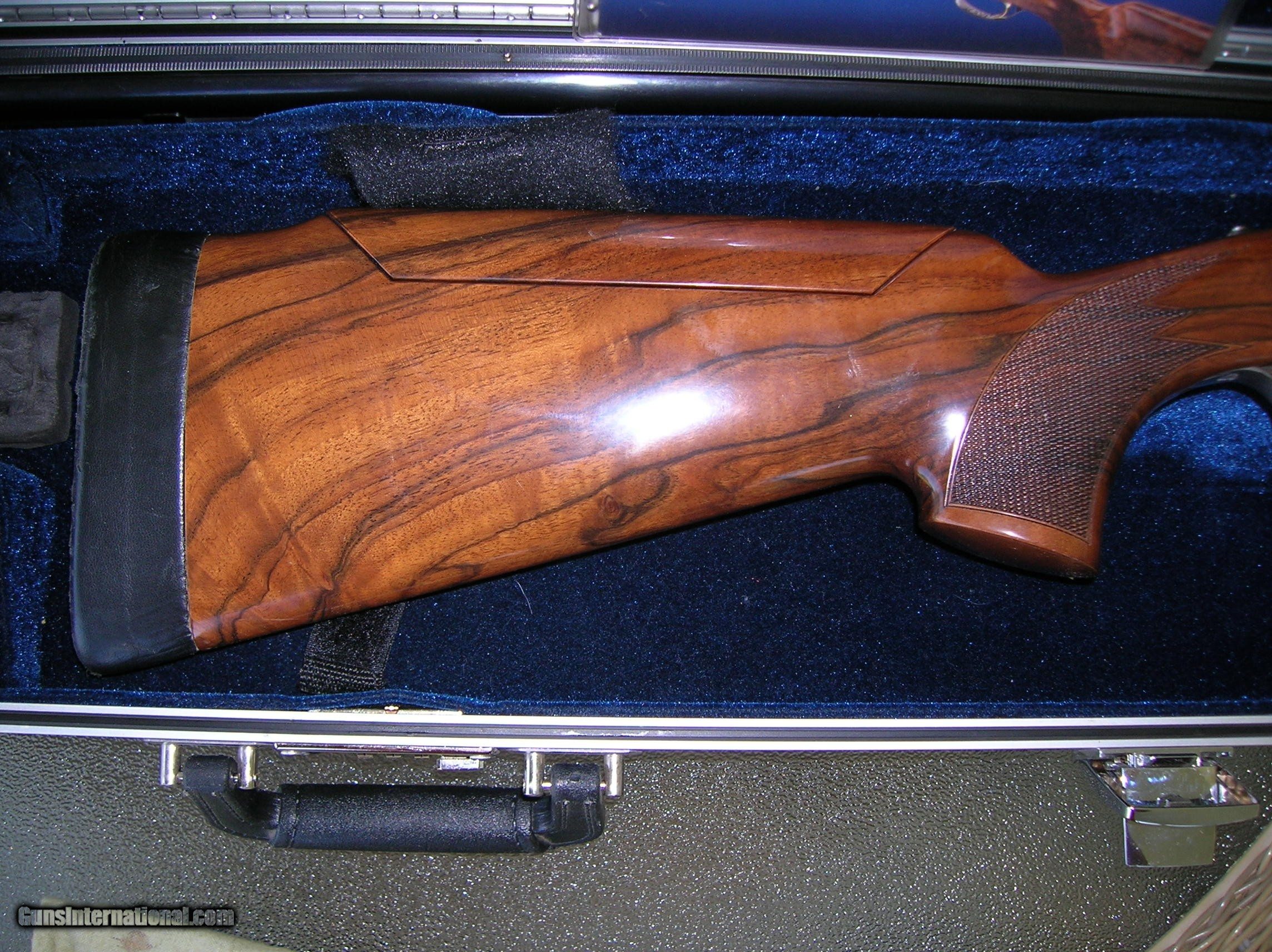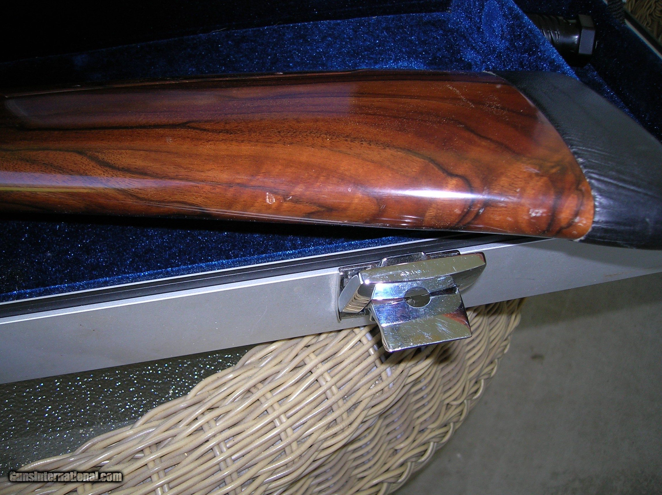 Description: SALE PENDING. This is a Standard Grade K80, #081837, late 2008/early 2009 era shotgun. It has nickel pins, hood, etc. It also has LEFT HAND factory wood. It has a 32" flat-rib factory choke tube barrel. The wood is #3 factory with a schnabel fore arm. LOP is 15-1/4" over a 1-1/2" leather pad. The wood is in good condition for the age of the gun, showing only typical blems and marks. The barrels are excellent, showing no galling and minimal wear to the rib bluing on each edge. The barrel length (without chokes) is actually about 31-3/4", but is unaltered from the factory. The chokes are IC and MOD. The factory Americase is nice, showing the usual scuffs and discoloration for its age. There is no discernible wear to the receiver, including the breech-face. A spare wide-body trigger is included. This is a solid "no excuses" K80, needing only to continue to be cared for and enjoyed. Call with any questions. 352-236-0485 SOLD Shotgun Gauge: 12 Gauge Manufacturer: Krieghoff Model: K80 Barrels: 32 Stock: #3 LH Engraving: Standard |