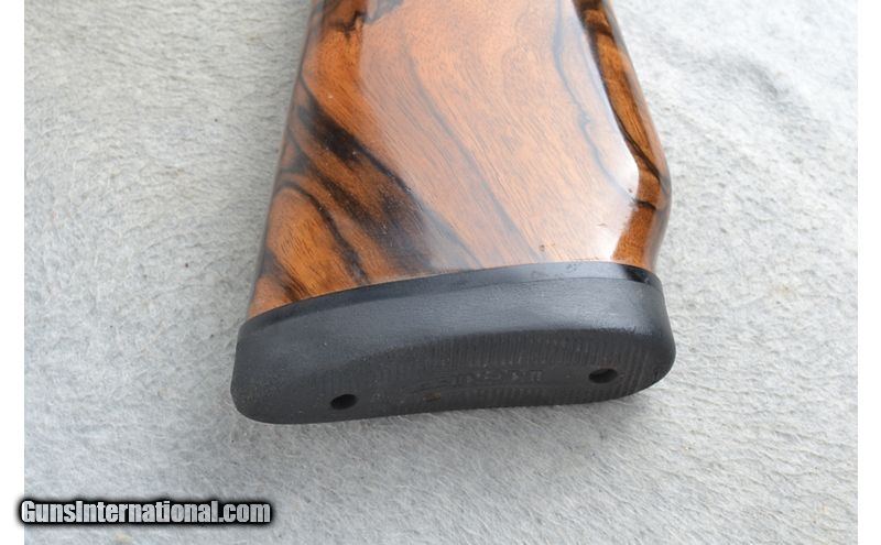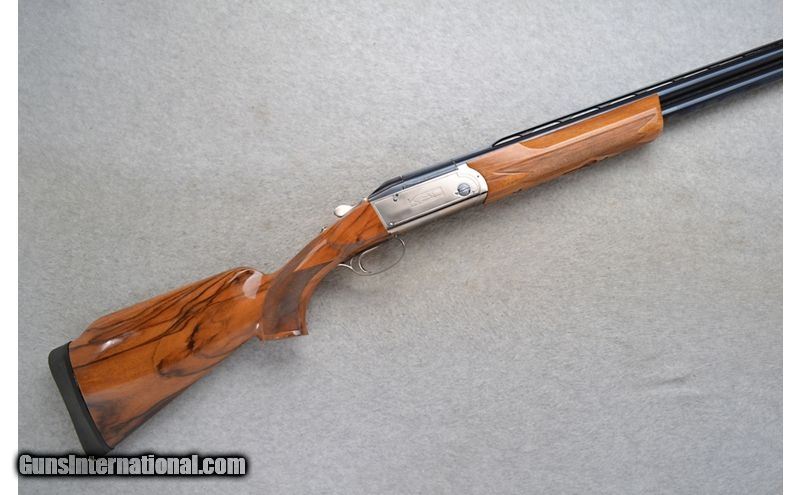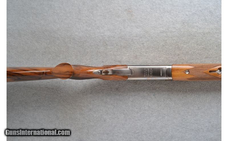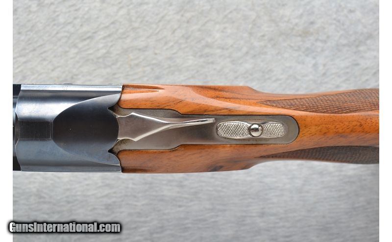 Description: This Krieghoff Model K80 is a two barrel - two butt stock 12 Ga. shotgun. The butt stocks are for right hand or left hand. There is a 30 inch ported Over and Under separated barrel with a top barrel ventilated rib and a 34 inch ported single barrel with an adjustable high post ventilated rib. Both barrels have ejectors. Both barrels have a white bead front sight and a metal middle bead sight. The Over and Under has fixed F and IM chokes. The single barrel has fixed F choke. It has an Adjustable Release Trigger. The butt stocks are both checkered grip walnut pistol grip with the right hand have an adjustable butt pad. The forearm is a checkered grip walnut with finger grooves. It comes in a locking hard case. 12 Gauge SOLD Chambers: 2 3/4 inch both barrels. Metal Condition: Very good with some minor surface use marks. Wood Condition: Forearm has some light handling marks. Left Butt stock is very good with some light handling marks. Right butt stock has handling marks and fine surface lacquer cracks. Bore Condition: Shiny. Barrels: 30 inch ported separated Over and Under barrels with a top barrel ventilated rib and ejectors. 34 inch ported single barrel with an adjustable high post ventilated rib and ejector. Triggers: Adjustable Release Trigger. Stock Dimensions: LOP 14 3/8 inch. DAC 1 3/8 inch. DAH 1 3/4 inch. Fore End: Checkered grip walnut with finger grooves. Butt Pad: Left is KICK EEZ black rubber. Right is Decelerator black rubber. Weight: 8 lb. 9 oz. Sights: Both barrels have a white bead front sight and a metal middle bead. Chokes: Over and Under has fixed F & IM chokes. Single has fixed F choke. Item Location: Richfield, WI |