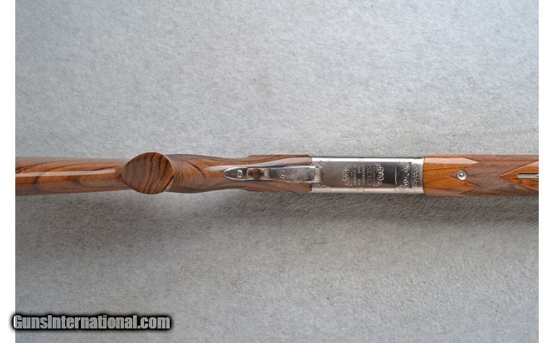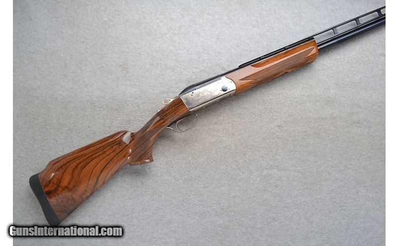 Description: This Krieghoff Model K80 is a single shot right hand or left hand 12 Ga. shotgun. It comes with two butt stocks. The left hand is fixed and the right hand has an adjustable comb and LOP butt pad. Both butt stocks are checkered grip walnut pistol grips. The forearm is a checkered grip walnut with finger grooves. It has a 32 inch barrel with an adjustable high post ventilated rib and ejector. It has an adjustable release trigger. The coin finished receiver is nicely engraved. Comes in a locking hard case. 12 Gauge SOLD Chambers: 2 3/4 inch. Metal Condition: Excellent. A few minor surface use marks. Wood Condition: Excellent. A couple of minor handling marks. Bore Condition: Shiny. Barrels: 32 inch barrel with an adjustable high post ventilated rib and ejector. Triggers: Adjustable Release Trigger. Stock Dimensions: LOP 14 3/8 inches. DAC 1 3/8inch. DAH 1 7/8 inch. Fore End: Checkered grip walnut with finger grooves. Butt Pad: KICK EEZ Black rubber recoil pad. Weight: 8 lb. 9 oz. Sights: White front bead. Metal middle bead. Chokes: "Comes with 3 choke tubes numbered 2, 3 & 4. Item Location: Richfield, WI |