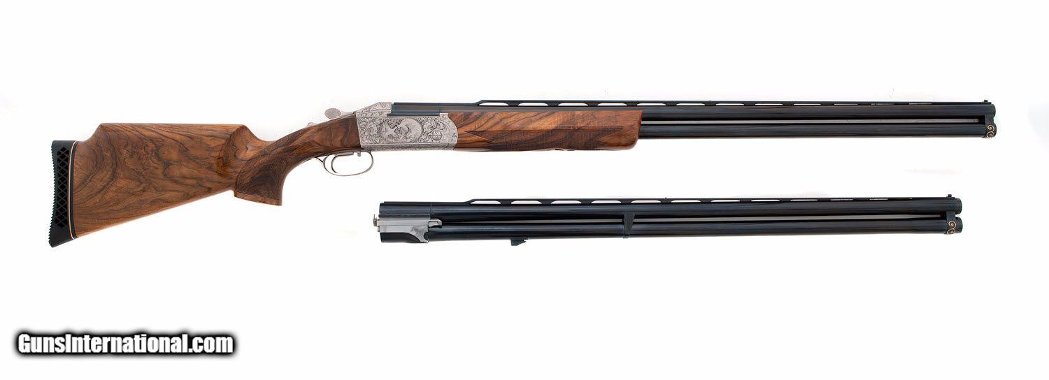 Description: Krieghoff - K80 - 12 ga - Item Number: KRI031744.1 Shotgun type: O&U Action: Boxlock Ejectors: Yes Trigger: Single Grip: Pistol Grip Forend: Checkered Lop: 14 1/2 " Pad thickness: 1 " Type of butt: Pachmayr Pad Drop comb: 1 1/4 " Drop heel: 2 1/8 " Cast amount: 0 " Weight: 9 lbs, 4 oz Manufactured in: USA Manufacture Year: Finish: Coin Overall condition: Very Good Stock condition: Very Good Metal condition: Very Good Stock: Original finish Metal: Original finish Type of Case: Krieghoff Americase Extra barrels: 0 Barrel info: Gauge: 12 ga Chamber: 3 " Length: 30 " Chokes: F/XF Rib type: Ventilated Comments : Gun is in near new condition. 32" barrels have fixed F/XF chokes, 30" barrels have six choke tube. SG-56 G4 SOLD |