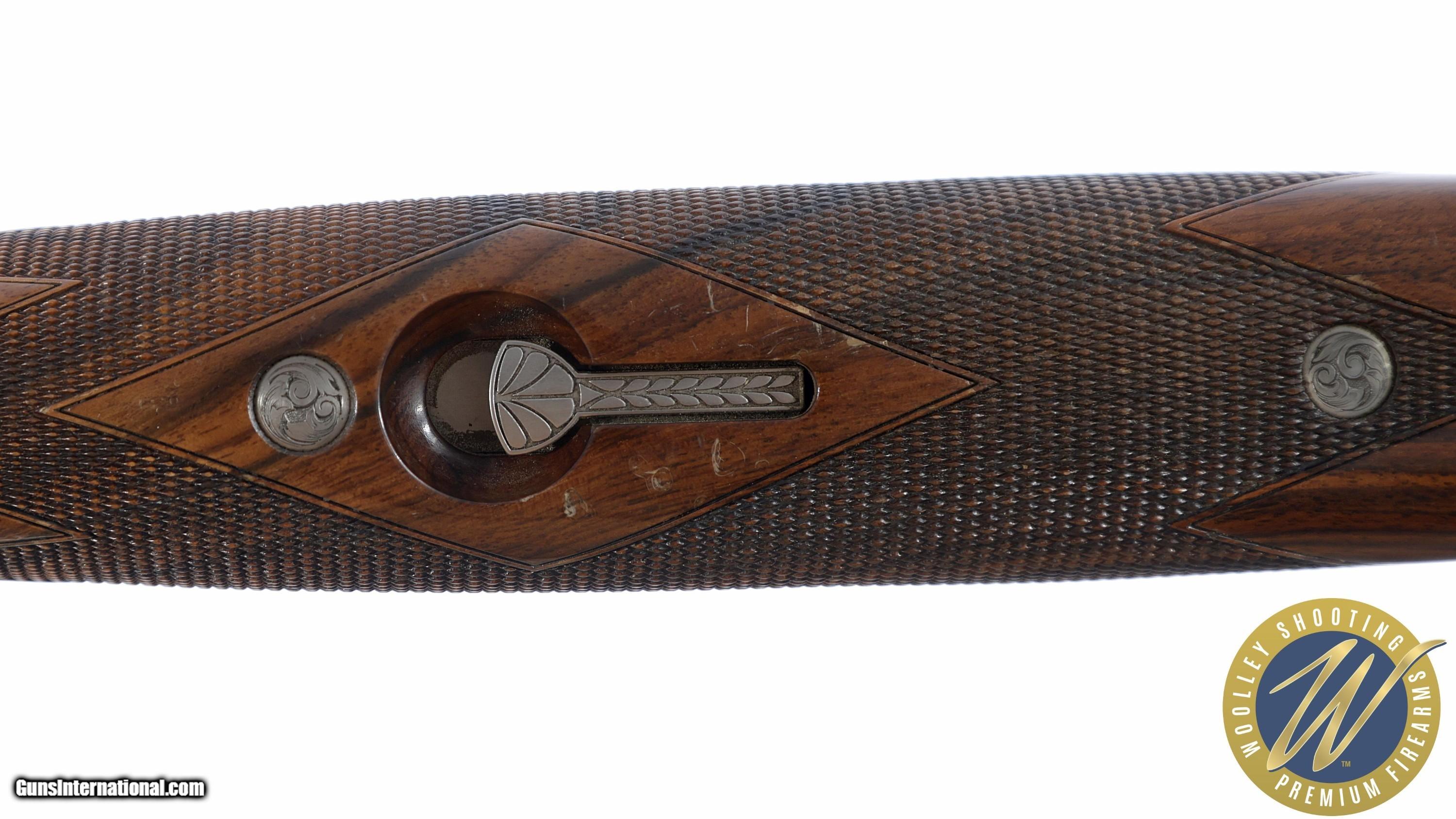 • Gauge: 12 Gauge (20ga, 28ga, .410 Briley tubes) • Action: Over/Under • Barrel Length: 32" • Bore: 18.6mm 3" Chamber • Rib: Ventilated and Adjustable • Receiver Finish: Engraved steel (Bavaria Royale grade with game scene engraving) • Barrel Finish: Blued • Stock Type: Right-hand Monte Carlo with adjustable comb • Wood Grade: Turkish Walnut • Stock Finish: Hard Lacquer(attached stock); Hard lacquer (extra stock) Attached Stock Measurements • Length of Pull (LOP): 14 3/4" • Drop at Comb (DAC): 2" • Drop at Monte Carlo (DAMC): 2 1/2" • Drop at Heel (DAH): 3.12" • Cast: Off 3/16" • Trigger System: Single selective trigger, adjustable • Safety: Manual tang safety with barrel selector • Ejectors/Extractors: Automatic ejectors • Choke System: Factory chokes for both barrels • Chokes Included: Factory chokes for both barrels • Weight: 8 lbs 11.2 oz (8.7 lbs) • Hand: Right-Handed • Special Features: Factory, aftermarket ported barrel, extra non-ported carrier barrel, extra stock, full Briley Ultralight tube set ASKING PRICE: $19,995 Woolley Shooting LLC 900 Big Oak Road, St. Augustine, FL 32095 Phone: (904) 295-8483 Email: infowoolleyshooting : woolleyshooting CALL OR TEXT FOR BEST PRICE! (904) 297-8438 DISCLOSURE: Used firearm sold as-is and must be shipped to a licensed FFL dealer. Background check required. All federal, state, and local laws apply. The Krieghoff K80 Bavaria Royale is among the finest competition shotguns made, with premium engraving and wood. This is a well-used gun with cosmetic wear including chips, scratches, and dents on wood, and scratches on barrels. Mechanically sound with good bores. Includes full Briley Ultralight tube set (20/28/.410), two carrier barrels (factory ported and extra non-ported), and an extra dark lacquer Monte Carlo stock (no forend). This is a complete multi-gauge competition package. Round count unknown. Specifications subject to verification upon inspection. Price: $19,995.00 Contact Seller |