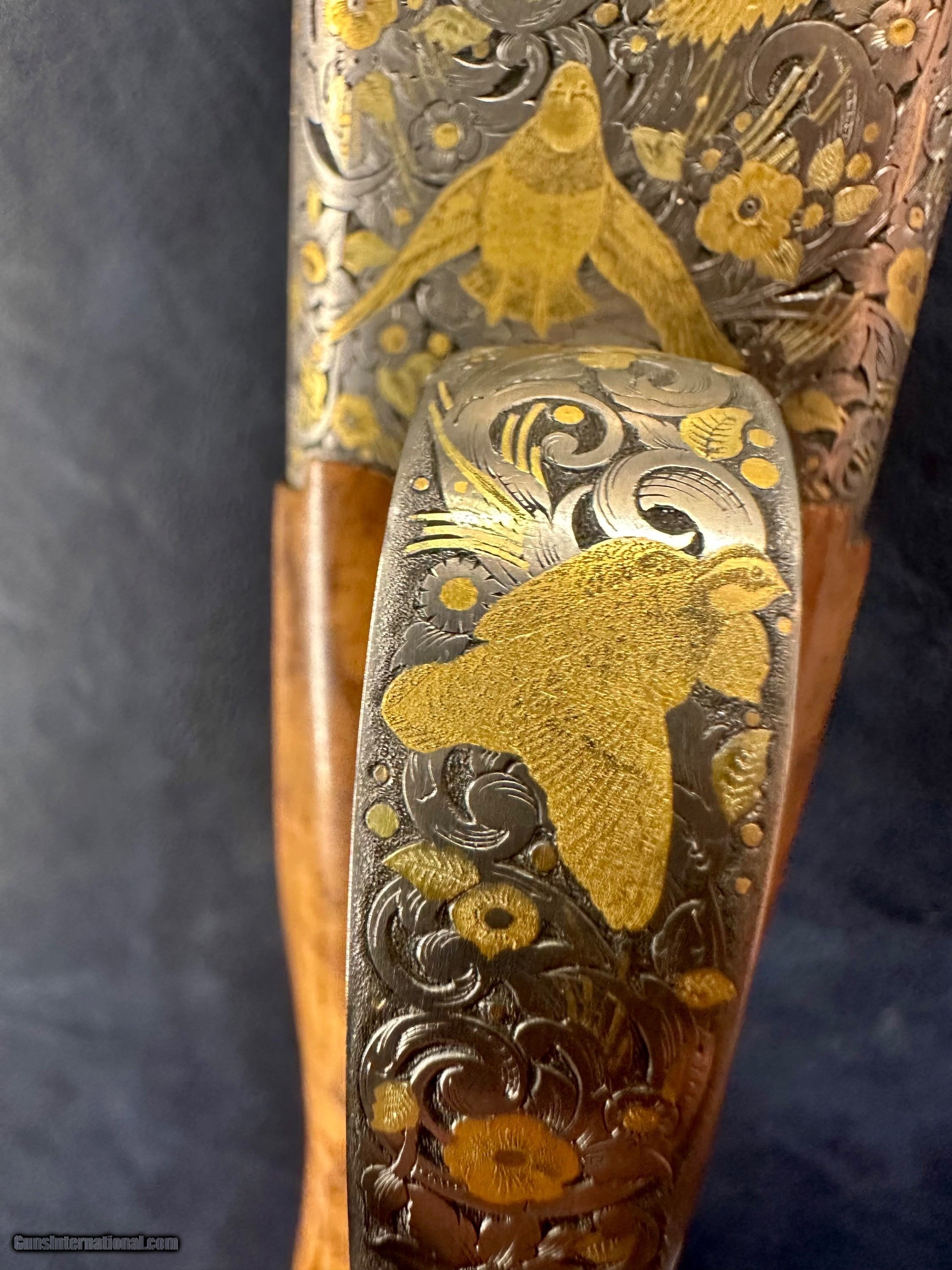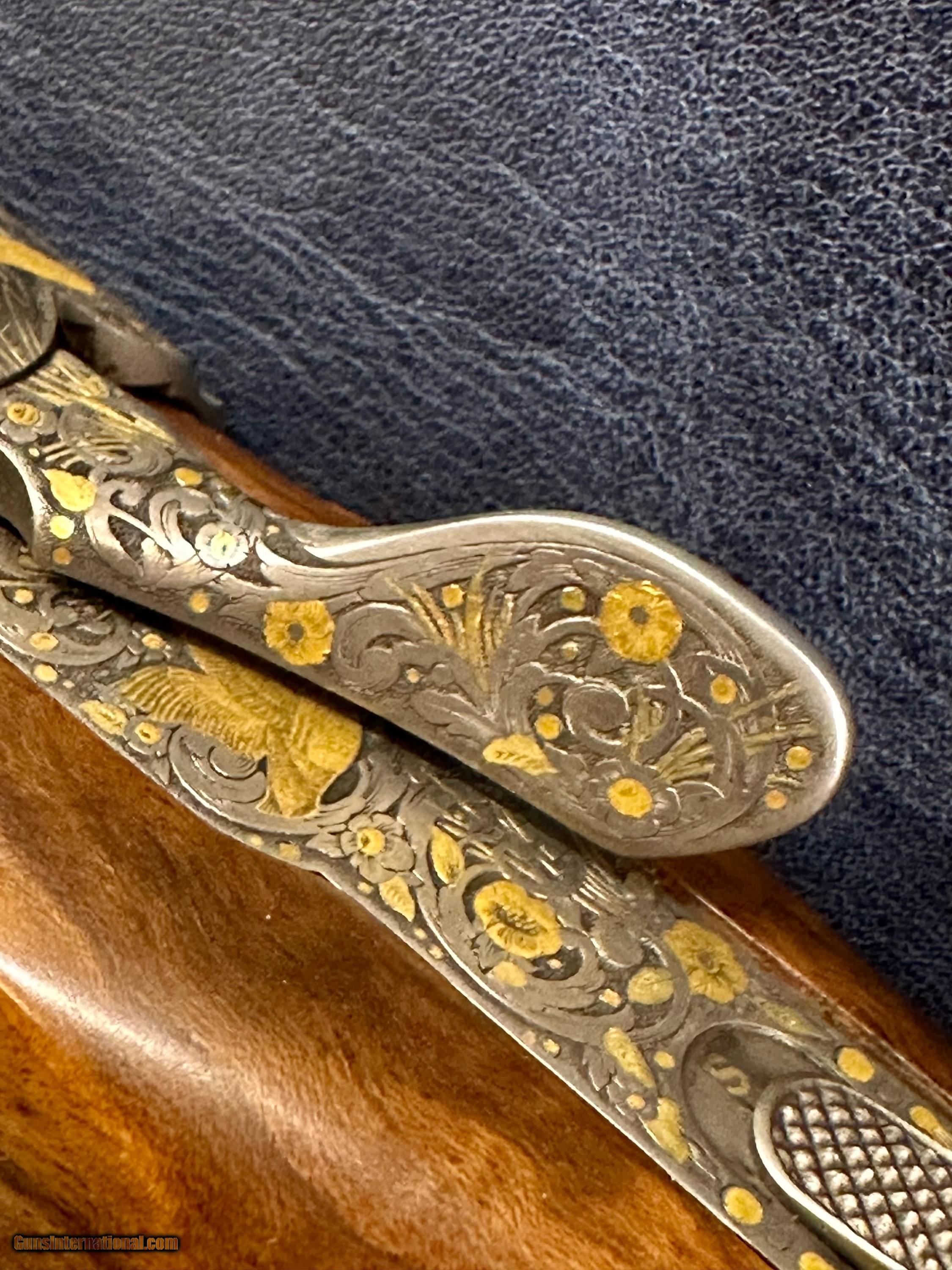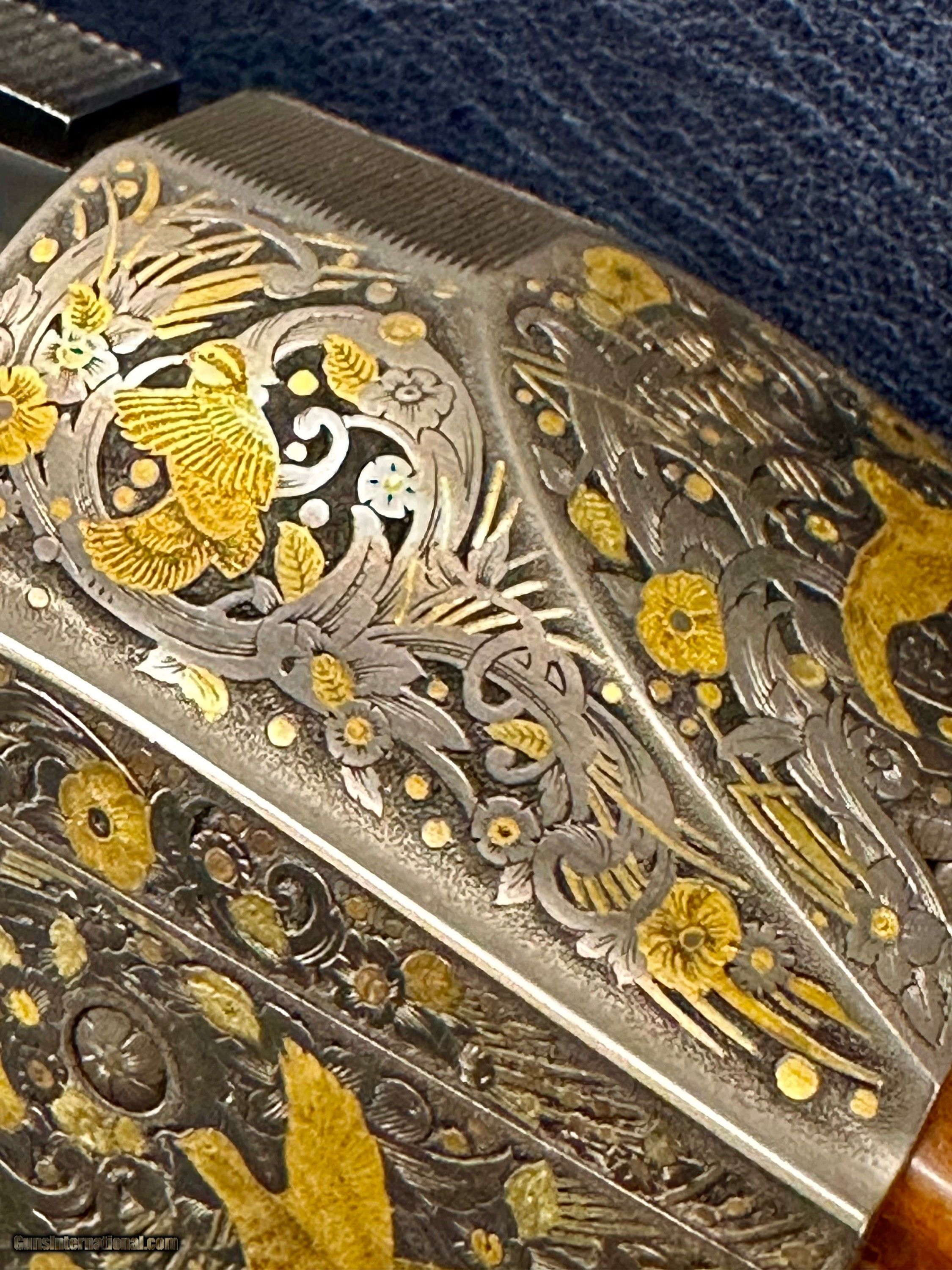 Description: A magnificent Pre owned never fired K80 Gold Quail Covey by G.S Pedretti. Functional Art ! HighlandUSA is a Premier Krieghoff Dealer located in Hunt Valley Md. full one year warranty, stock fitting / try the K80 in our simulator lounge. Highland custom shop makes stocks, pads , combs, refinishing, This is a one of kind K80 ! Don't blend in stand out with this beautiful Gold Quail Covey. Shotgun Gauge: 12 Gauge Manufacturer: Krieghoff Model: K80 Gold Quail Covey Serial Number: 109000 Barrel Length: 30” Ejectors: The best & perfect Condition: Mint condition Metal Condition: Perfect Wood Condition: Amazing Bore Condition: So clean Action: O/U Triggers: Mechanical Stock Dimensions: Standard ADJ Comb LOP: 15” approx Rib: Flat Finish: High gloss Weight: 9lbs Manufacture Date: 109000 Chokes: Full set Engraving: G.S. Pedretti Case: Yes Item Location: Hunt Valley Md 21031 Price: $74,995.00 Shipping: $125.00 Contact Seller |
