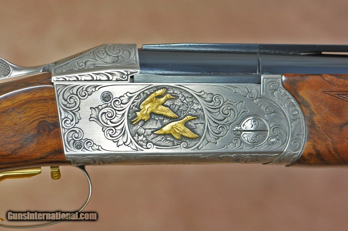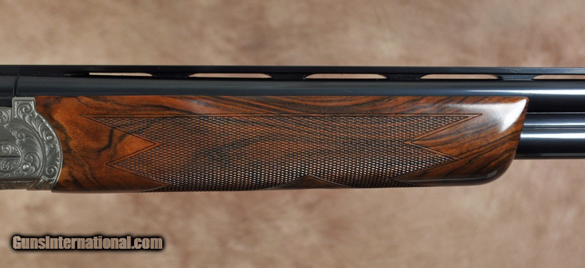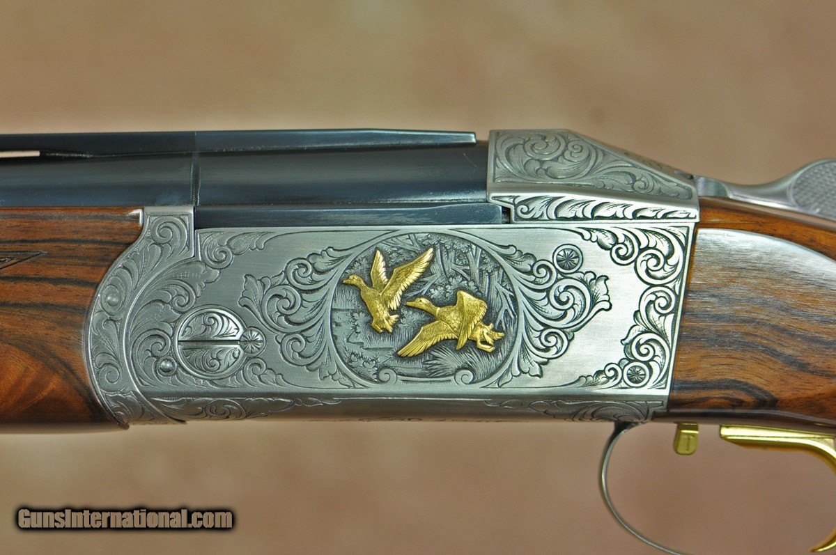 Description: Pre-owned, in excellent condition, Krieghoff K80 Gold Bavaria Royale Parcour X 12ga. Features factory flush thin wall choke tube 32" barrels with flat sporting rib. Engraved receiver featuring scroll patterns with gold waterfowl game scenes hand engraved by German master engraver Anna Mack. Outstanding right handed Parcours stock with adjustable comb and Parcours forend. Comes in factory leather trim case. SOLD Shotgun Gauge: 12 Gauge |