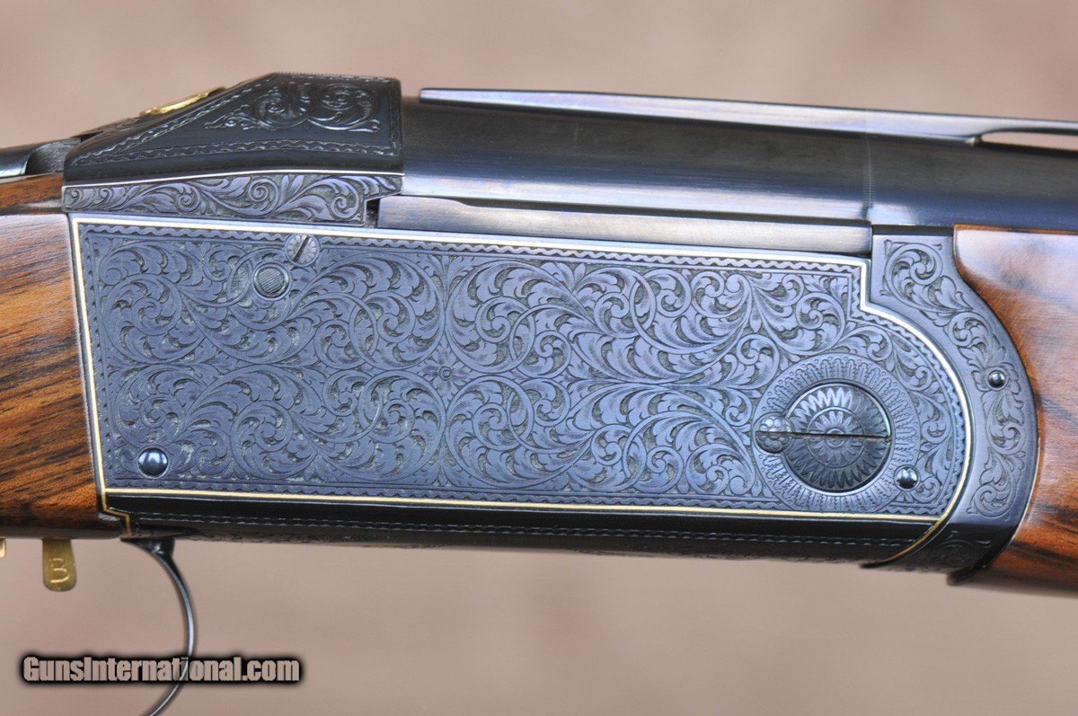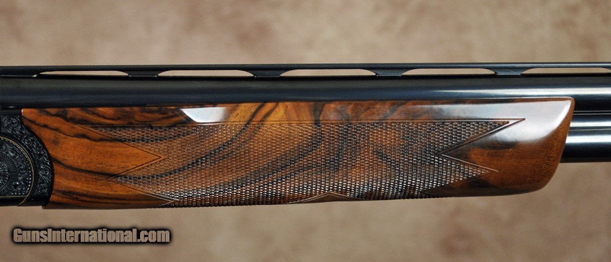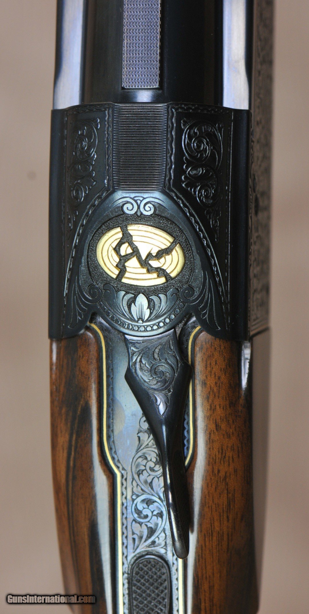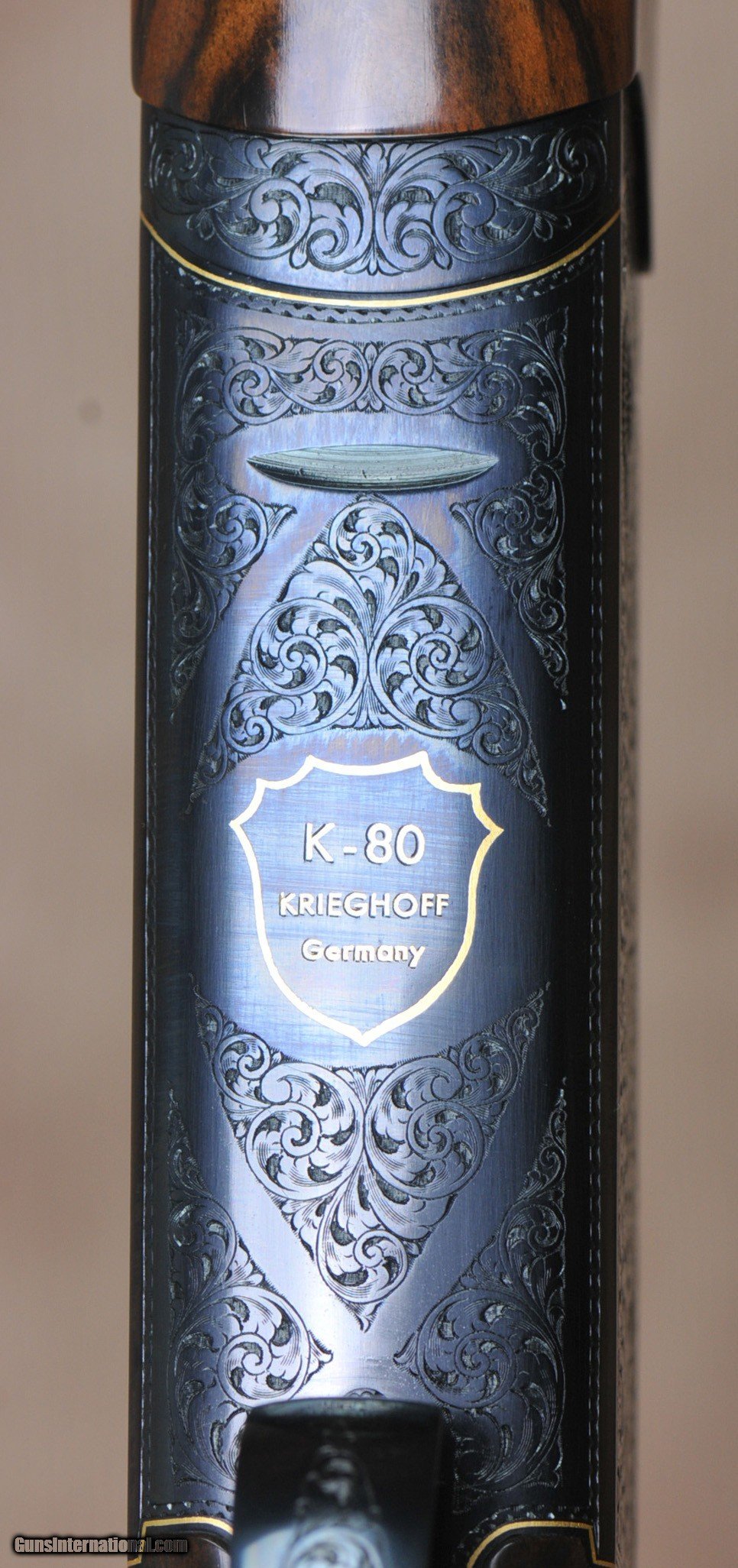 Description: Pre owned in ” Like New ” condition Krieghoff K80 Gold Plantation parcours. Features engraving by Badallini with Gold target top latch. 32″ parcour barrel with fixed chokes, (M/IM). at 005 Parcours stock with adjustable comb and factory Americase. SOLD |
