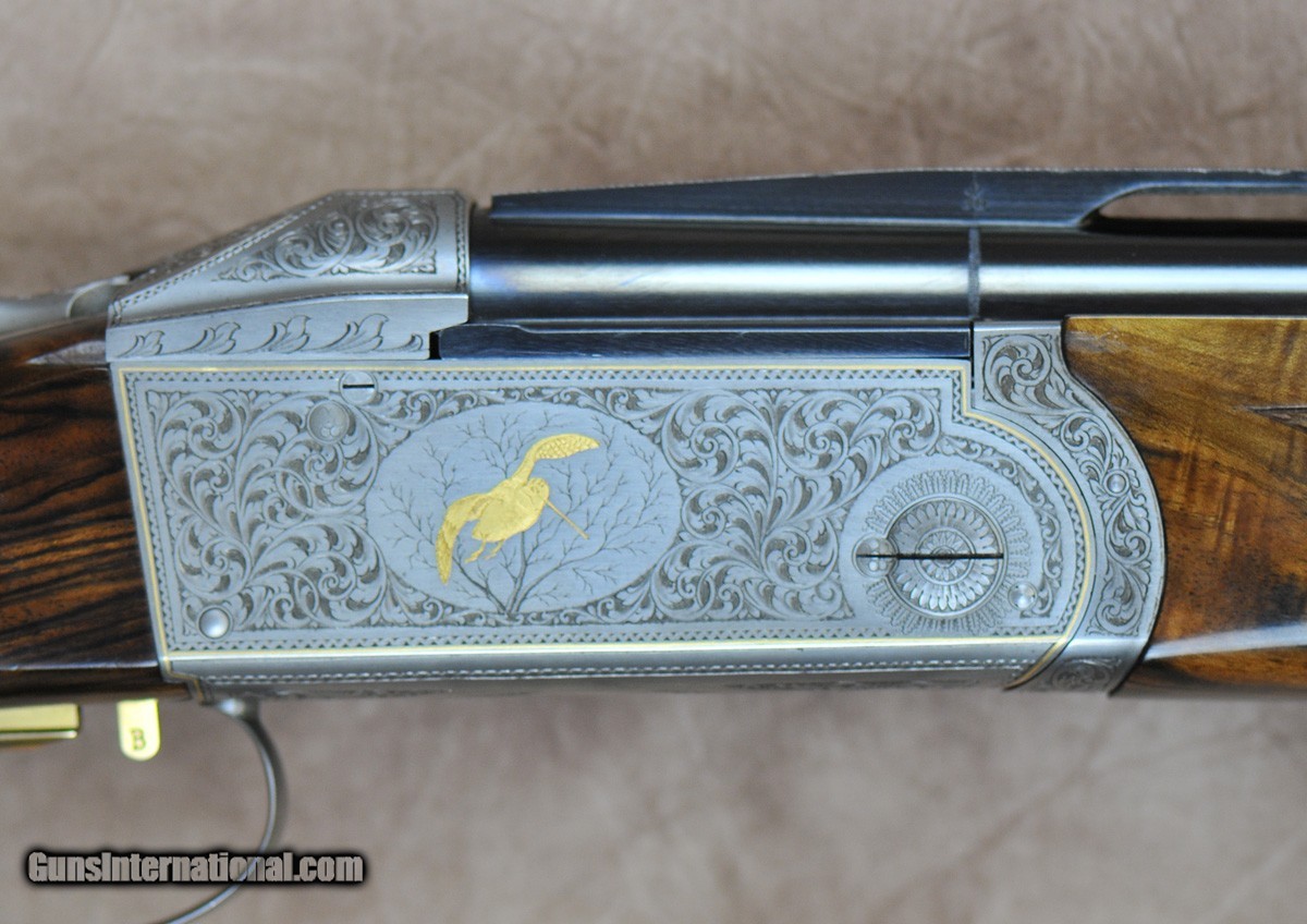 Description: Pre owned in excellent condition Krieghoff K80 Gold Plantation 12 gauge. Features coin receiver with 30" factory C/T barrels. (8) steel chokes included. 12 mm x 8 mm flat tapered rib. Highly figured Turkish Walnut custom stock. Stock dimensions are; 1 3/4' x 2" x 2 1/2". LOP 14 1/4". Over all weight 8 lbs 9 oz. Set included factory Americase. Contact our Michigan location at 248-960-7262 for additional information. Refer to (945) SOLD |