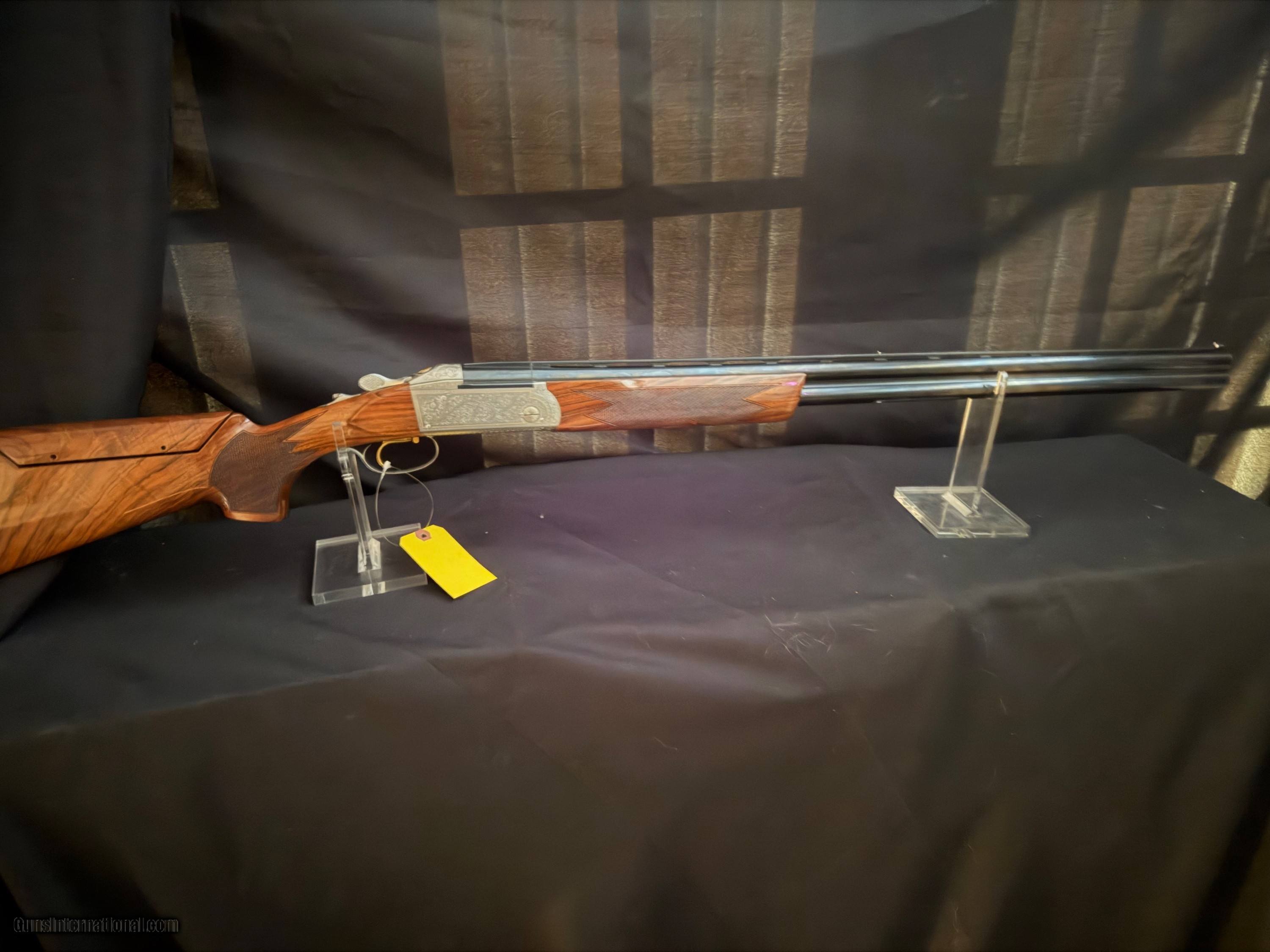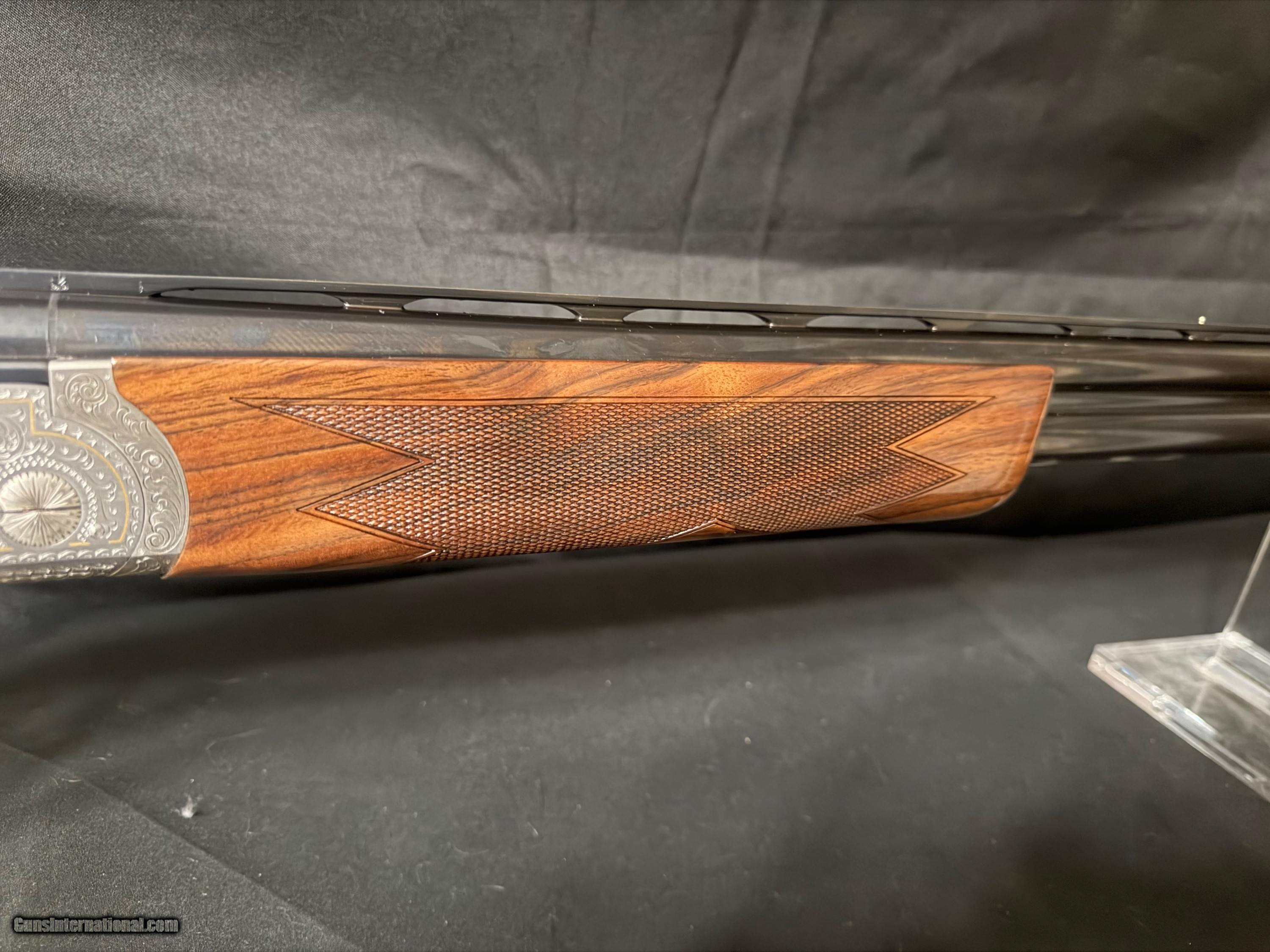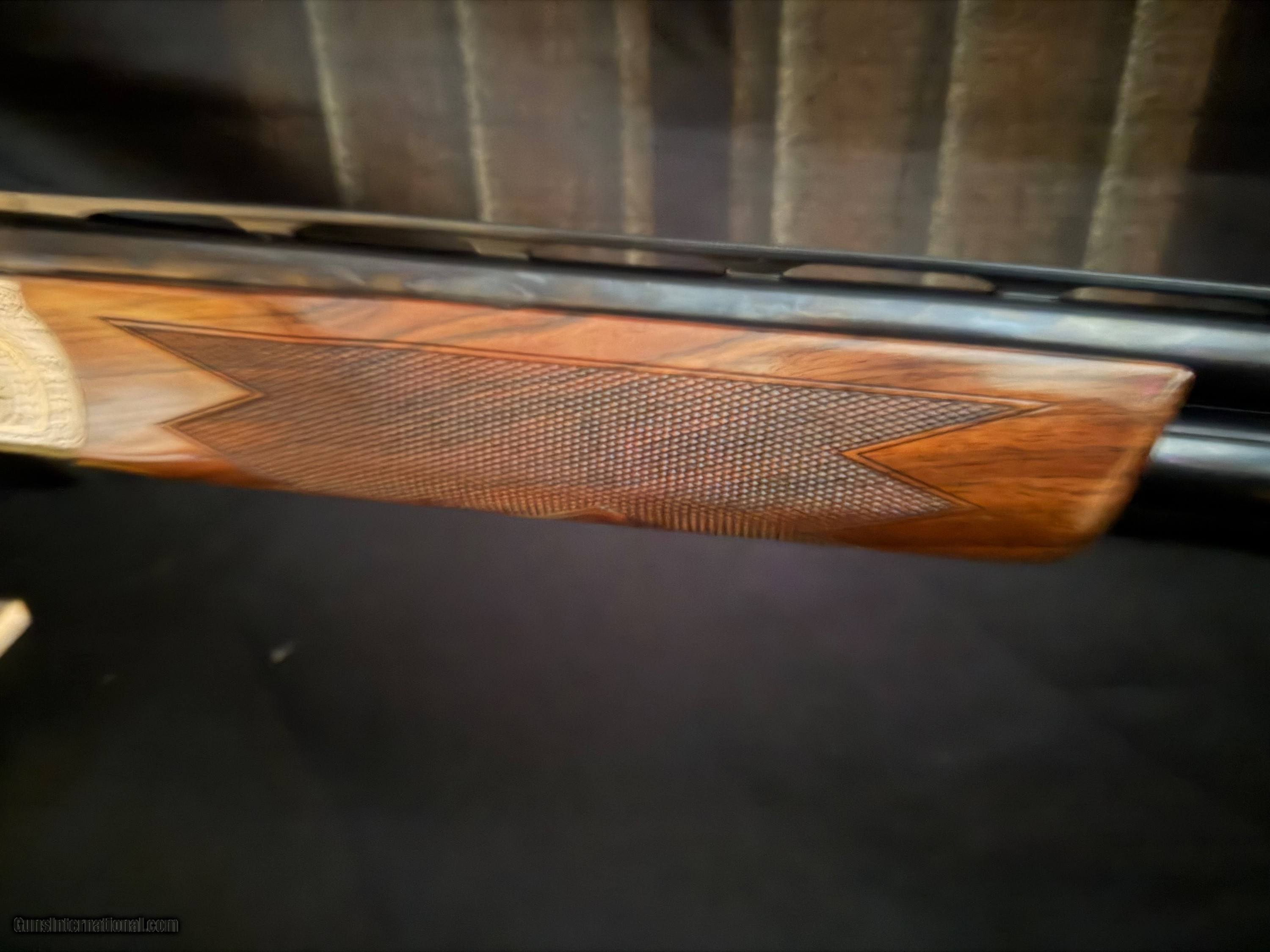 Description: Krieghoff K-80, Gold Super Scroll (Silver) BEAUTIFUL!!, This fine firearm sports 32 inch PARCOUR barrels with thin wall Briley Choke Tubes. The PARCOUR barrel gives the K80 a lighter more balanced feel than the traditional sporter barrel. The feel of the gun makes it feel lively. The engraving which is superb condtion features a gold border around the deep chiseled engraving. On the top cap there is a beautiful gold broken clay target. That is a 2500 add on. The ambidextrious, twin palm swell, adjustable comb stock features a 14.5 lop an nice grain an feathering. The gun incluldeds an Americase. This target crusher is in outstandig condition. New price is $35,000.00 Buy this one for $22,500.00 Shotgun Gauge: 12 Gauge Manufacturer: Krieghoff K80 Model: Gold Super Scroll (Silver) Barrel Length: 32 Bore Info: 735 Chambers: 2 3/4 Condition: As New Metal Condition: As new Wood Condition: As New Bore Condition: Shiny and Bright Stock Comb: Adjustable Stock Heel: Adjustable LOP: 14.5 Chokes: Briley Thing Wall Case: Americase Krieghoff Price: $22,500.00 Buy Now Contact Seller |