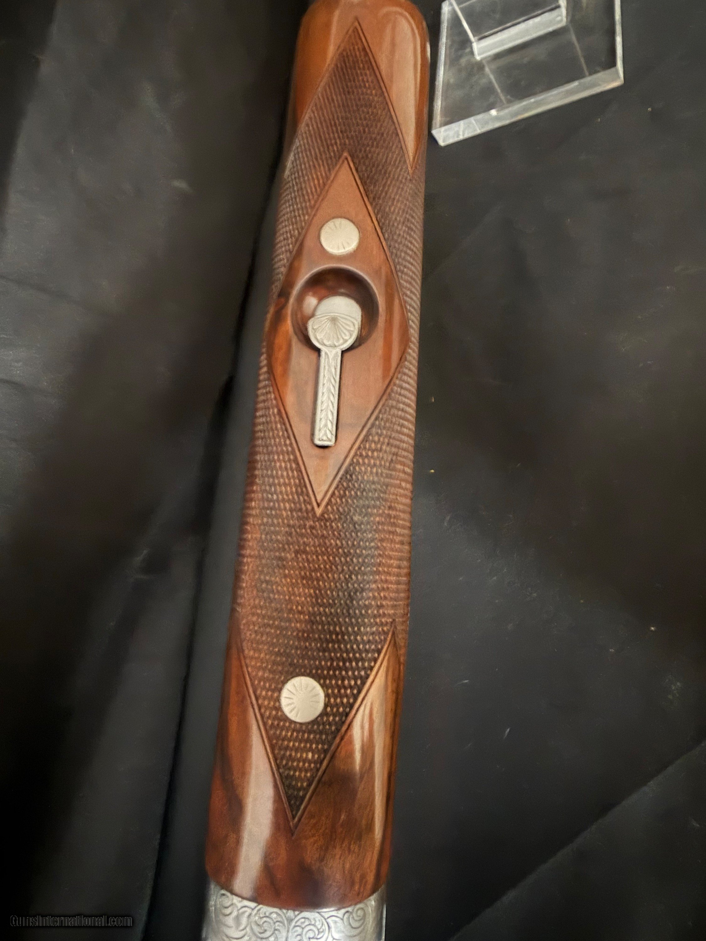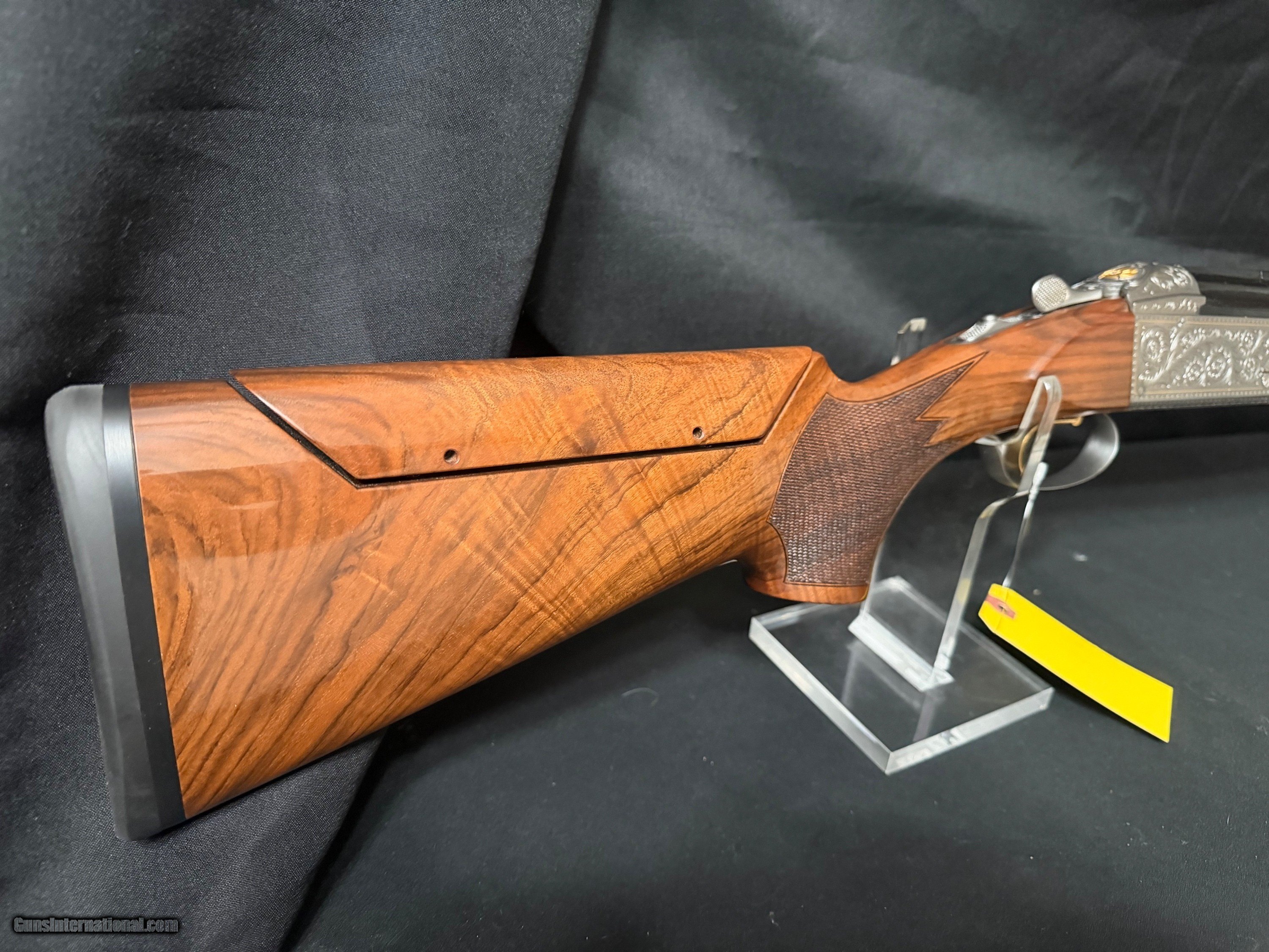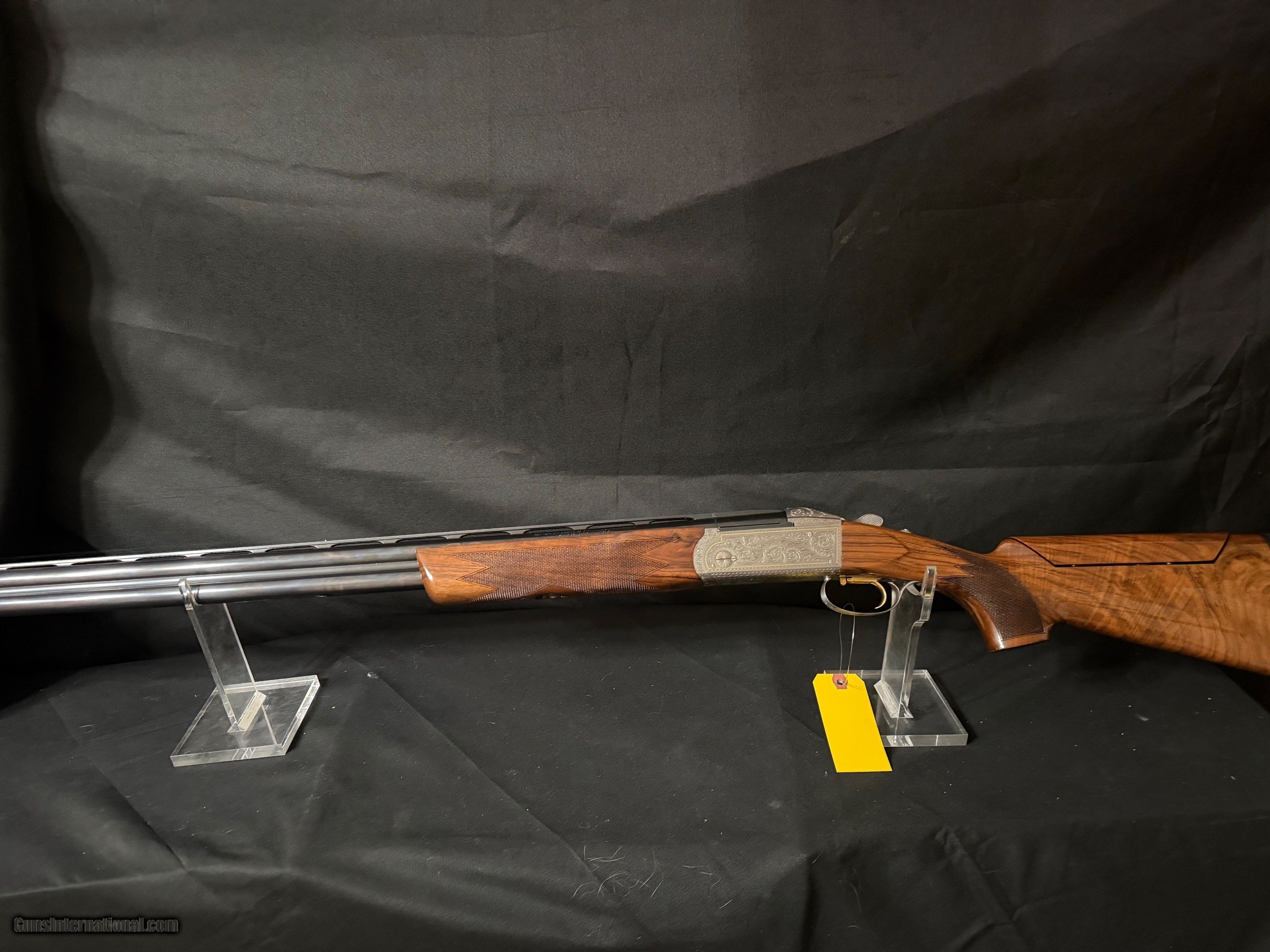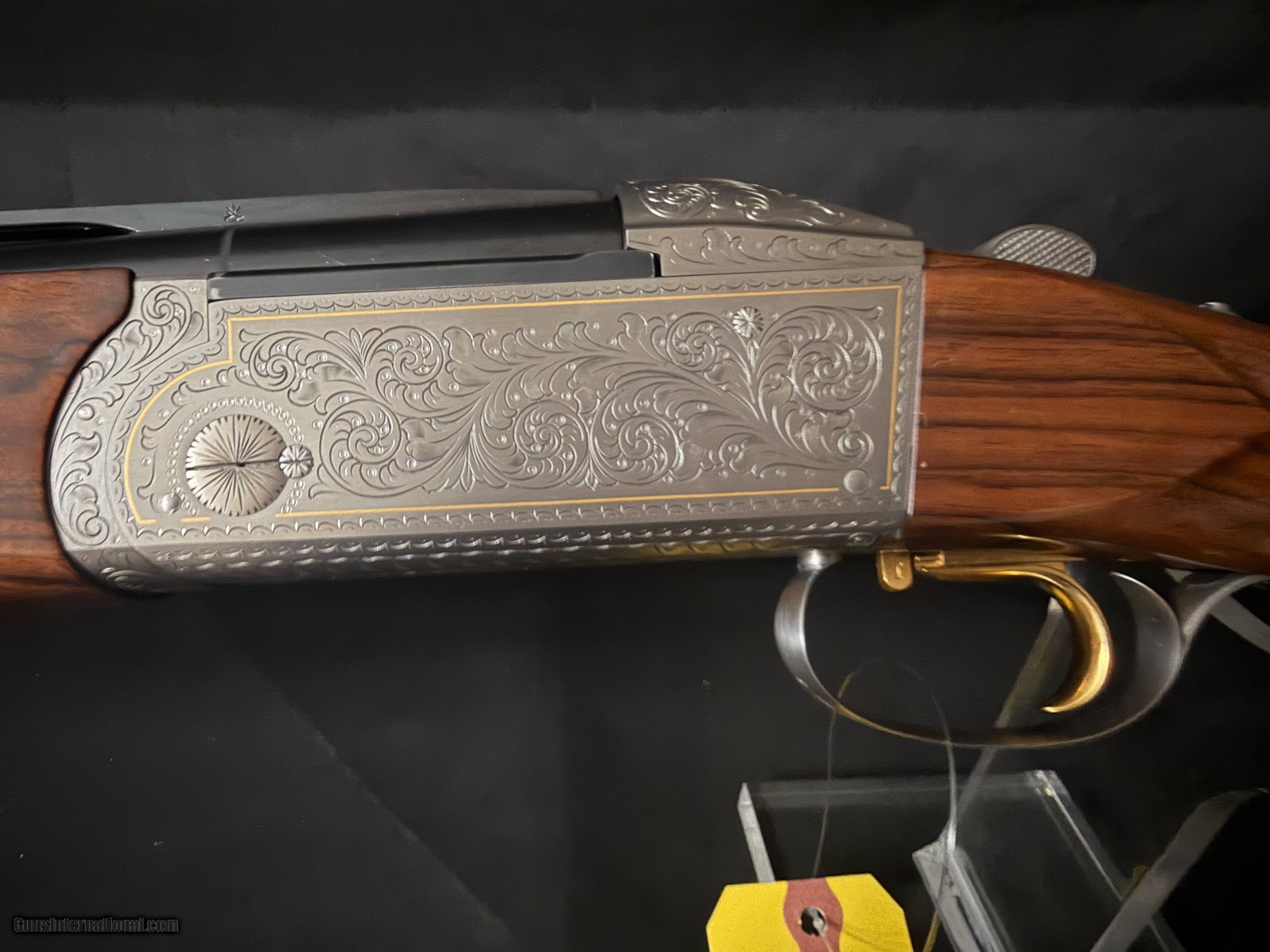 Description: Krieghoff K-80, Gold Super Scroll (Silver) BEAUTIFUL!!, This fine firearm sports 32 inch PARCOUR barrels with thin wall Briley Choke Tubes. The PARCOUR barrel gives the K80 a lighter more balanced feel than the traditional sporter barrel. The feel of the gun makes it feel lively. The engraving which is superb condtion features a gold border around the deep chiseled engraving. On the top cap there is a beautiful gold broken clay target. That is a 2500 add on. The ambidextrious, twin palm swell, adjustable comb stock features a 14.5 lop an nice grain an feathering. The gun incluldeds an Americase. This target crusher is in outstandig condition. New price is $35,000.00 Buy this one for $22,500.00 Shotgun Gauge: 12 Gauge Manufacturer: Krieghoff K80 Model: Gold Super Scroll (Silver) Barrel Length: 32 Bore Info: 735 Chambers: 2 3/4 Condition: As New Metal Condition: As new Wood Condition: As New Bore Condition: Shiny and Bright Stock Comb: Adjustable Stock Heel: Adjustable LOP: 14.5 Chokes: Briley Thing Wall Case: Americase Krieghoff Price: $22,500.00 Buy Now Contact Seller |