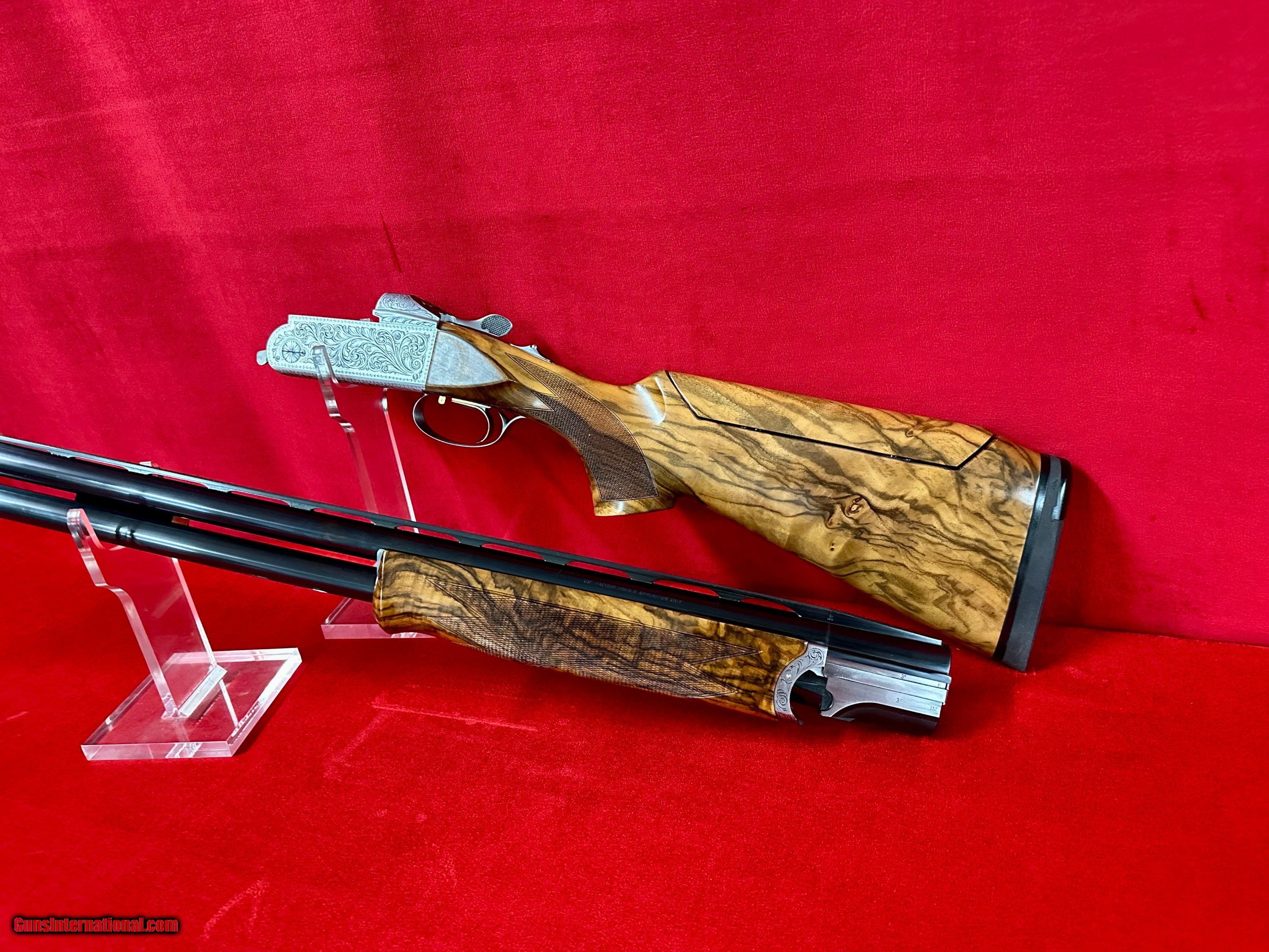 Description: Krieghoff K80 Gold Super Scroll 32 in Sporter Cat 5 Wood Krieghoff K80 Gold Super Scroll with Cat 5 wood in pristine condition. Serial #0111XX. Gorgeous wood Barrel Specs: 32 inch 12x8 tapered rib Ported 10 Briley Series 2 Thinwall chokes in: SKT/SKT/IC/LM/LM/.007/.025/.030 2 of the chokes are Super extended Brileys S2 in VX series Light Mod/Light Mod Stock specs: #3 Sporting factory stock Neutral cast Dual Palm swell Length of pull 14.625 SOLD Shotgun Gauge: 12 Gauge |