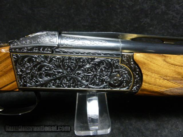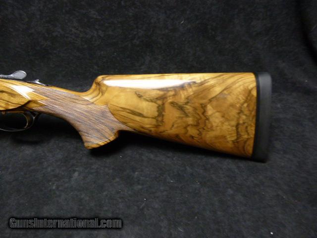 Description: SOLD Krieghoff K80 Gold Target #20108 with number matching 28" Bohler-Laufstahl ported barrel and Kolar Max subgauge tubes in a Nasco case. For anyone wishing to know exactly what a "Gold Target" grade is, it is nearly exactly the same as today's "Monarch" grade - except the Gold Target came with the addition of a gold "Broken Target" top latch and the Monarch does not. The Monarch is a $22,395 upgrade over a Standard grade K80 without the Broken Target top latch. The price of a Monarch receiver and iron (no wood; no barrels; no gold Broken Target top latch) is $27,500 today. Barrels are engraved at the breech end and measure .732" bore. This pretty gun has a nice condition receiver and fore end iron, the only wear to the blue being on the opening lever and a hint of thinning at the very back of the bottom tang behind the trigger guard. The exhibition grade #5 wood has a few small dings. The barrels have Ballistic thin walls and show moderate wear to the bluing. This is a beautiful gun with rich, full hand engraved coverage and Gold Broken Target top latch. It is an extremely high grade K80. See Krieghoff Internationa/catalog engravingsl for additional Monarch Grade photos. SOLD Manufacturer: Krieghoff Model: K80 Serial Number: 20108 Metal Condition: 99% Stock Dimensions: #5 Engraving: Gold Target Case: yes |
