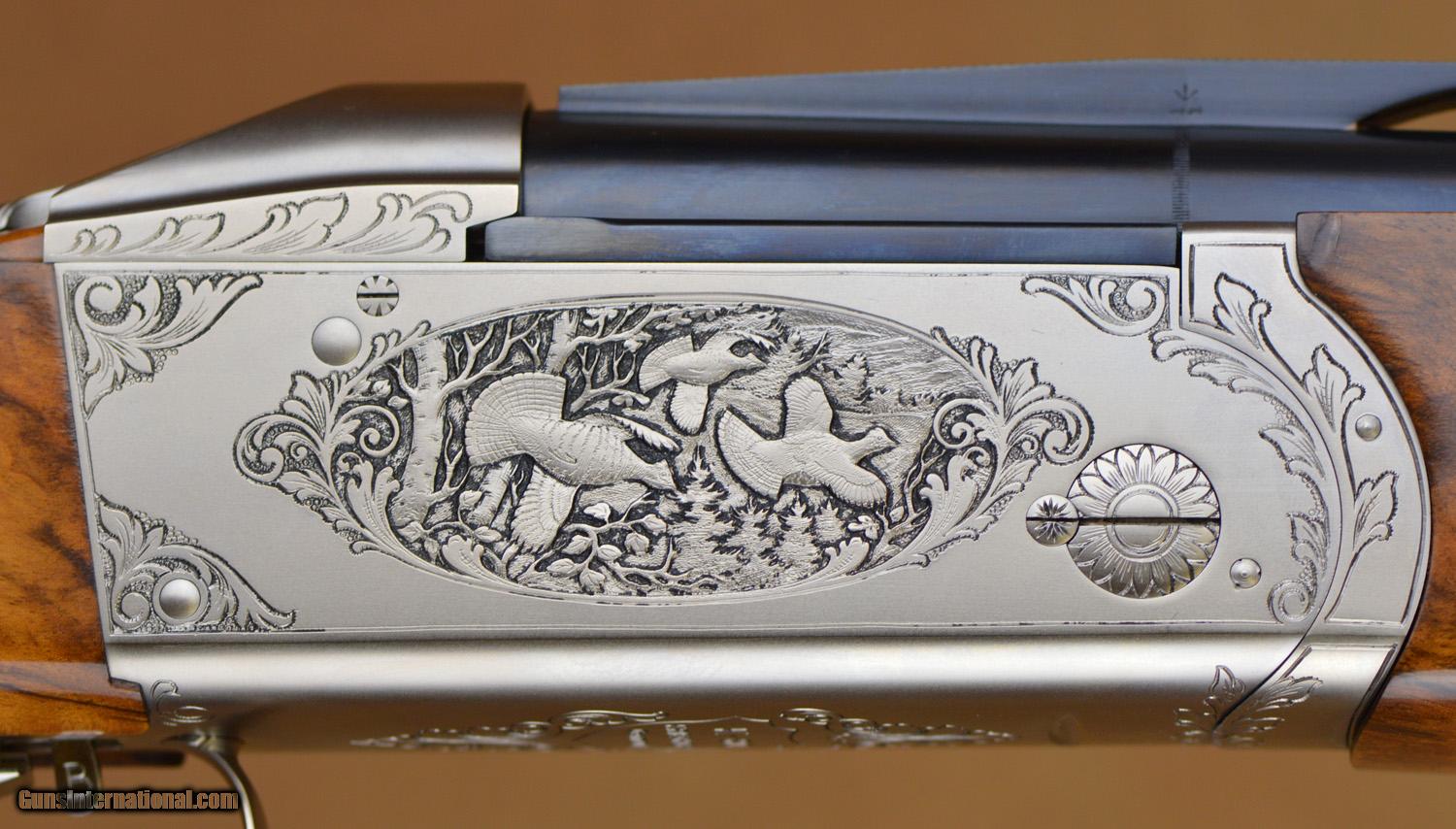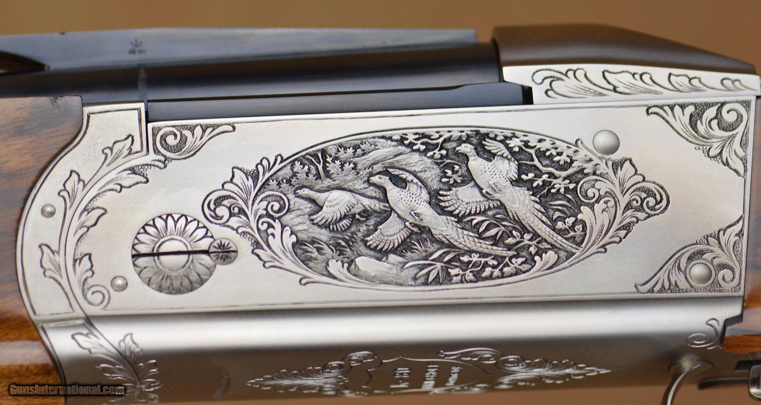 Description: Krieghoff K80 Skeet 12GA with 30" fixed (SKT/SKT) choke barrels. Full set of Briley UL (20,28 & .410) fitted sub-gauge tubes. Features Parcours Special pattern with deeply engraved game scenes and scrolls, nickel action, pins and top-lever latch. Outstanding factory Number 6 adj. comb stock with beavertail forearm and adj. buttplate. Outstanding overall condition with minor handling marks in wood, just fully serviced by Krieghoff Intl. Includes Americase, tools. SOLD |