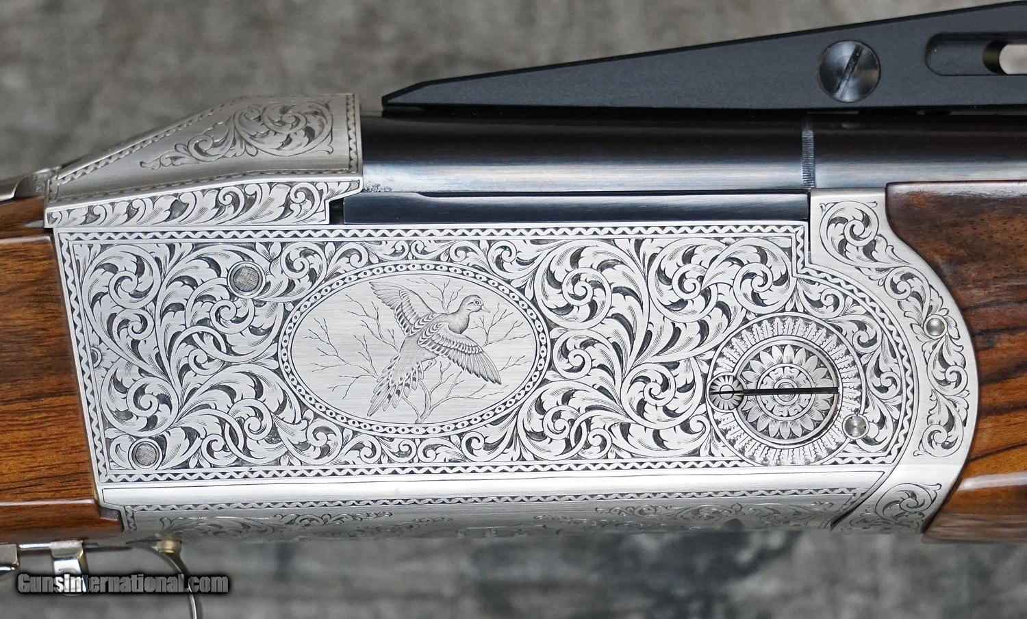Description: Pre-Owned Krieghoff K-80 Plantation Upland Pro Sport 12GA with 32" factory adjustable rib barrels, factory titanium choke tubes. Silver nitride finished action featuring fully hand engraved English scrolls and game scene cameos by Narcisi. Factory No. 3 Monte Carlo adj. comb sporting stock with schnabel forearm. Minor handling marks, minor bluing wear on barrels. Includes case, chokes and tools. Consignment, ineligible for trade-ins. SOLD Shotgun Gauge: 12 Gauge |