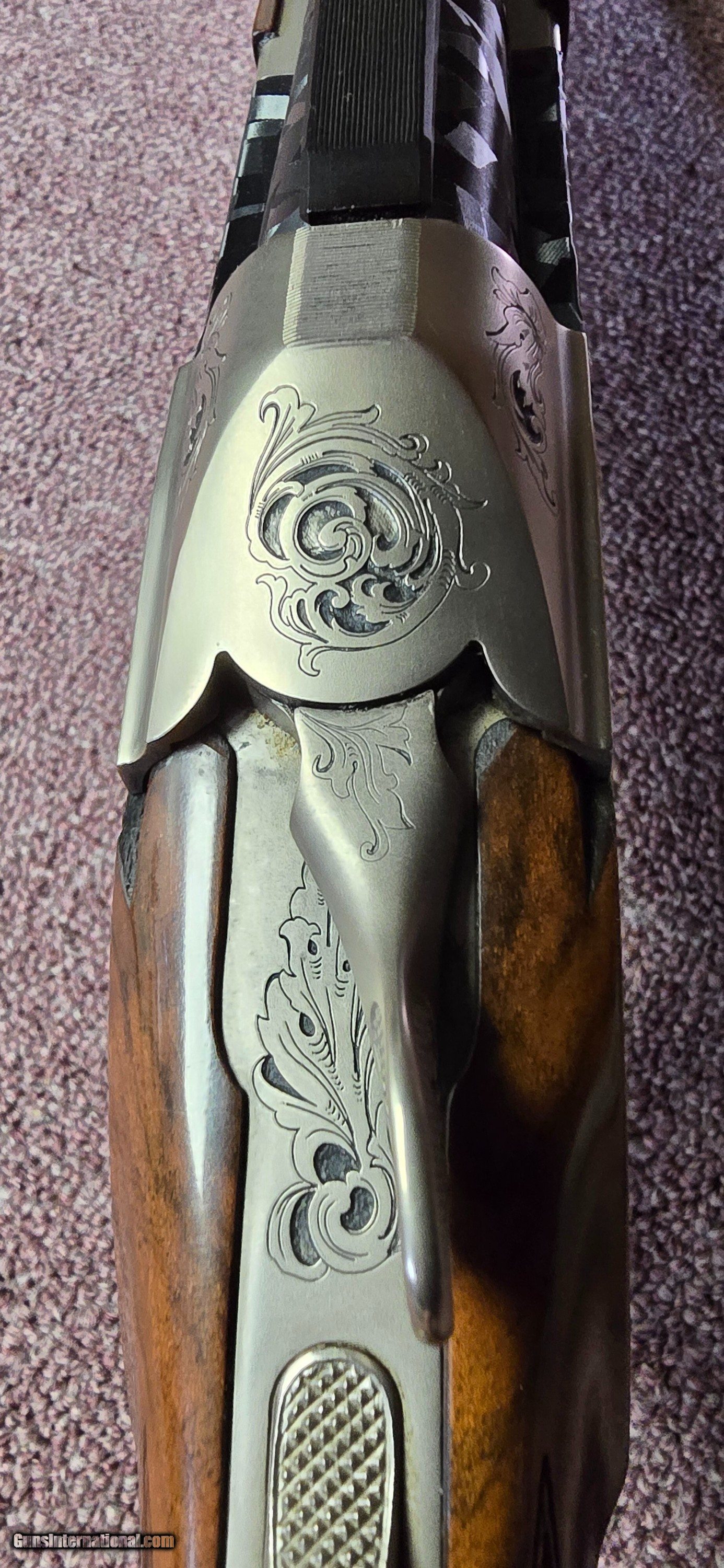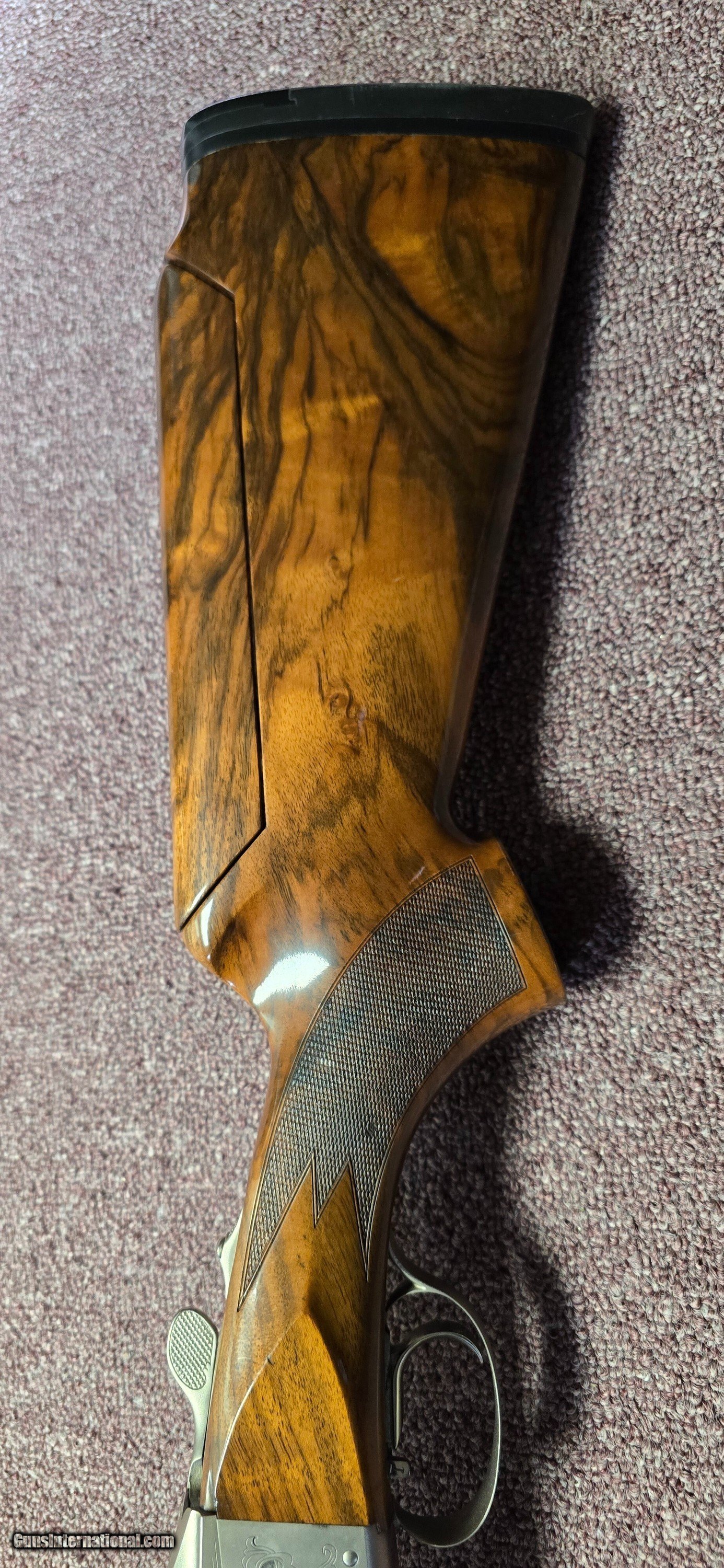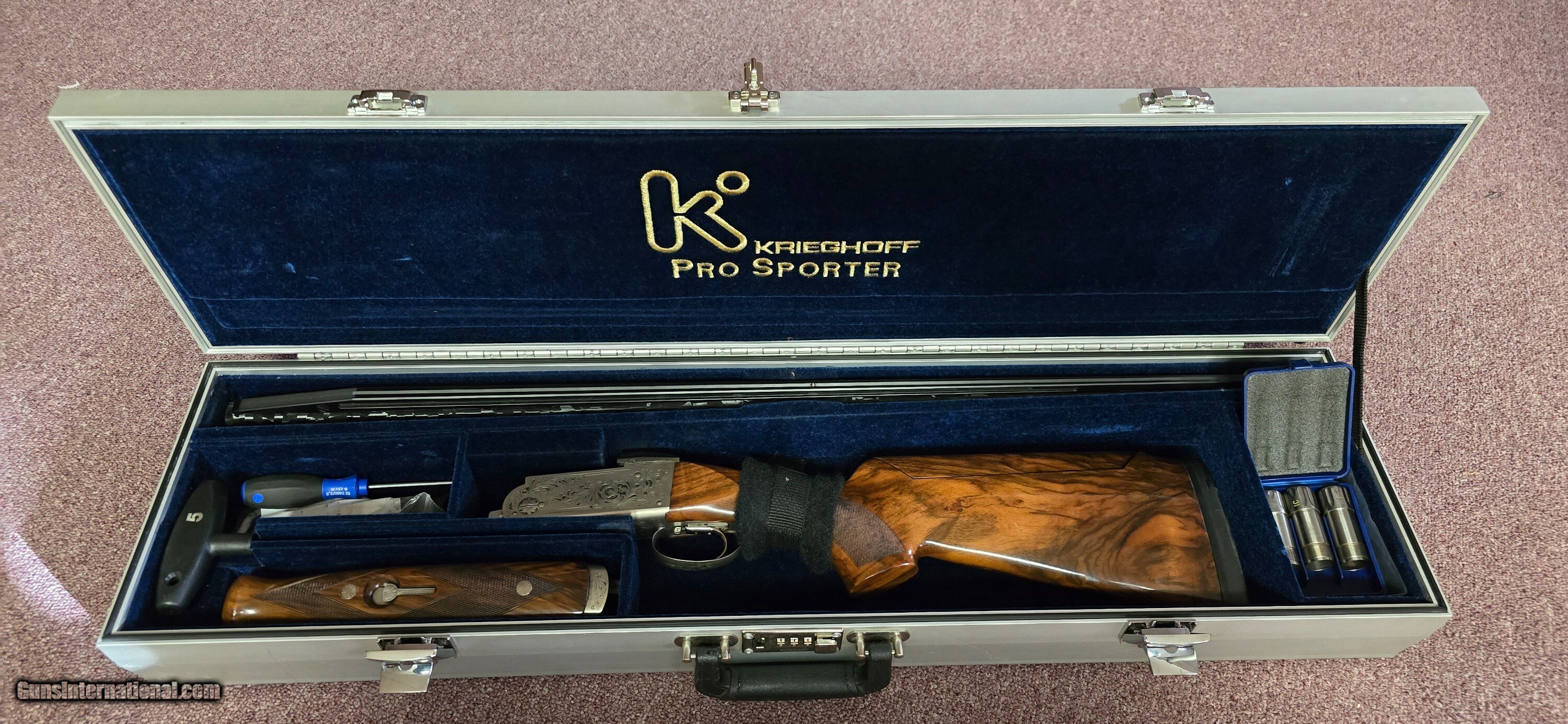 A beautiful pro sport with really nice wood and the classic vintage scroll. It comes with 5 titanium chokes 2 LM, 1IC, 1M, 1IM
