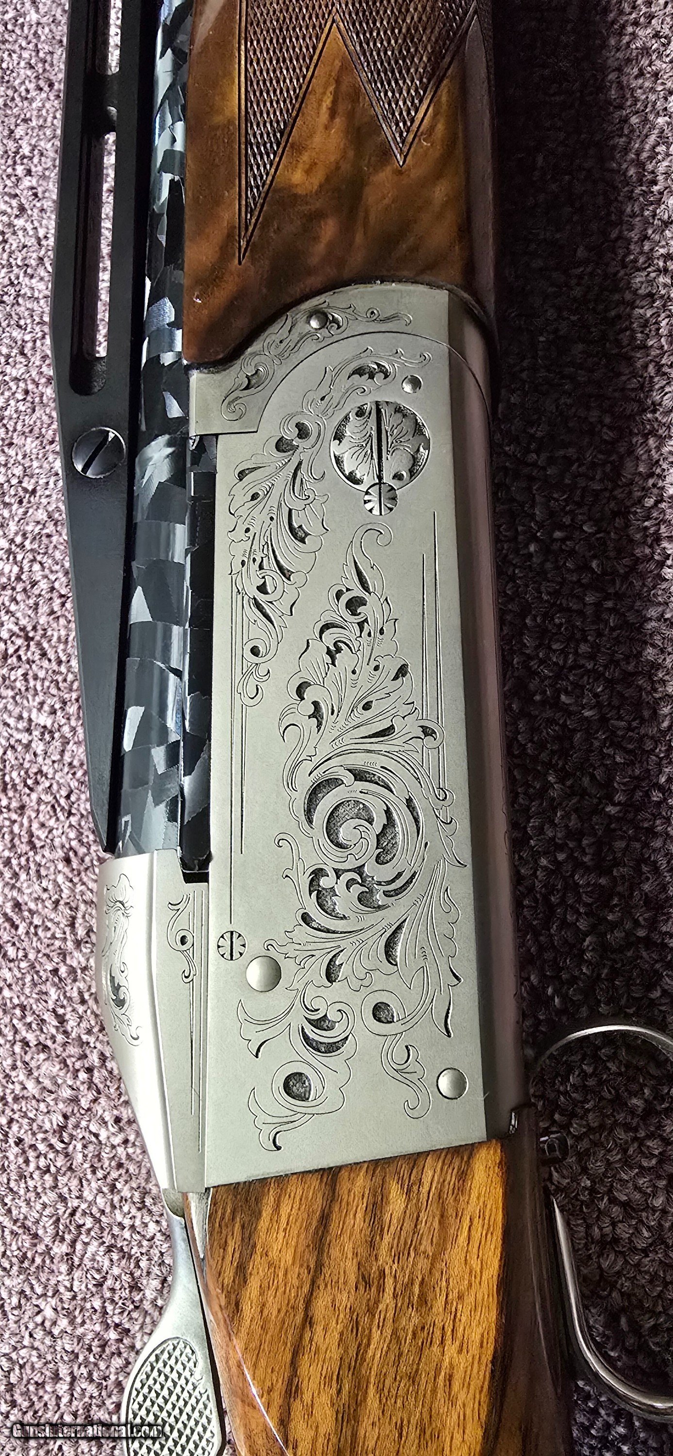 The barrels have been vinyl wrapped with forged carbon fiber style. Can easily be removed if it's not to your liking. Well kept. 32" barrels and 14.1/2 LOP