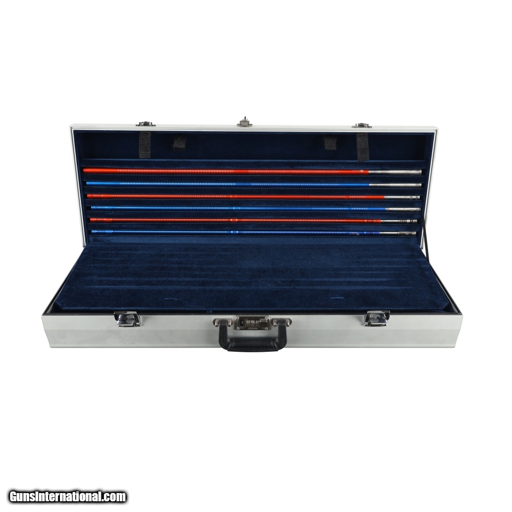 Description: The Krieghoff K-80 Pro Sporter is equipped with a higher than average, floating rib and Monte Carlo stock allowing for a more comfortable head position and adjustable point of impact. This example is in quite good condition, with minimal wear on the beautifully figured stocks, accented by the vintage scroll pattern on the receiver. But the biggest draw to this fine firearm is the fact that it comes with a full set of Briley conversion tubes, allowing one barrel set to shoot 20, 28, and .410 gauge. Manufactured in: Germany Hand: Right Hand Action Finish: Engraved Action Description: Over / Under Metal Finish: Original Barrel Length: 30 Inches Barrel Condition: Very Good Stock Finish: Original Stock Condition: Very Good Type of Butt: Decelerator Pad Pad Thickness: .75 Grip: Pistol Forend: Checkered Schnabel Cast Amount: 1/4" SOLD Manufacturer: Krieghoff Model: K-80 Pro Sporter Chambers: 3 Inches Ejectors: Yes Condition: Preowned Metal Condition: Very Good Action: Over / Under Triggers: Single Gauge Info: 12 Gauge Stock Comb: 1 1/2 Stock Heel: 2 1/8 Stock Cast: Off Fore End: Checkered Schnabel Butt Pad: .75 LOP: 14 3/8 Rib: High Rib Finish: Original Weight: 9.2 lbs Chokes: 5 Factory Chokes Case: Maker's Americase |