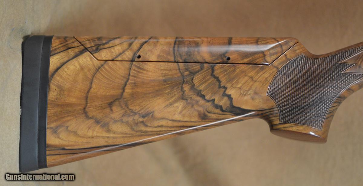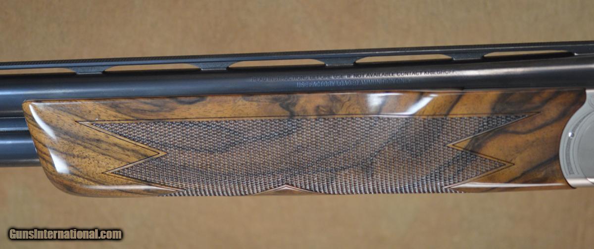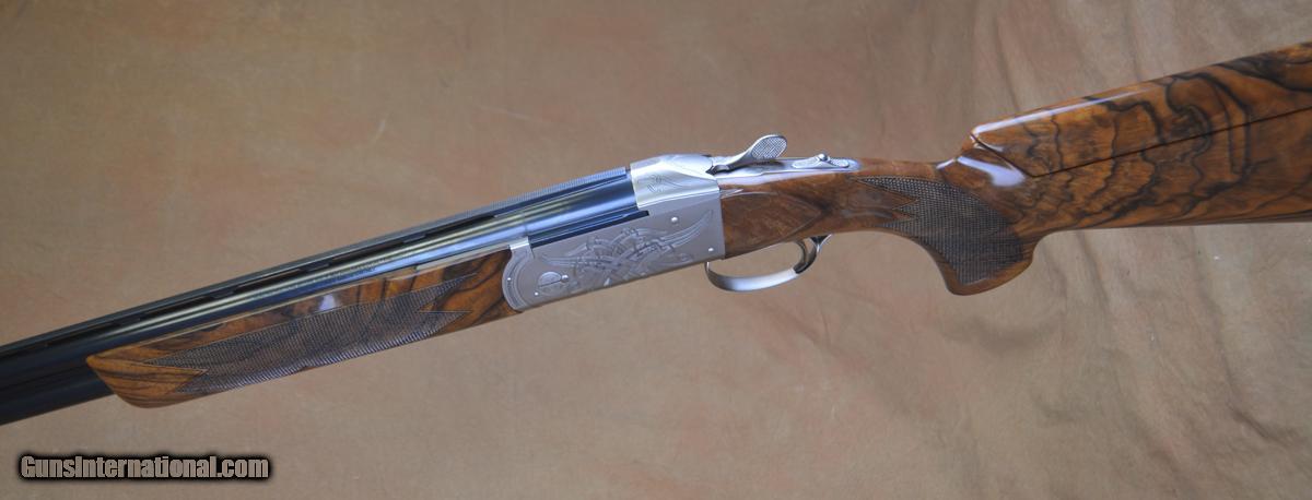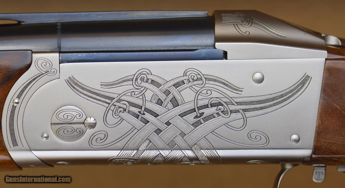 Description: Krieghoff K80 Parcours Sporting 12GA with 32" Barrels, Briley Extended Black Oxide Thinwall chokes installed. Nickel finished "Celtic Scroll" engraved action, selective adj. trigger. Factory Crown Upgraded Parcours Right-Hand Sporting stock with adj. comb, slim forearm. Outstanding example of Crown grade wood with 1" Kick-Eez recoil pad (stock has not been shortened), outstanding overall condition with only very minor handling marks and signs of wear. Includes factory case, tools and additional chokes. SOLD |