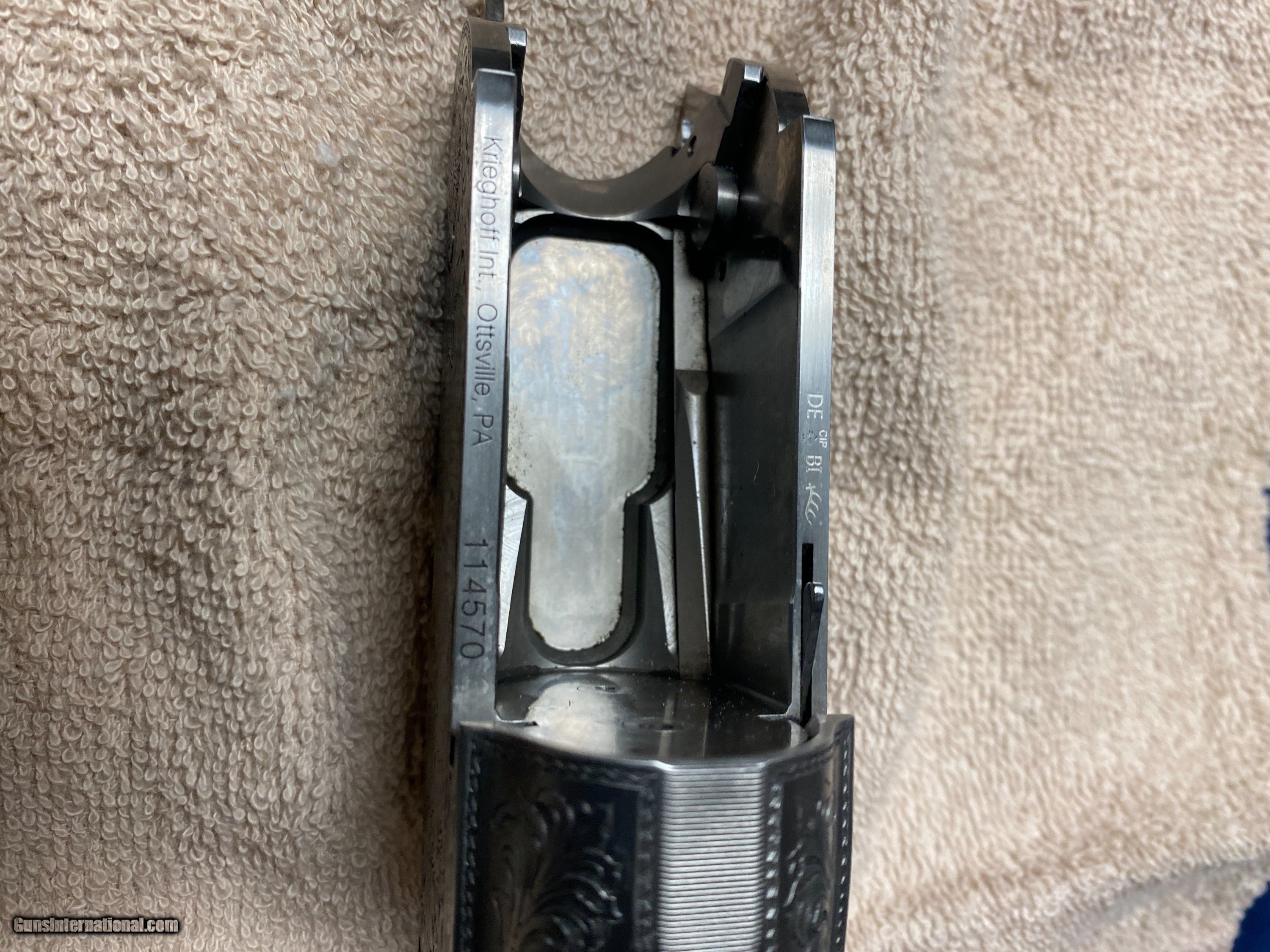 Description: RECIEVER, IRON, AND BARREL ONLY NO WOOD Krieghoff K80 Sporter 32" barrels Year old Custom Waterfowl Medallion Engraving done by Kathryn Nonn Barrel does need to be reblued from where hands have been in it. 6 Extreme Chokes 2 IC, 2 LM, 2 MOD 2 LM Pure Gold Stainless Steel Chokes Brand new Krieghoff Negrini case SOLD Shotgun Gauge: 12 Gauge Manufacturer: Krieghoff Model: K80 Sporter Barrel Length: 32” Condition: Good |