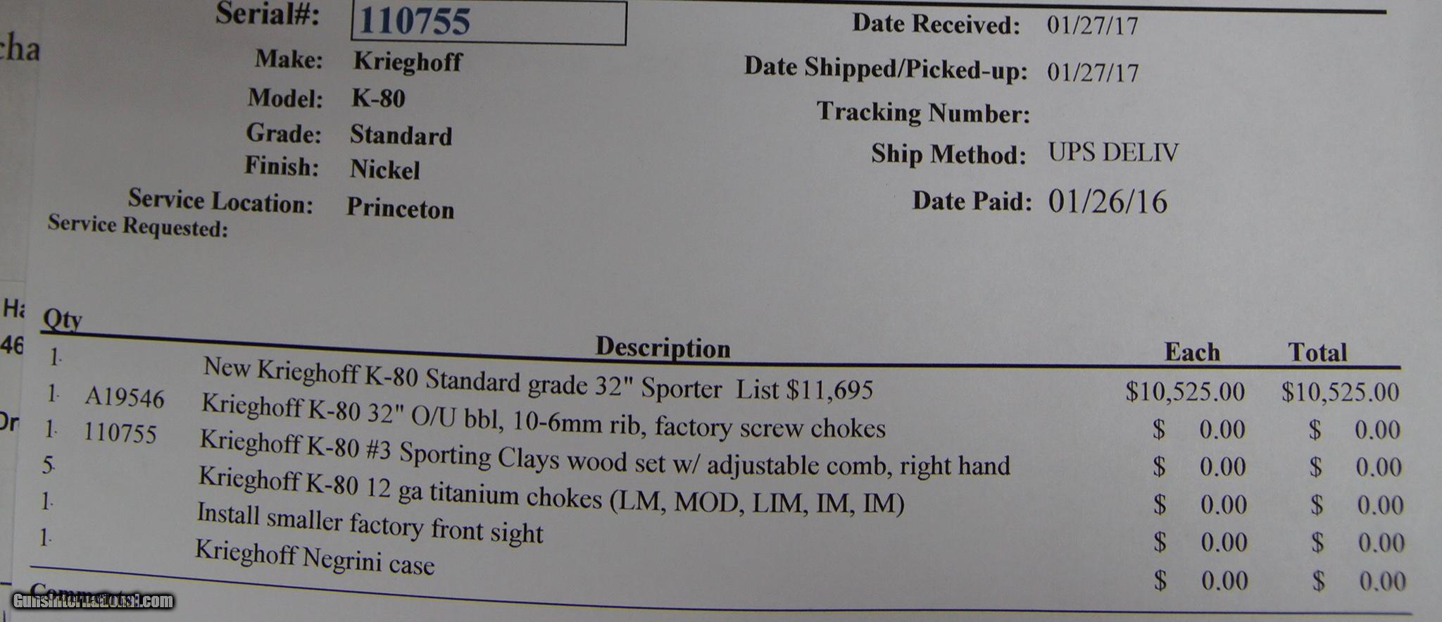 Description: near new Krieghoff K80 Sporting, 32" barrel with 5 Titianium Chokes, lop 14", gun was purchased new 1/27/16 SOLD |
