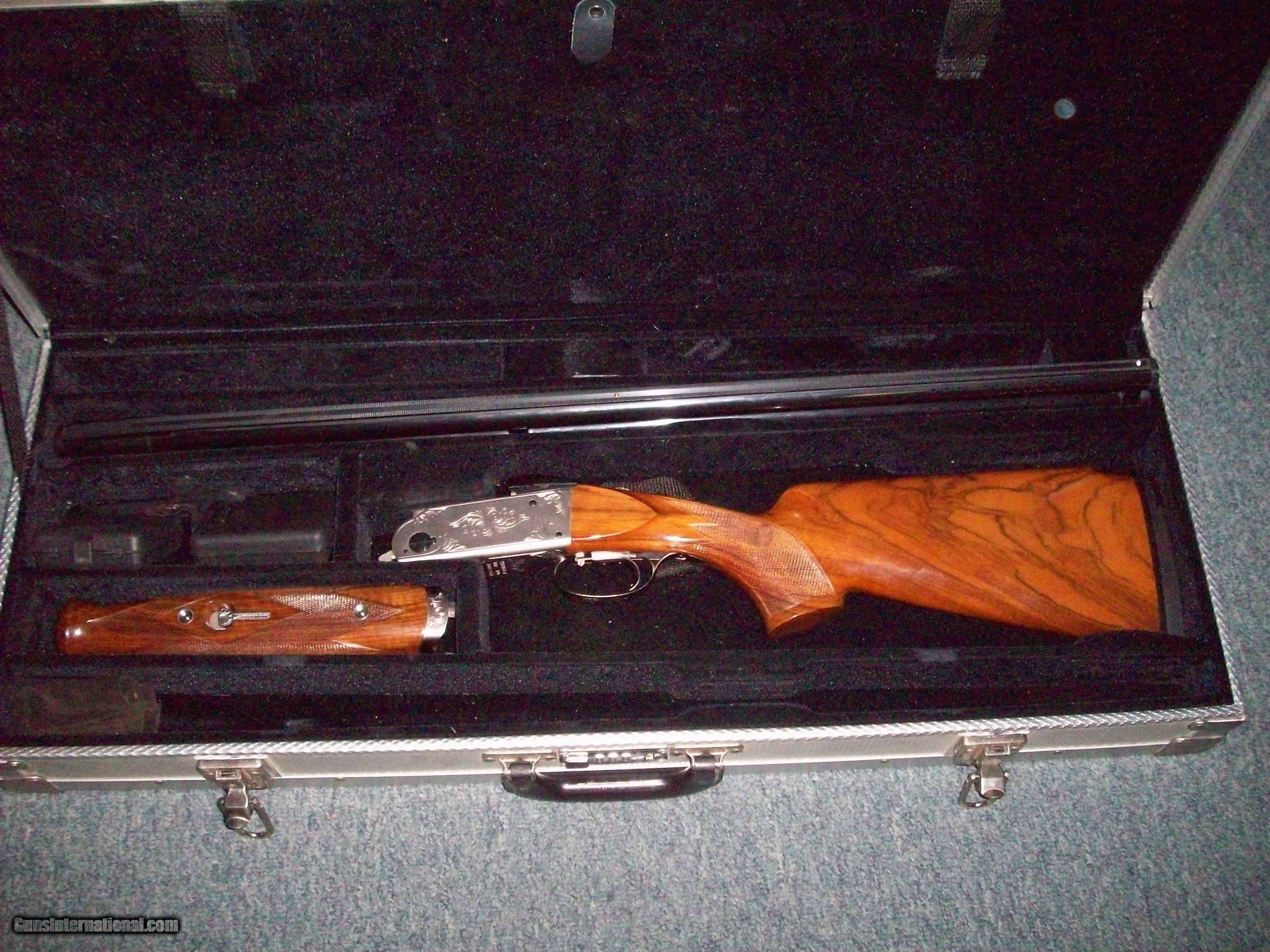 Description: This 12 ga. Krieghoff K80 SPORTING gun has UPGRADED WOOD with Schnabel forend. 30" Barrels with screw-in-chokes. Lever to right of center. Briley ULTAMITE ULTRALITE FULL LENGTH TUBES for 410, 28 & 20 Ga. Comes in NASCO FITTED HARD CASE for TWO SOLD |