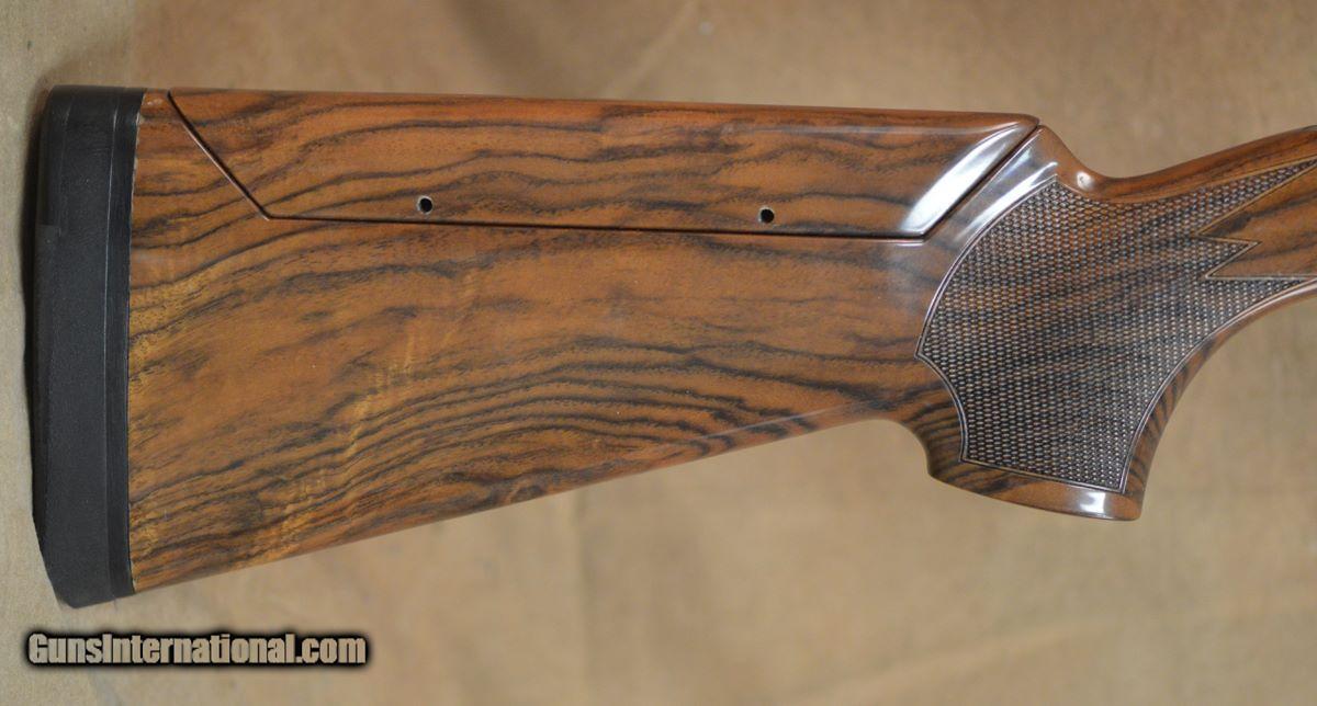 Description: Krieghoff K80 Parcours Sporting 12GA with 32" Briley thinwall choked "Parcours" barrels. Factory nickel finished receiver with blued pins, top-lever latch. Features standard scroll engraving. Factory right-hand Parcours stock with factory adj. comb, slim sporting forearm. Overall outstanding condition with minor handling marks in stock and forearm. Includes factory case, chokes and tools. SOLD |