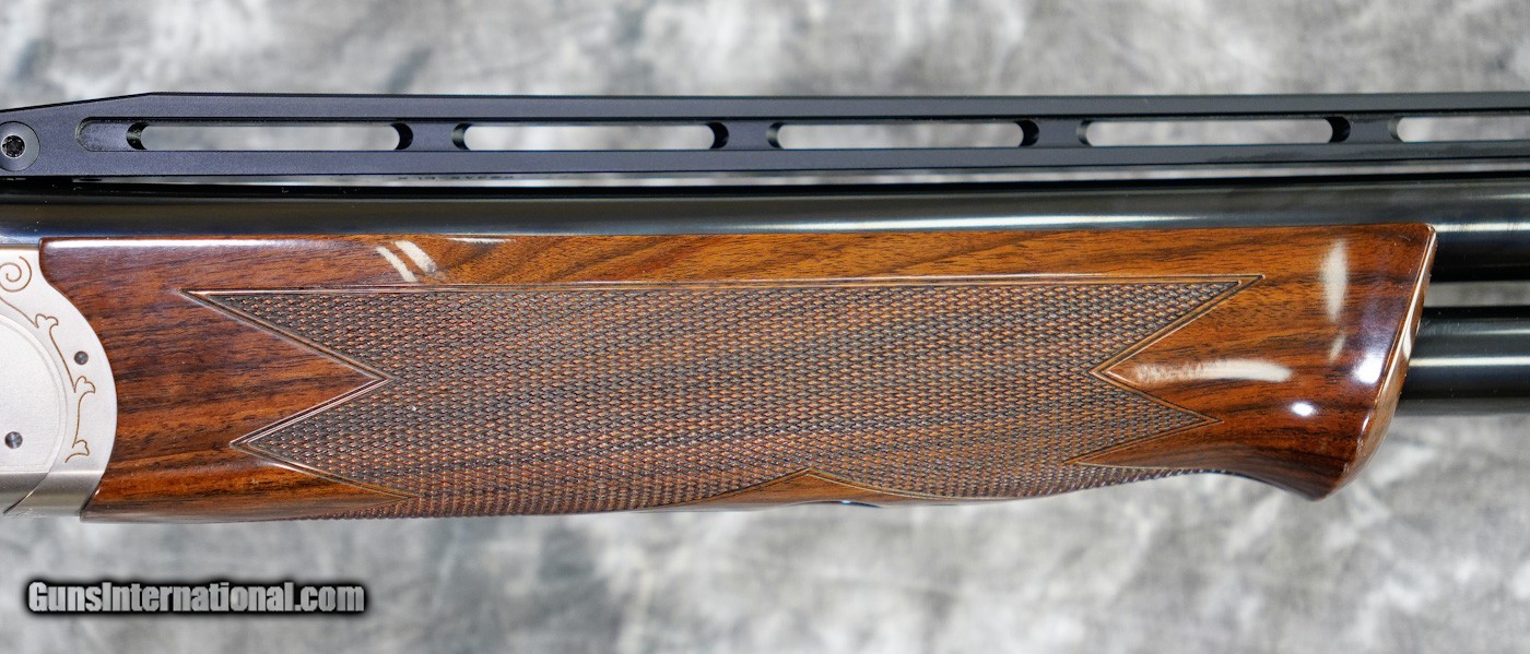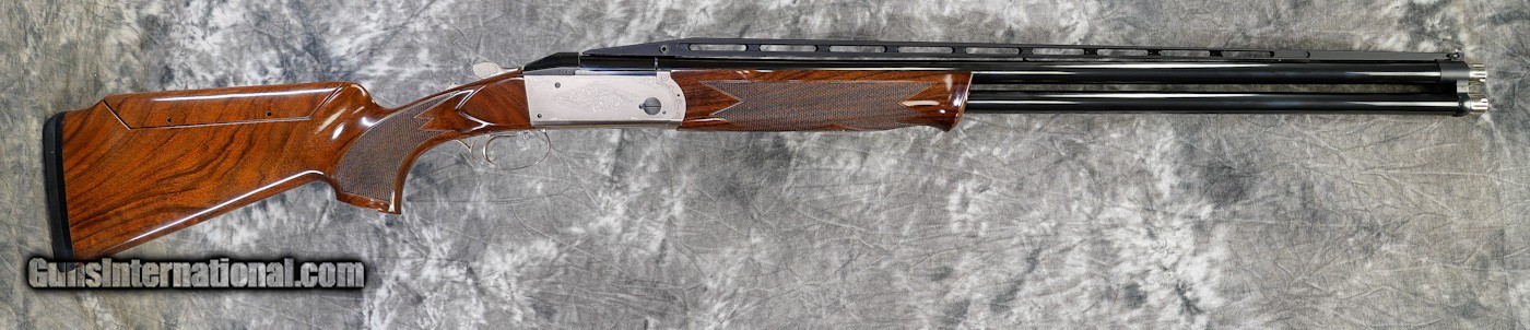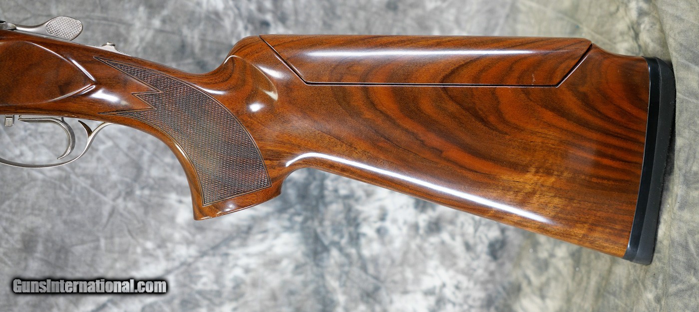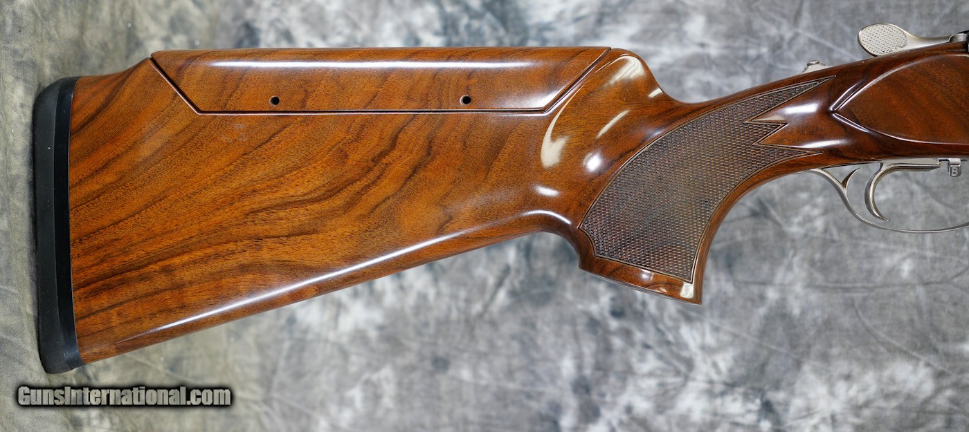 Description: Pre-Owned Krieghoff K-80 Pro Sporting 12GA with 32" factory Titanium choke tubed barrels, factory adjustable rib barrels (Wheel Adjustment). Nickel finished action with blued pins, top-lever latch with very light bluing wear. Factory No. 3 adj. comb sporting Monte Carlo stock, schnabel forearm. Very minor handling marks on stock/forearm some pin-head dents on stock. Includes case, chokes and tools. SOLD |