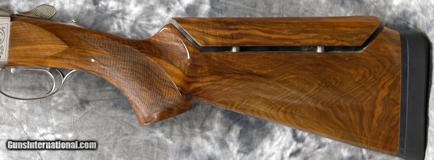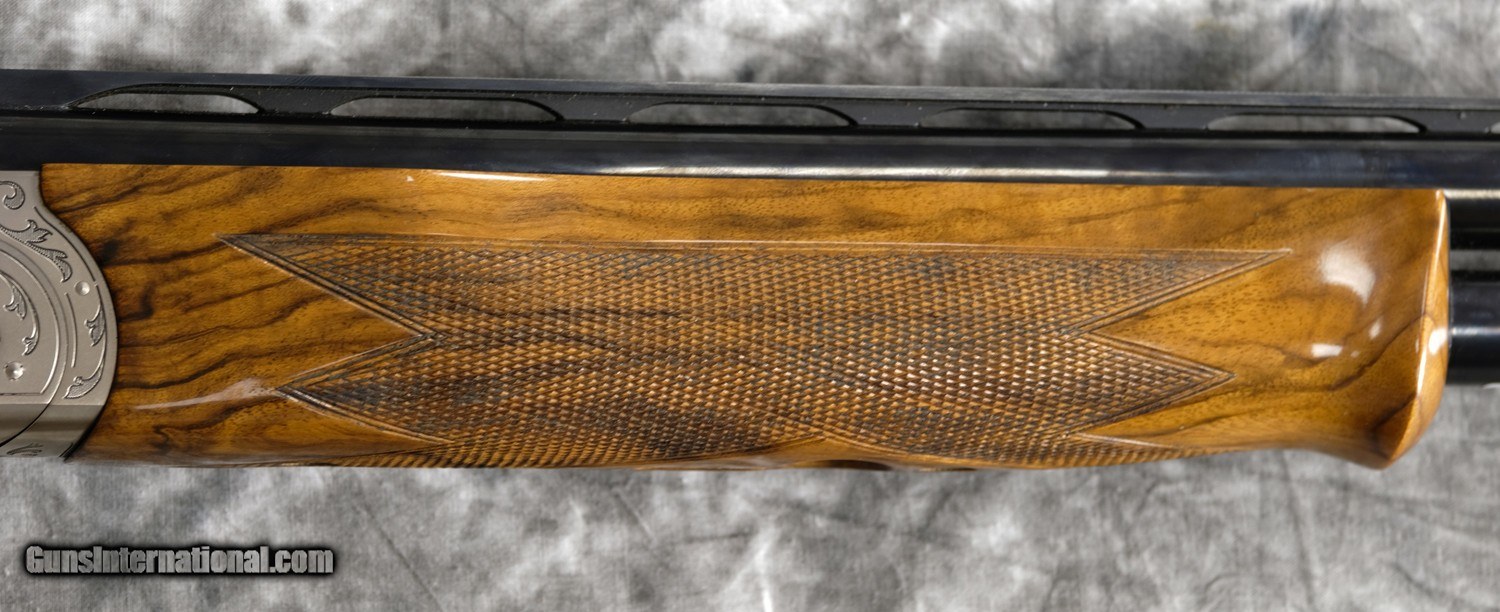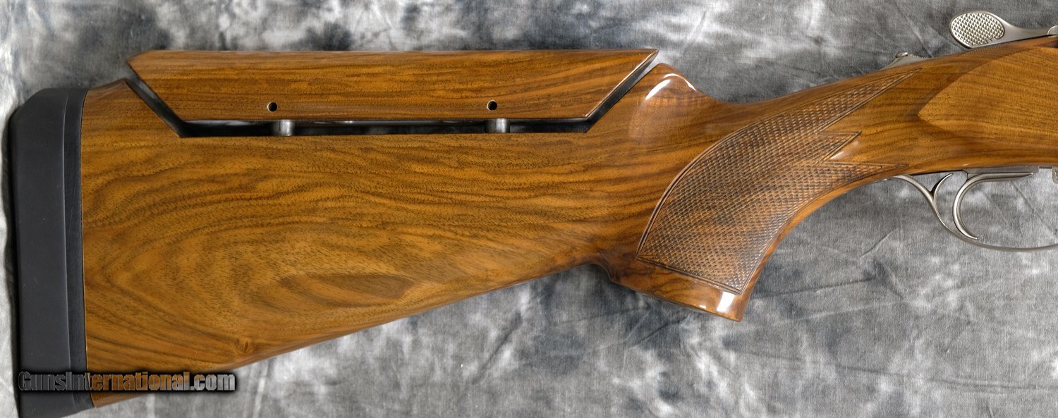 Description: Pre-Owned Krieghoff K80 Super Standard Sporting 12GA with 32" factory Titanium choke tubed barrels, flat tapered sporting rib. Nickel finished action with "Super Standard" engraving pattern, factory Ambidextrous No. 3 adj. comb sporting stock with schnabel forearm, minor handling marks on stock and forearm, minor bluing wear on barrels under forearm. Includes Americase, chokes and tools. Consignment, ineligible for trade-ins. SOLD |