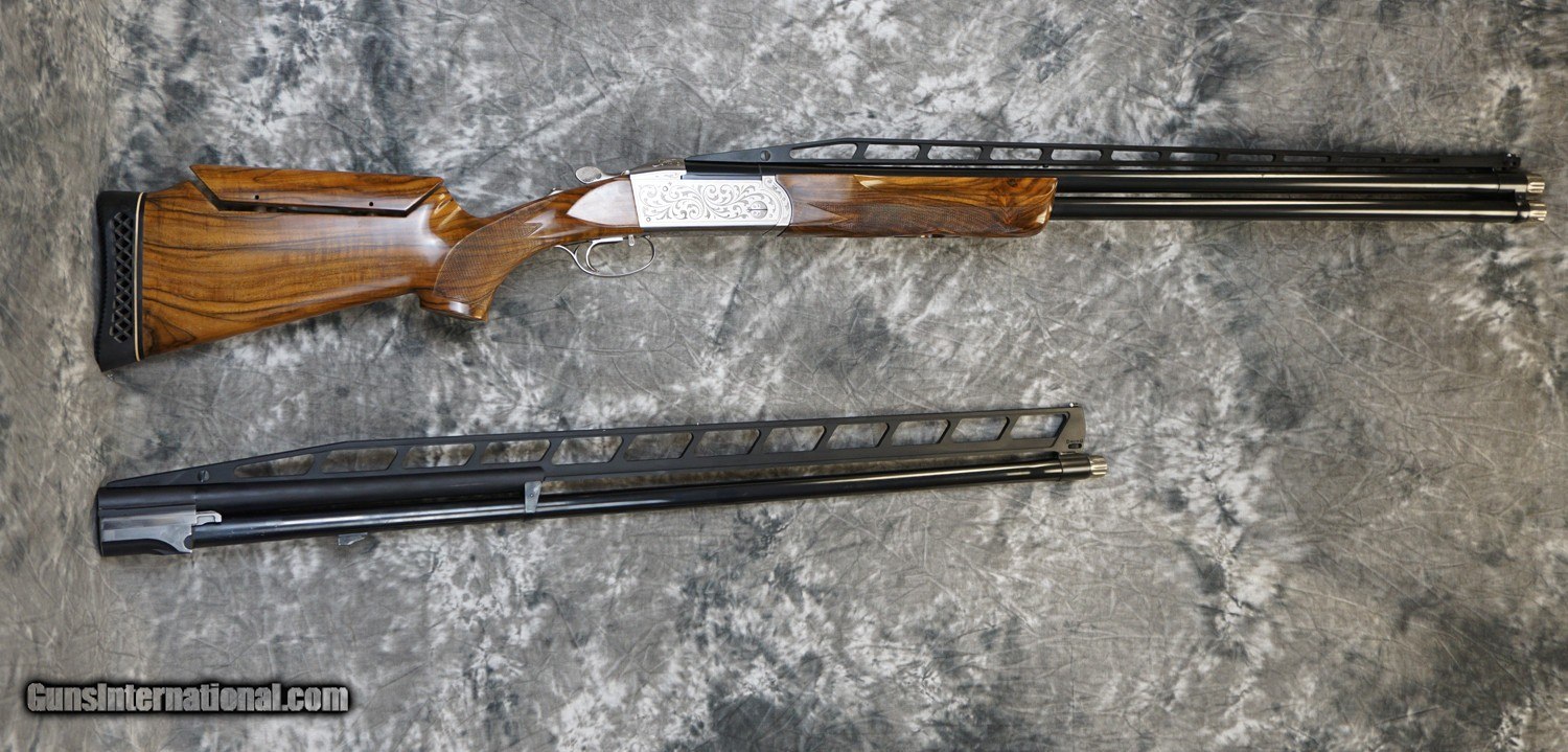 Description: Pre-Owned Krieghoff K-80 Super Standard Trap Special Combo 12GA with 34" factory Un-Single barrel, factory adj. ramped rib with extended Titanium chokes, additional 32" factory adj. rib Titanium choke tubed O/U barrels. Nickel finished "Super Standard" engraved action featuring full coverage scrolls, nickel pins and top-lever latch. Factory Ambidextrous parallel Monte Carlo Trap Special stock, beavertail forearm. Minor handling marks, minor finish wear and scuffing. Includes Americase. Consignment, ineligible for trade-ins. SOLD Shotgun Gauge: 12 Gauge |
