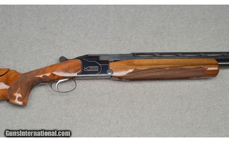 Description: Krieghoff KS-5 in excellent condition with few handling marks and some wear under the handguard. Comes with factory case, three chokes, and features Krieghoff's RAD System. SN: 15675 12 Gauge SOLD Chambers: 2 3/4 Metal Condition: Excellent Wood Condition: Excellent Bore Condition: Clean Barrels: 34" Ported Triggers: Single Stock Dimensions: Adjustable Butt Pad: Adjustable Weight: 9 lb 7 oz Sights: Two Bead Sight Chokes: "IC, IM , MOD Item Location: Fort Worth, TX |