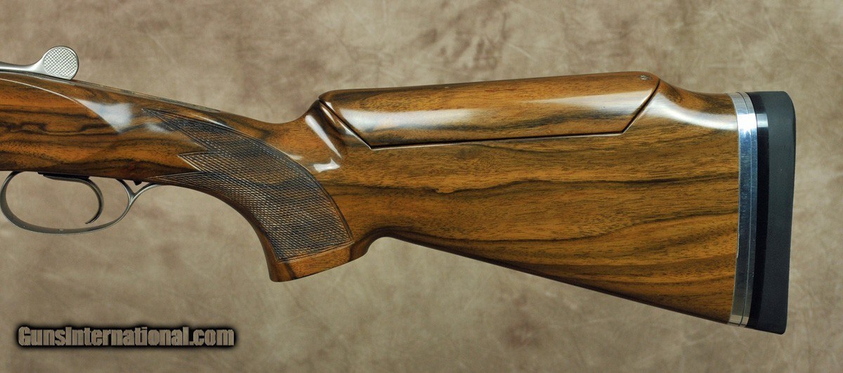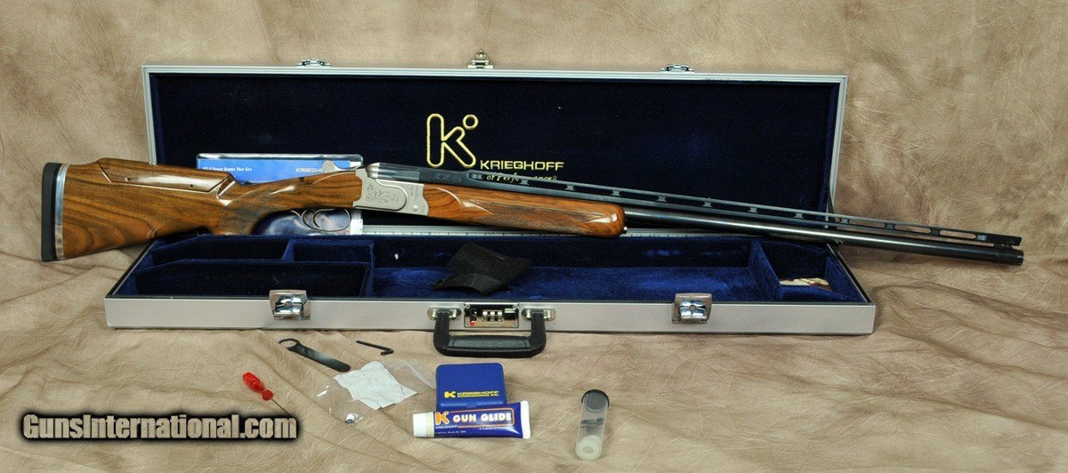 Description: Pre owned in excellent condition Krieghoff KX5 Trap. Features 34" factory C/T barrels, (3) steel chokes included. Trap Montecarlo stock with adjustable butt plate and adjustable comb. Stock dmensions are: 1 5/8" x 1 5/8" x 2 1/2". LOP 14 1/2". Set includes factory Americase. THIS GUN IS IN EXCELLENT CONDITION. Contact our Michigan location at 248-960-7262 for additional information.Refer to (025) SOLD |