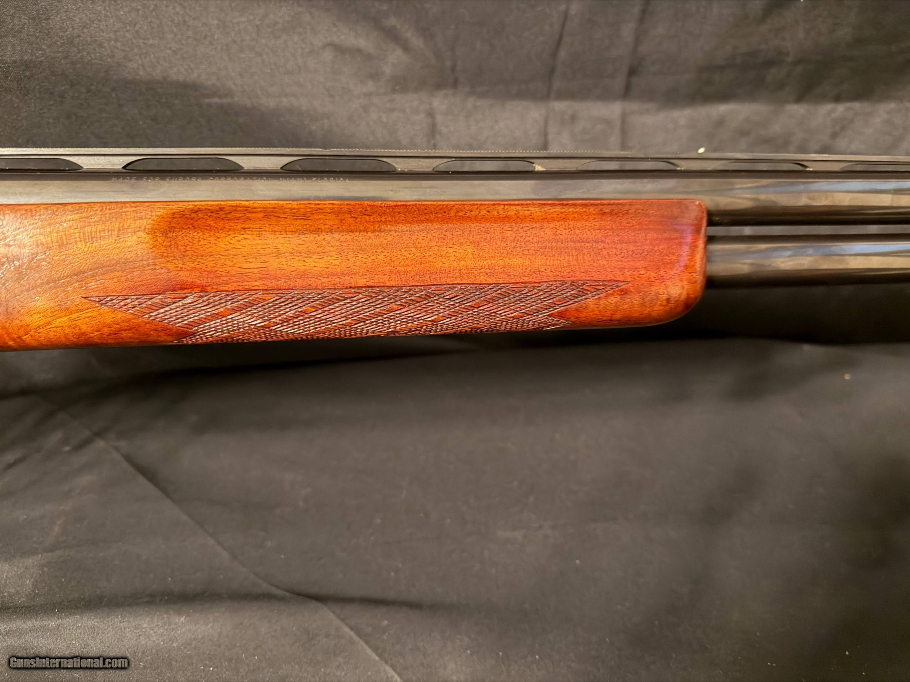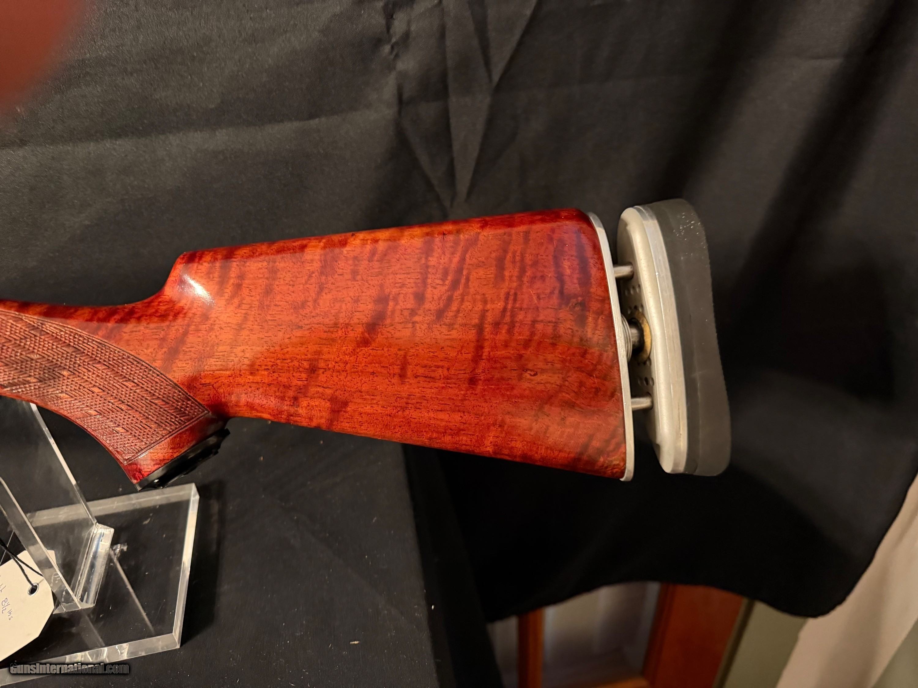 Description: Krieghoff Model 32, 12 gauge 32" barrels mod and full. Absolutely beautiful, almost completely original, all matching numbers. The lovely non-vandalia rib has had no modifications, bores and chokes are original as they were from the factory. Gun has no porting. The barrel fit to the receiver is as it should be. I believe that the stock and forend are original to the gun and have the traditional K32 checkering. The stock was cut down to accomodate the gracoil recoil reduction system with adjustable length of pull and butt plate angle. The LOP to the end of the wood is 12", the LOP to the end of the gracoil is 14", this can be adjusted in length to bring it to 14 5/8". To obtain additional length you might need spacers. Rarely do I have a K32 come in that is this original and in this condition with a 32" barrel. This gun has a later serial number being 6585. Shotgun Gauge: 12 Gauge Manufacturer: Krieghoff Model: K32 Barrel Length: 32 Bore Info: 735 Chambers: 2 3/4 Ejectors: yes Condition: Excellent Metal Condition: Excellent Wood Condition: Excellent Bore Condition: Excellent Action: Break Stock Comb: 1 3/8 Stock Heel: 1 3/8 Stock Cast: etral LOP: 14 eith gracoil Rib: standard Weight: 8 1/2 lbs Price: $4,795.00 Buy Now Contact Seller |
