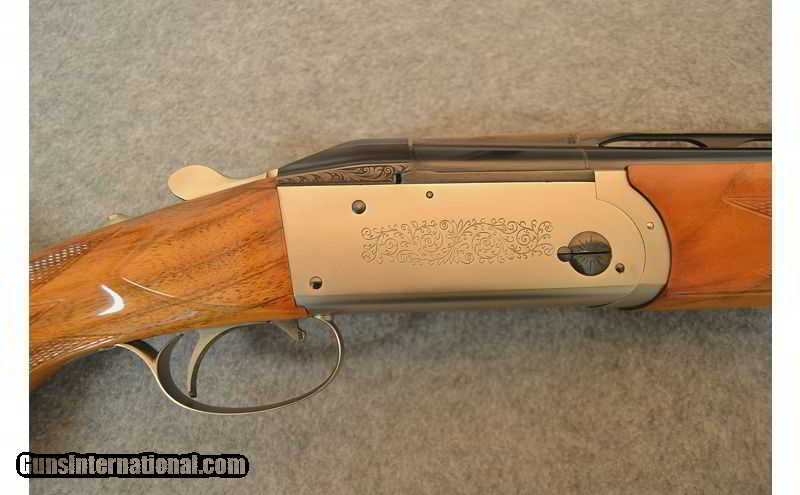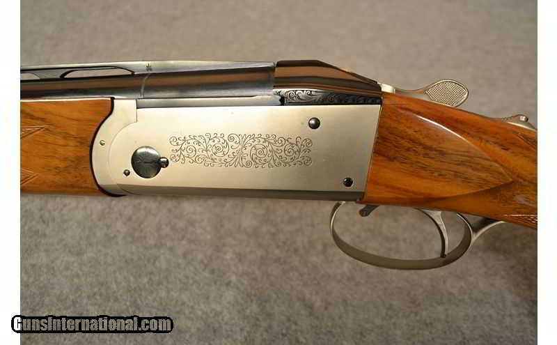 Description: SOLD Manufacturer: SN : 7730 ; made in Germany Caliber Info: 12 gauge with Full-length sub gauges tubes 20 /28 /.410 Chambers: 2 3/4" / 70 mm Metal Condition: Good overall, a few small handling marks; Note: barrels have been reblued/ touched-up Wood Condition: Very good, some handling dings in glossy lacquer finish Bore Condition: Clean Barrels: 28 inches, over/ under; with ejectors deactivated; toggle barrel selector in trigger group; mid-barrels vent Triggers: Selective; mechanical Stock: Factory wood, target pistol grip; adlustable comb and bilateral palm swells Stock Dimensions: LOP 13 7/8" to wood, 14 7/8" to pad ; DAC is adjustable; DAH 21/2 Fore End: Schnabel Butt Pad: Pachmayr 'White Line' rubber recoil pad Weight: 8 lb 11 oz Sights: Top vent low rib with metal mid-bead and front white bead Chokes: Skeet/ Skeet Extras: Factory lockable travel AmeriCase, with sub-gauges Kolar tube sleeves, tools and extra receiver square basket Item Location: Oklahoma City, OK |
