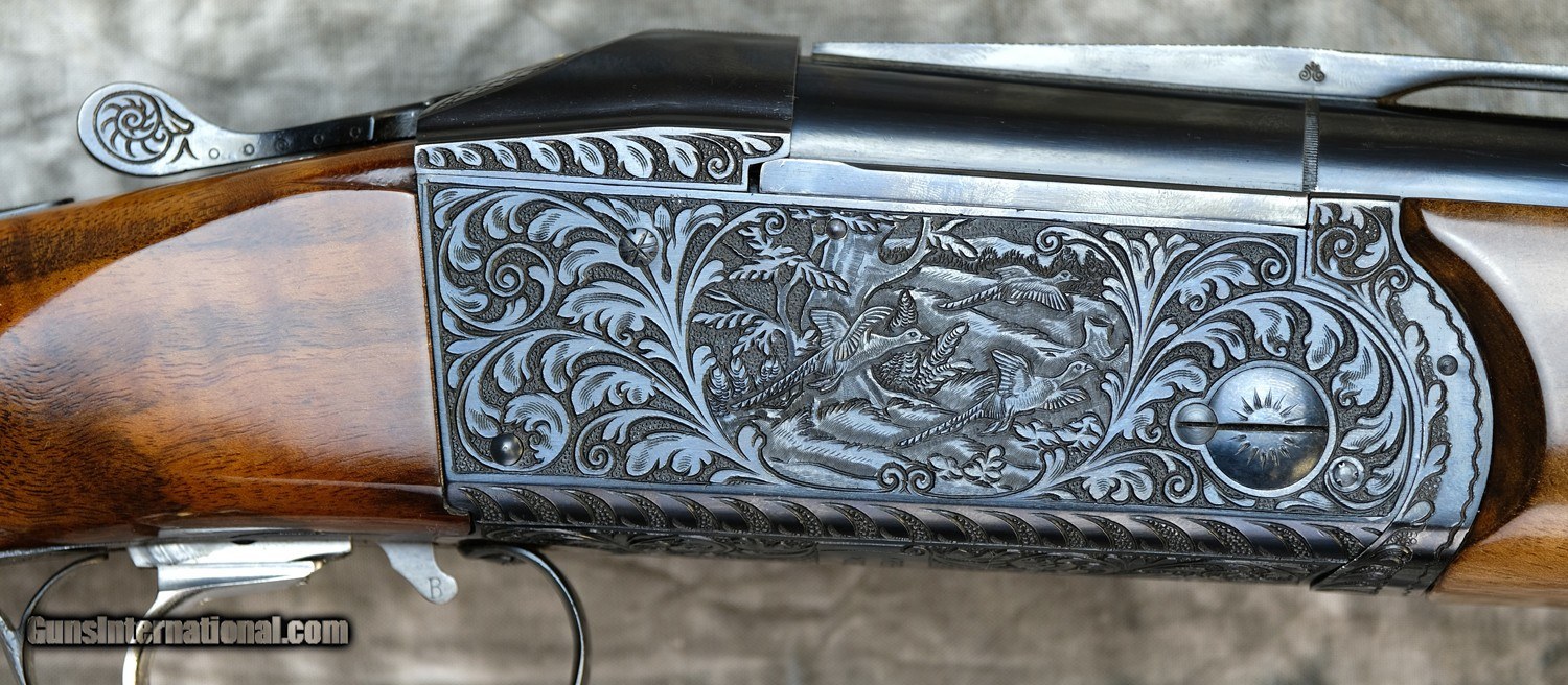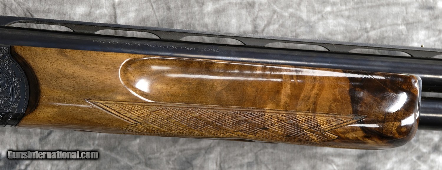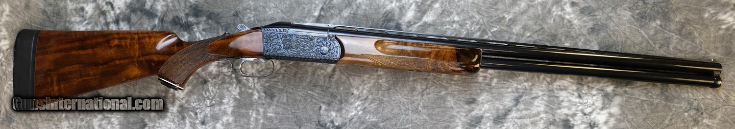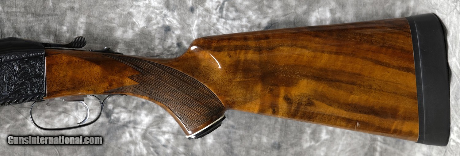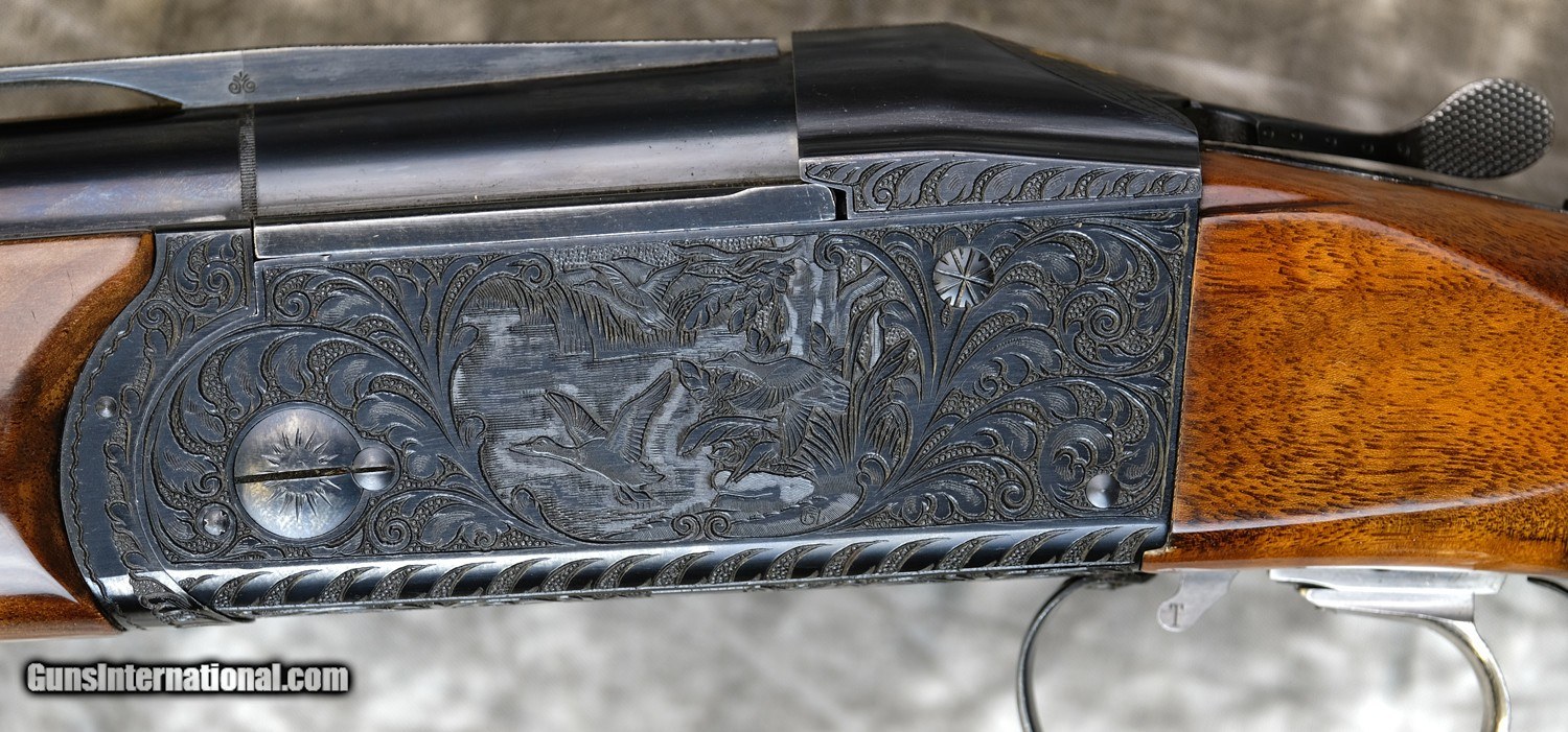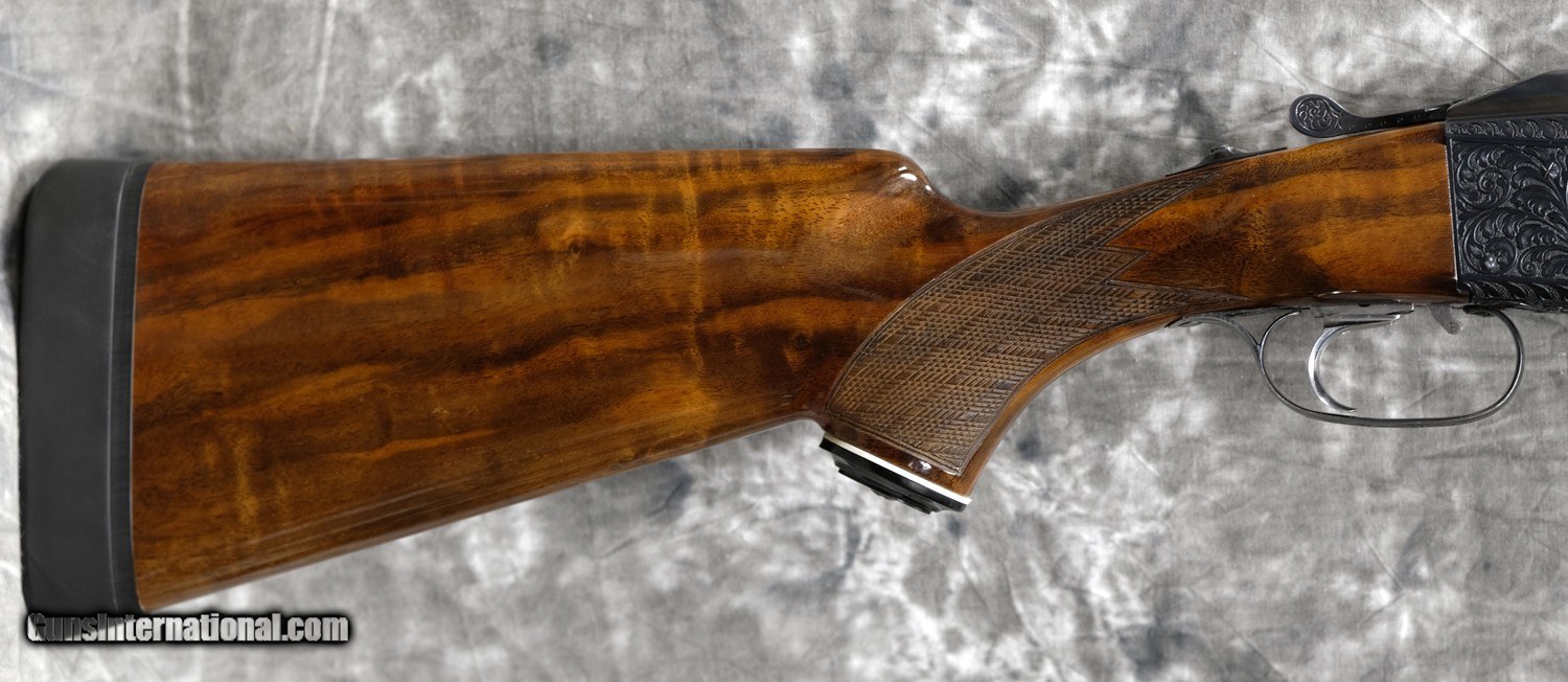 Description: Pre-Owned Krieghoff Model 32 San Remo 12GA with 30" Briley Thinwall choked barrels, set of Briley Companion 20GA Sub-Gauge Tubes; 6x6 mm parallel rib. Factory blued "San Remo" engraved action with deep scrolls and game scenes, signed "GH" with K-80 Trigger Conversion, minor bluing wear. Factory pistol grip stock with skip-line checkering, Kick-Eez recoil pad and beavertail forearm. Stock/Forearm have been professionally refinished to a high gloss and has minor handling marks. Does not include case. Consignment, ineligible for trade-ins. SOLD Shotgun Gauge: 12 Gauge |