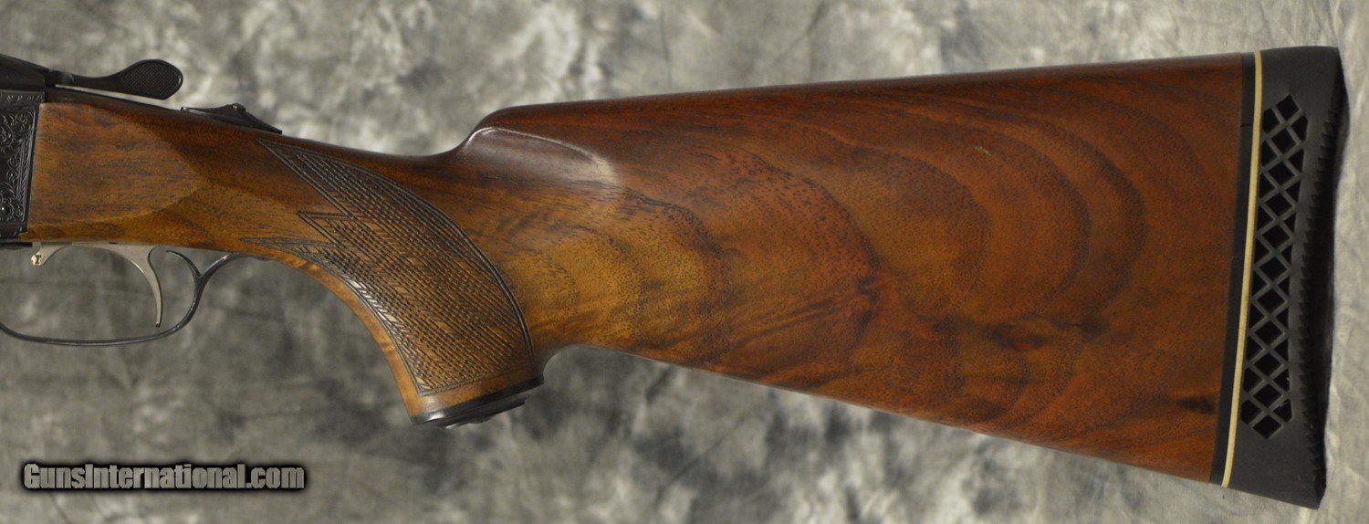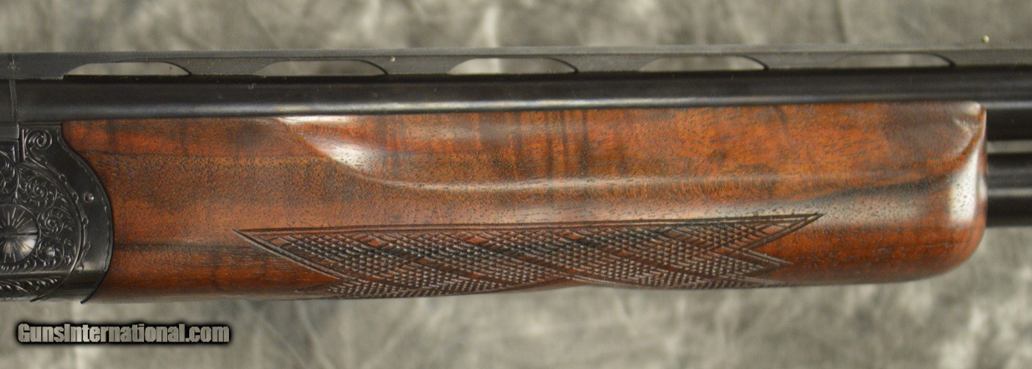 Description: Pre-Owned Krieghoff Model 32 San Remo Trap 12GA with 30" fixed choke (.035/.040) barrels, 12x12 international rib. Blued San Remo grade action with deeply engraved game scenes and scrolls, outstanding condition with 100% of original bluing remaining. Very late 5 digit model 32 receiver, outstanding candidate for K80 conversion-transitional receiver with mostly K80 parts except for trigger. Barrels, wood and receiver all have matching numbers. Factory pistol grip trap stock with skip-line checkering and beavertail forearm, minor handling marks and very minor finish wear. Overall outstanding condition, unique configuration. Consignment, ineligible for trade-ins. SOLD Shotgun Gauge: 12 Gauge |